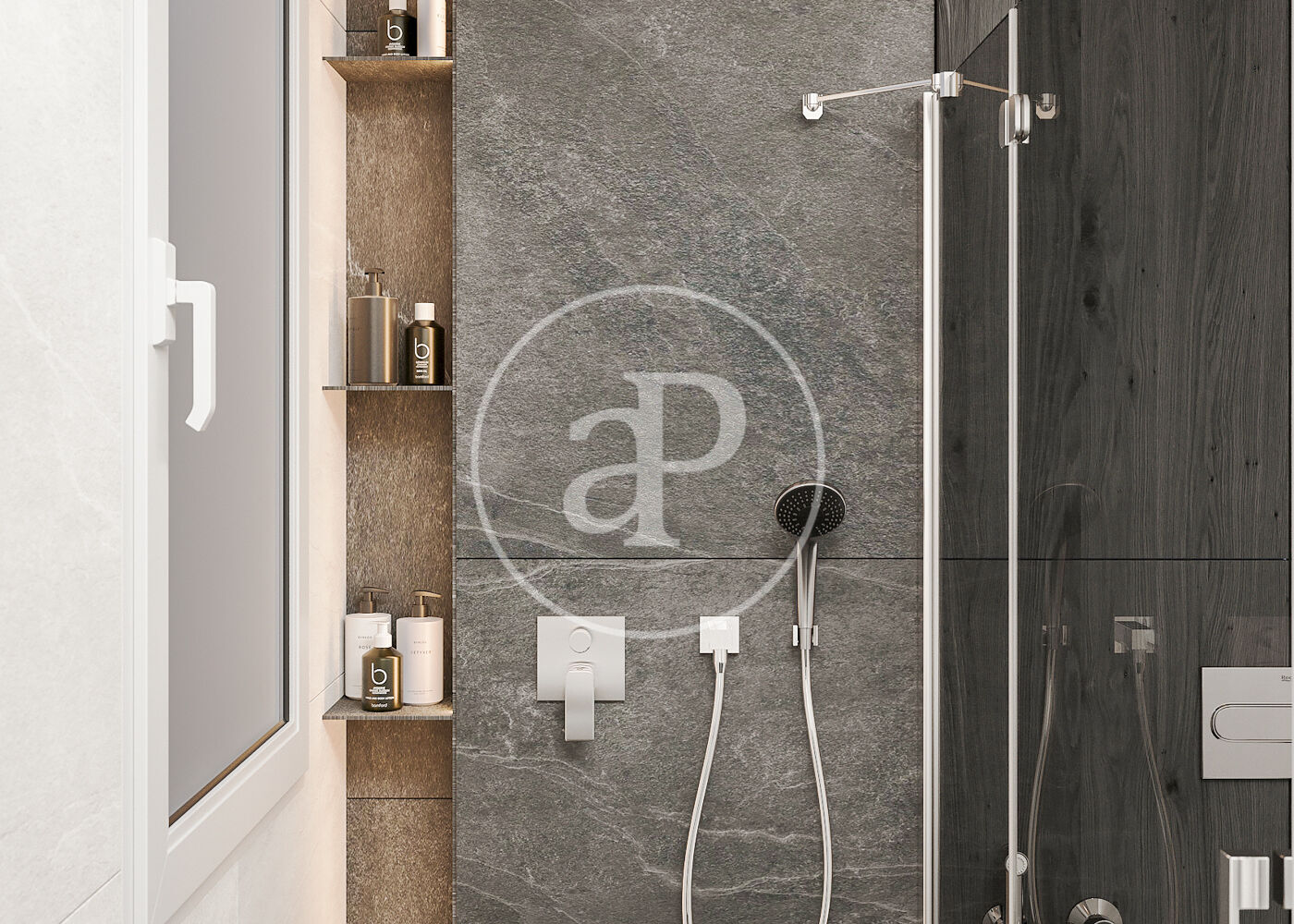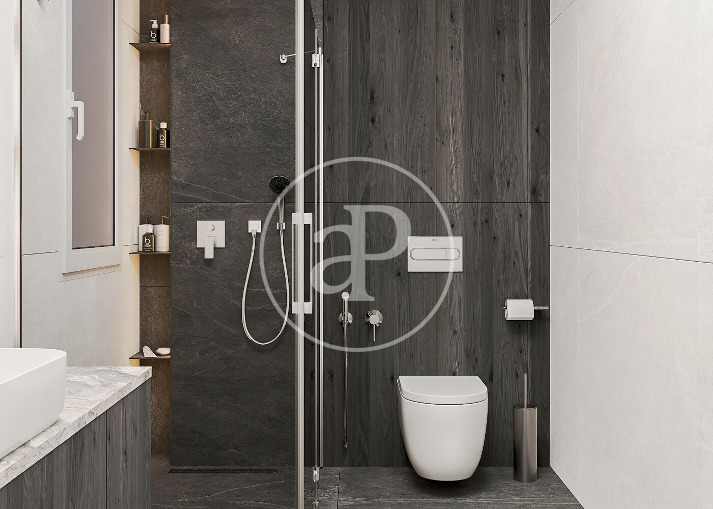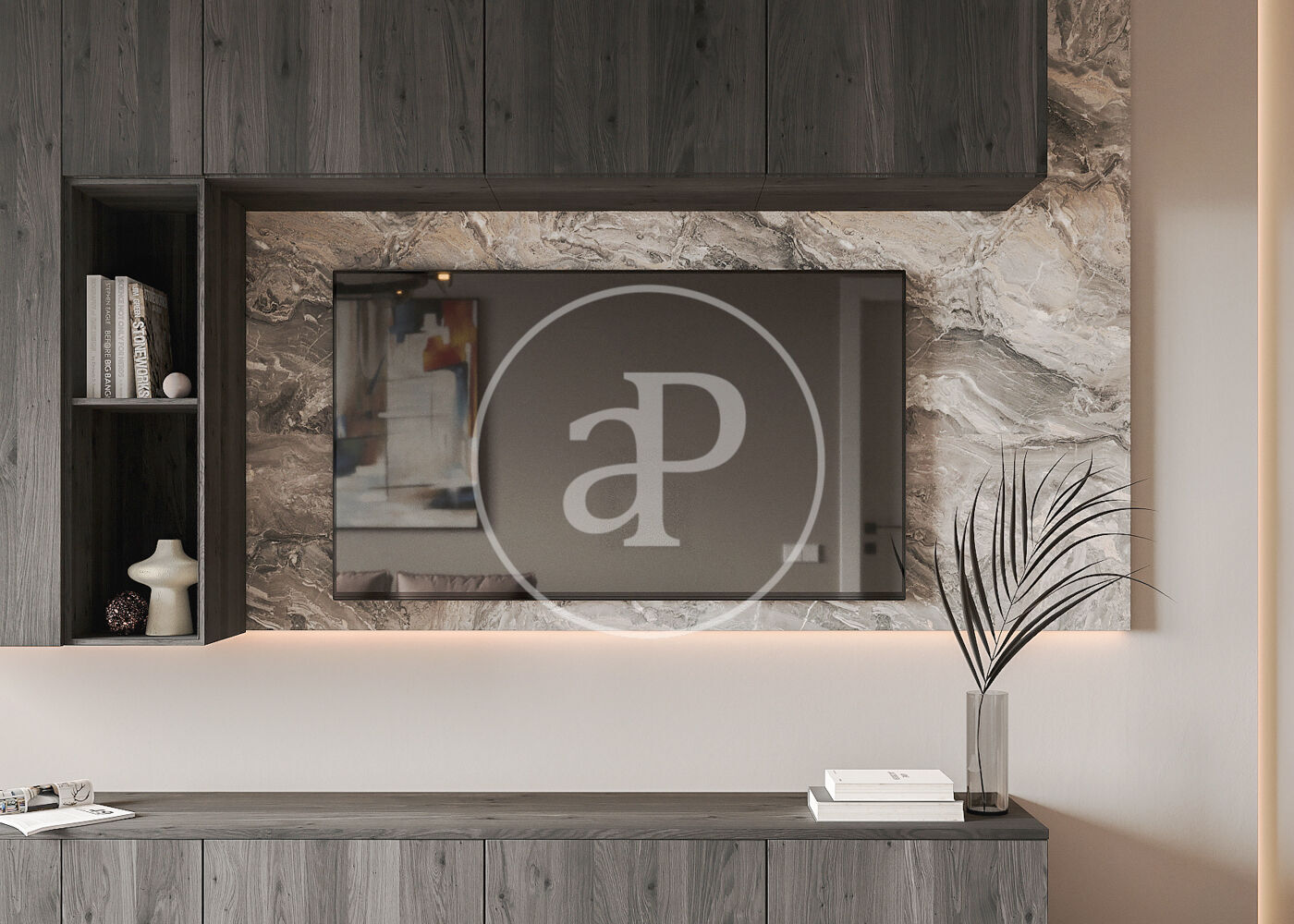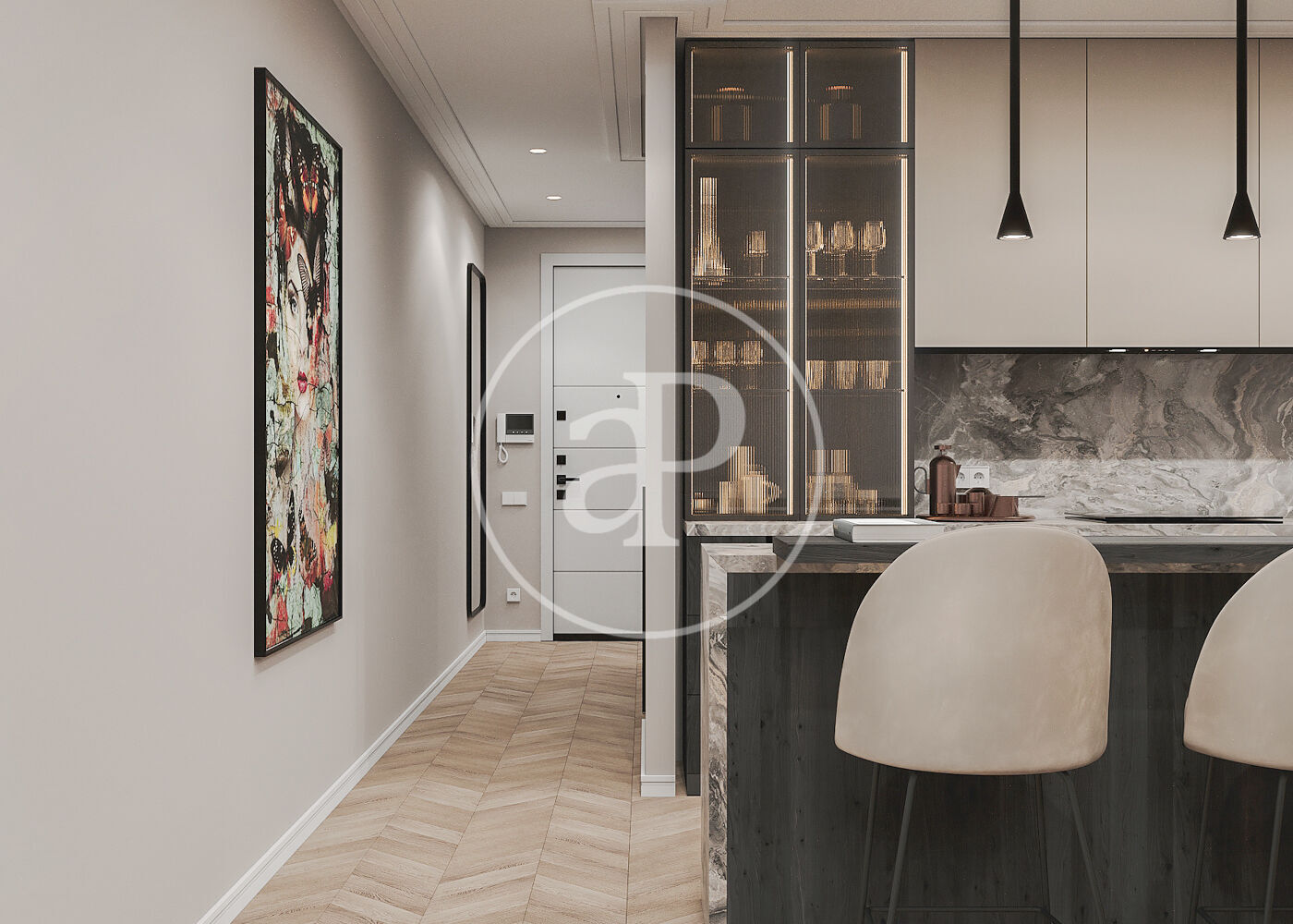 L'hall d'entrada s'obre a un ampli i lluminós saló-menjador amb accés a un gran balcó amb vista buidades als carrers Bruc i Casp, perfecte per a gaudir de l'aire lliure i del sol de tarda. Perfectament integrada en aquest espai trobem la cuina amb illa i equipada amb electrodomèstics d'alta gamma.