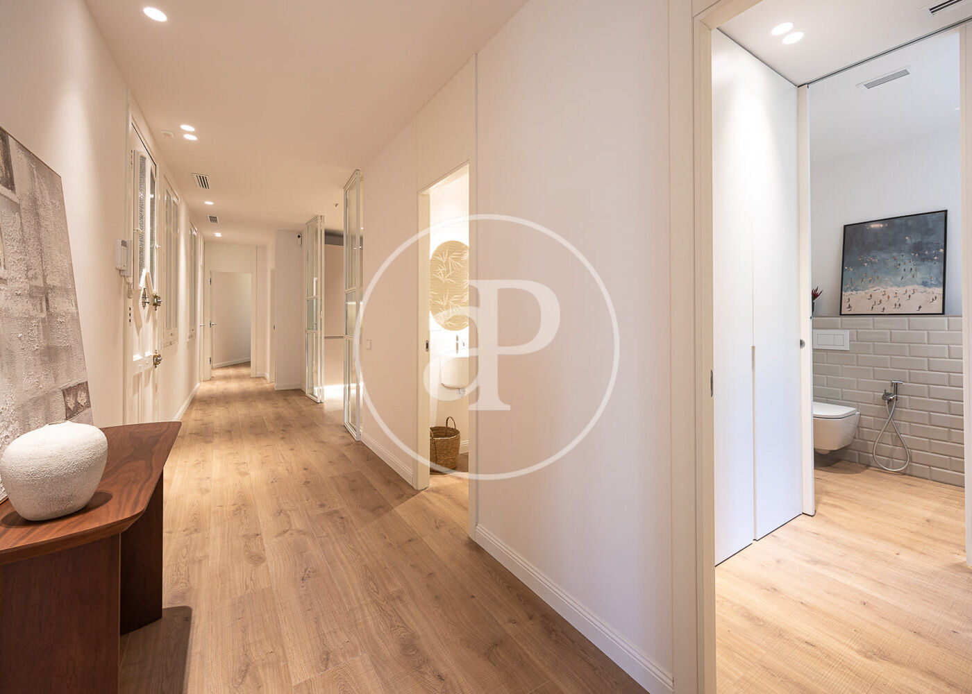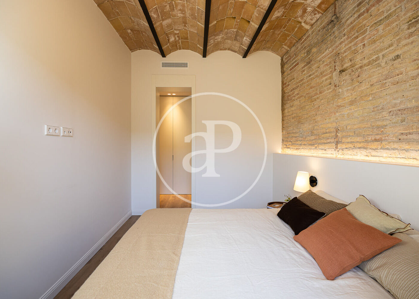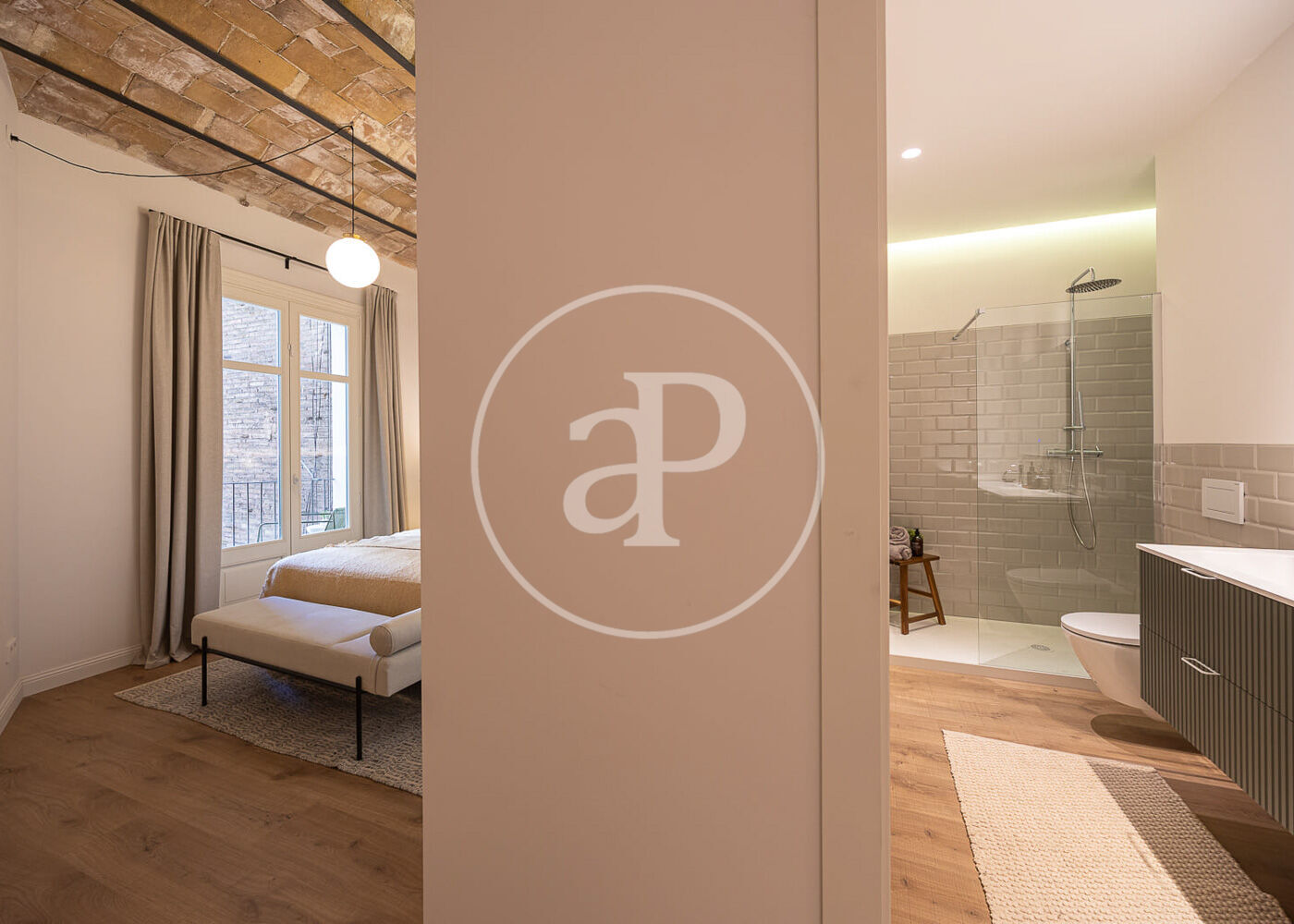 La rehabilitació inclou una cuina completament equipada, saló-menjador amb volta catalana, 2 habitacions dobles tipus suite, una d’elles amb vestidor, i una àmplia i completa zona d’aigües independent.