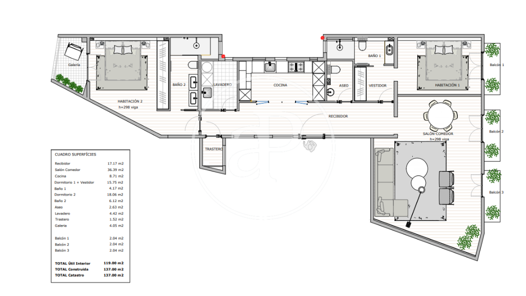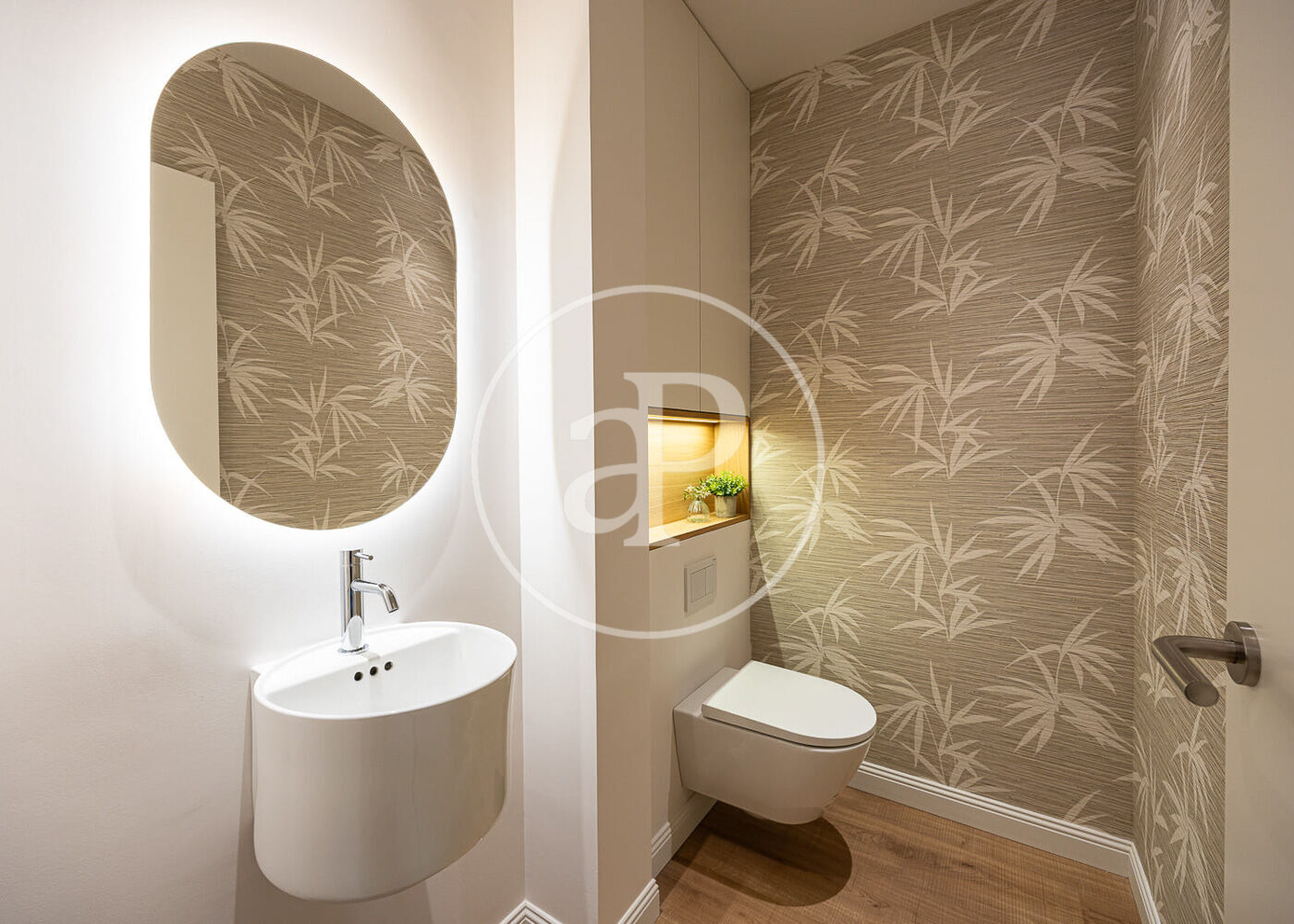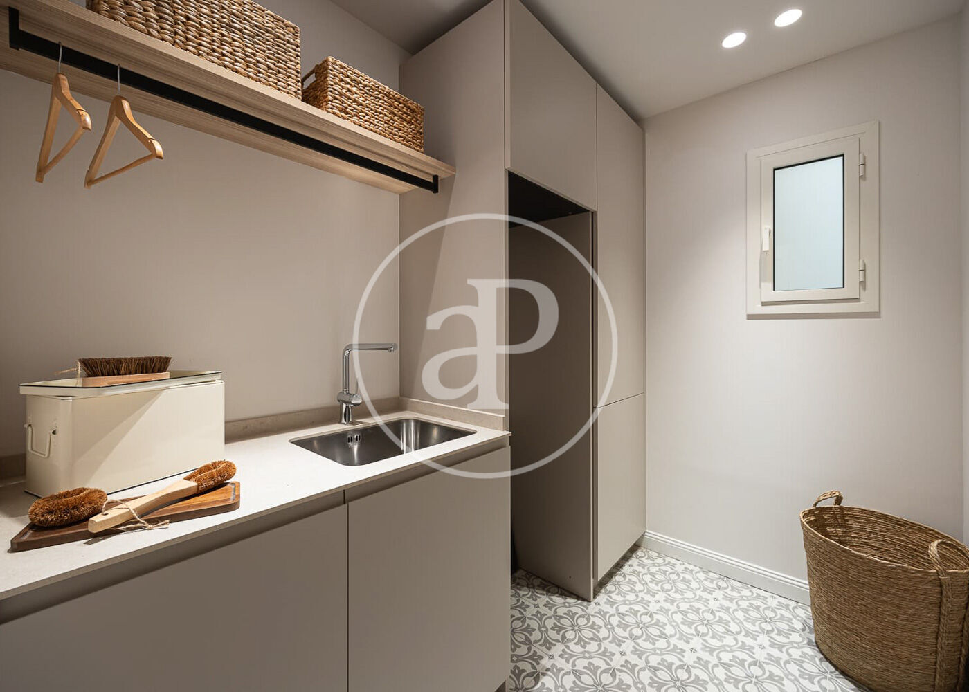 La rehabilitació inclou una cuina completament equipada, saló-menjador amb volta catalana, 2 habitacions dobles tipus suite, una d’elles amb vestidor, i una àmplia i completa zona d’aigües independent.
