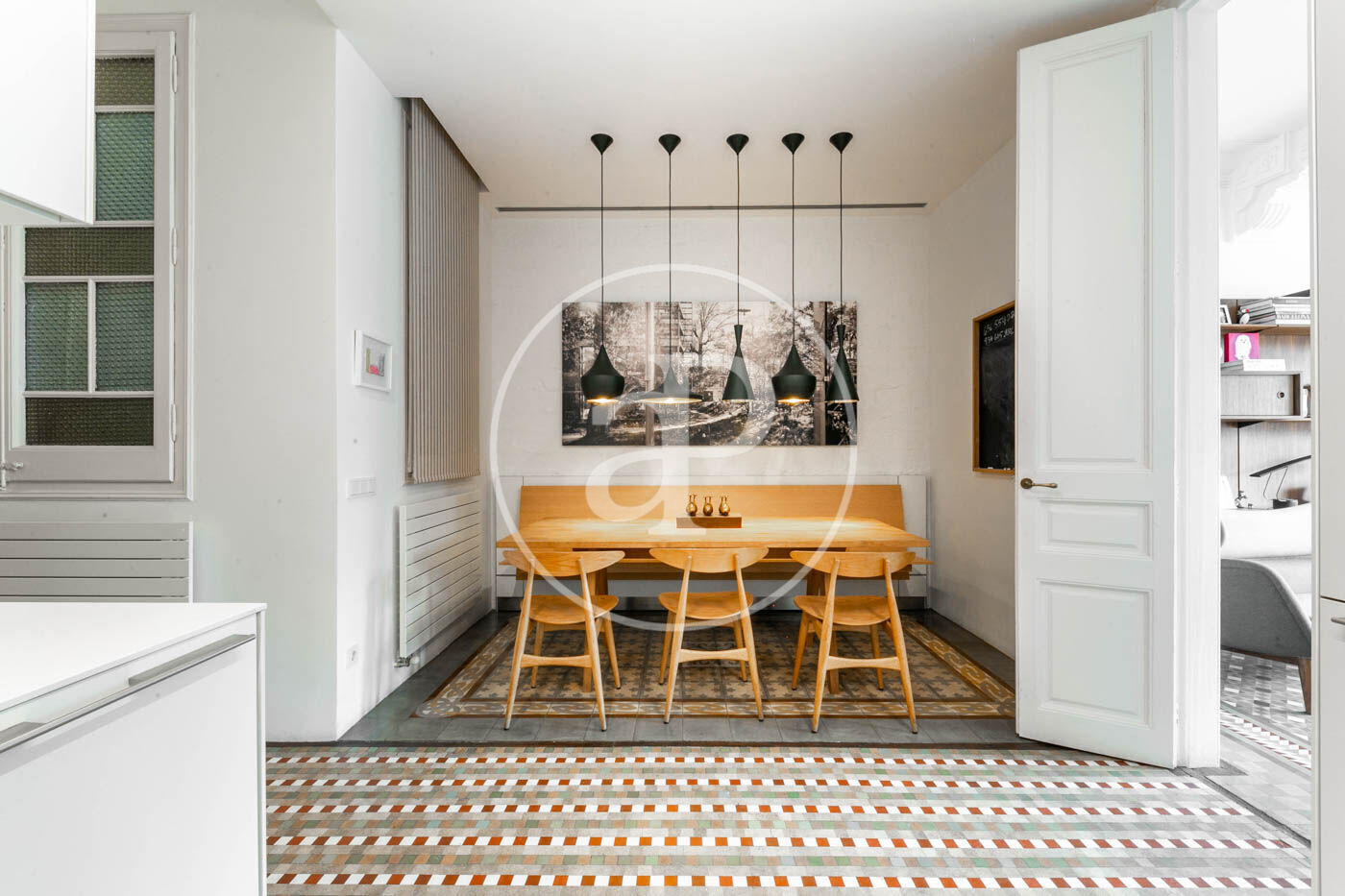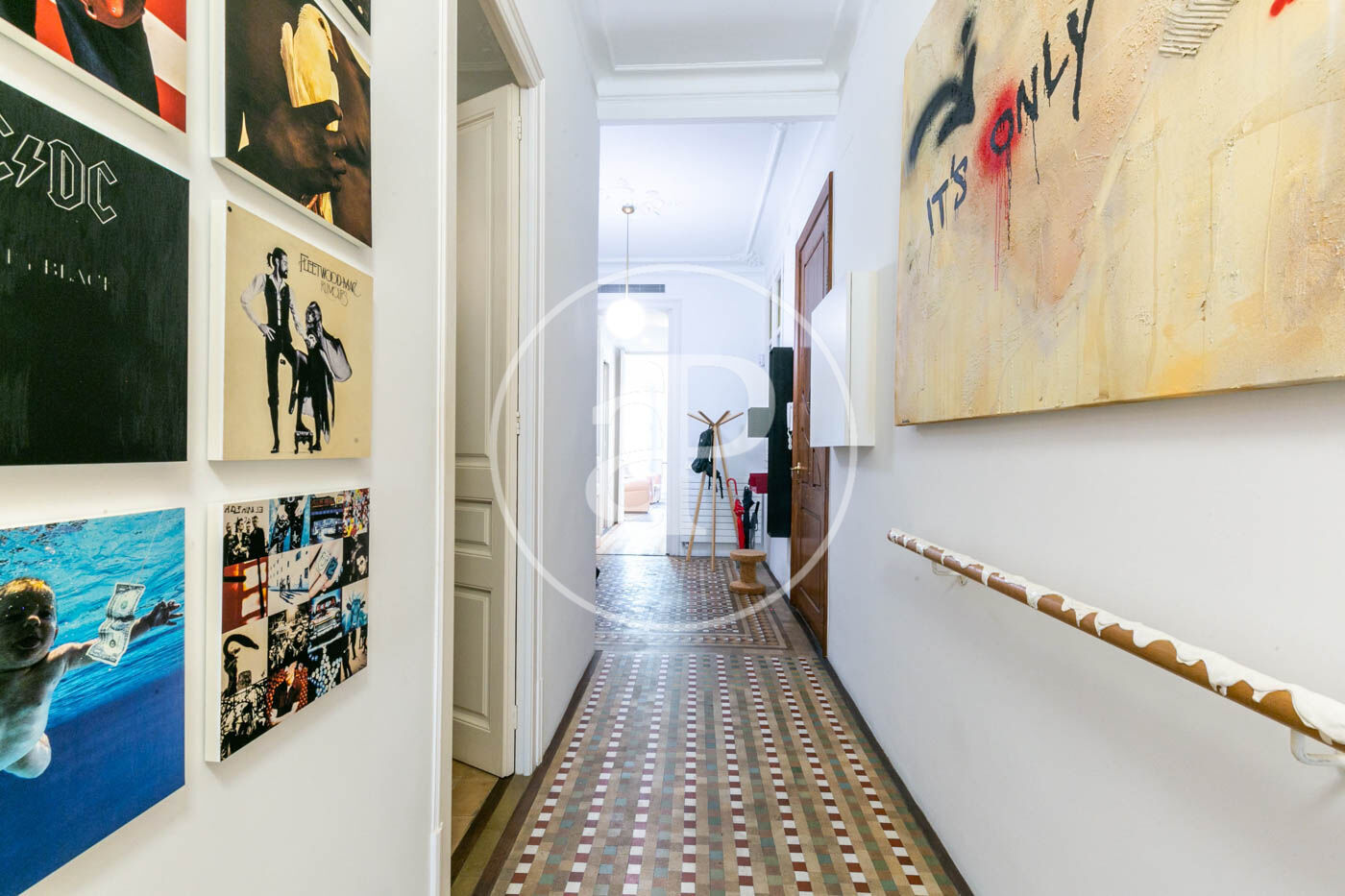 En una finca règia del 1926 totalment rehabilitada al Carrer Mallorca, trobem aquest senyorial habitatge de 152m2 integralment reformada.
