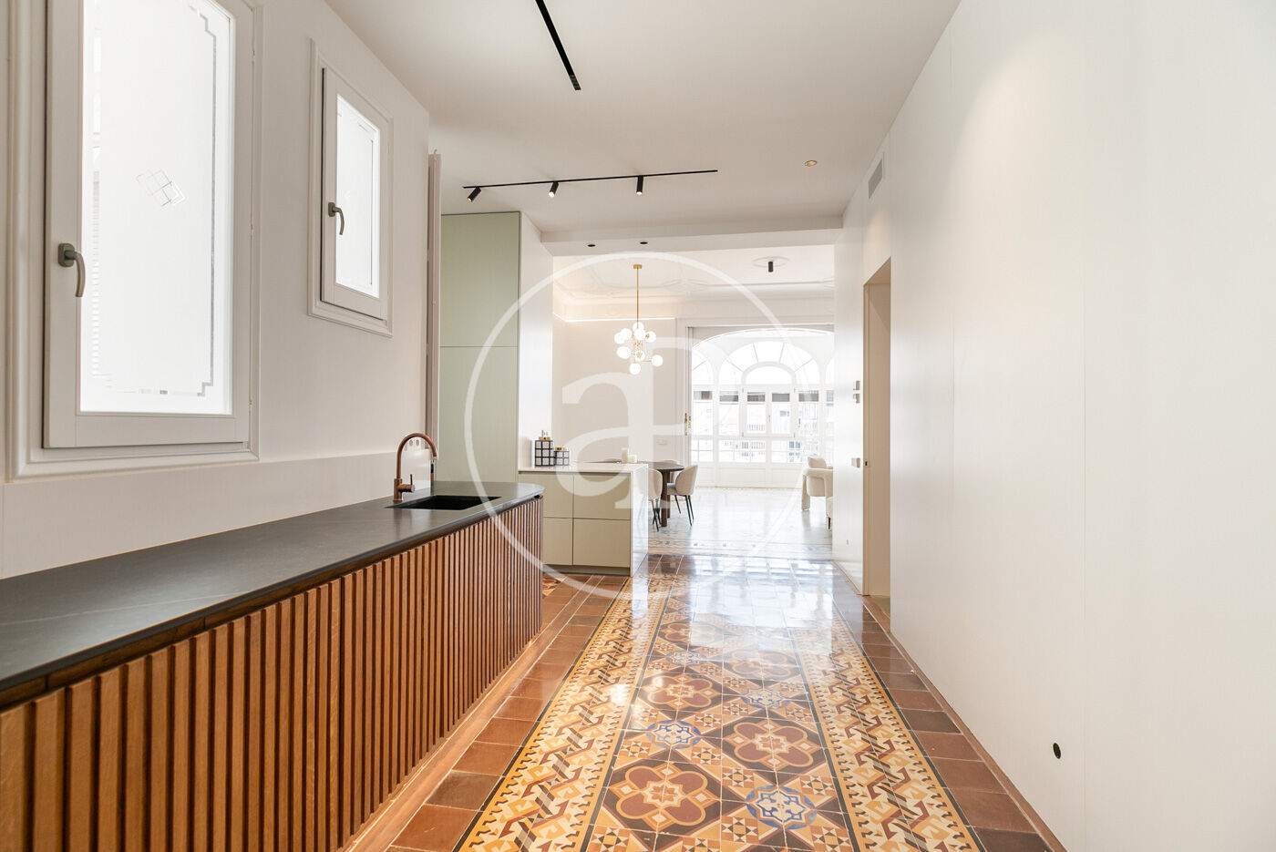 Amb una ubicació excepcional, en ple Quadrat D´Or de Barcelona, en una quarta planta d'una impressionant finca règia típica de l'Eixample Barceloní, trobem aquest habitatge completament reformat amb qualitats màximes conservant detalls originals de l'època. Per a la restauració, s'han conservat els elements diferencials que inclouen a aquests pisos en la categoria de més desitjats de l'Eixample: sostres de 3,5 metres d'altura amb motllures i sòls de paviment noia, de gran valor patrimonial.