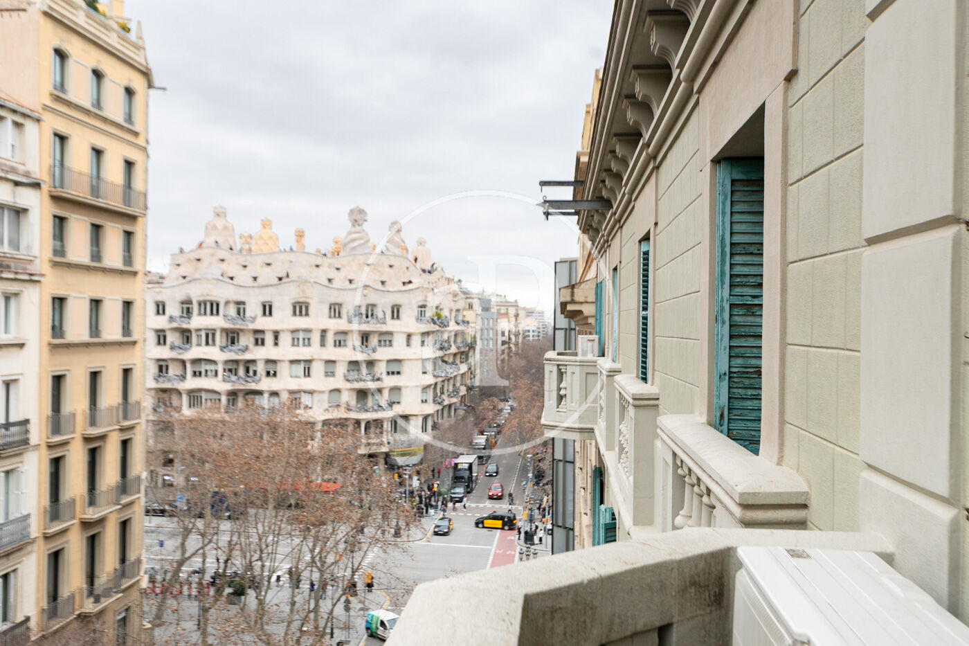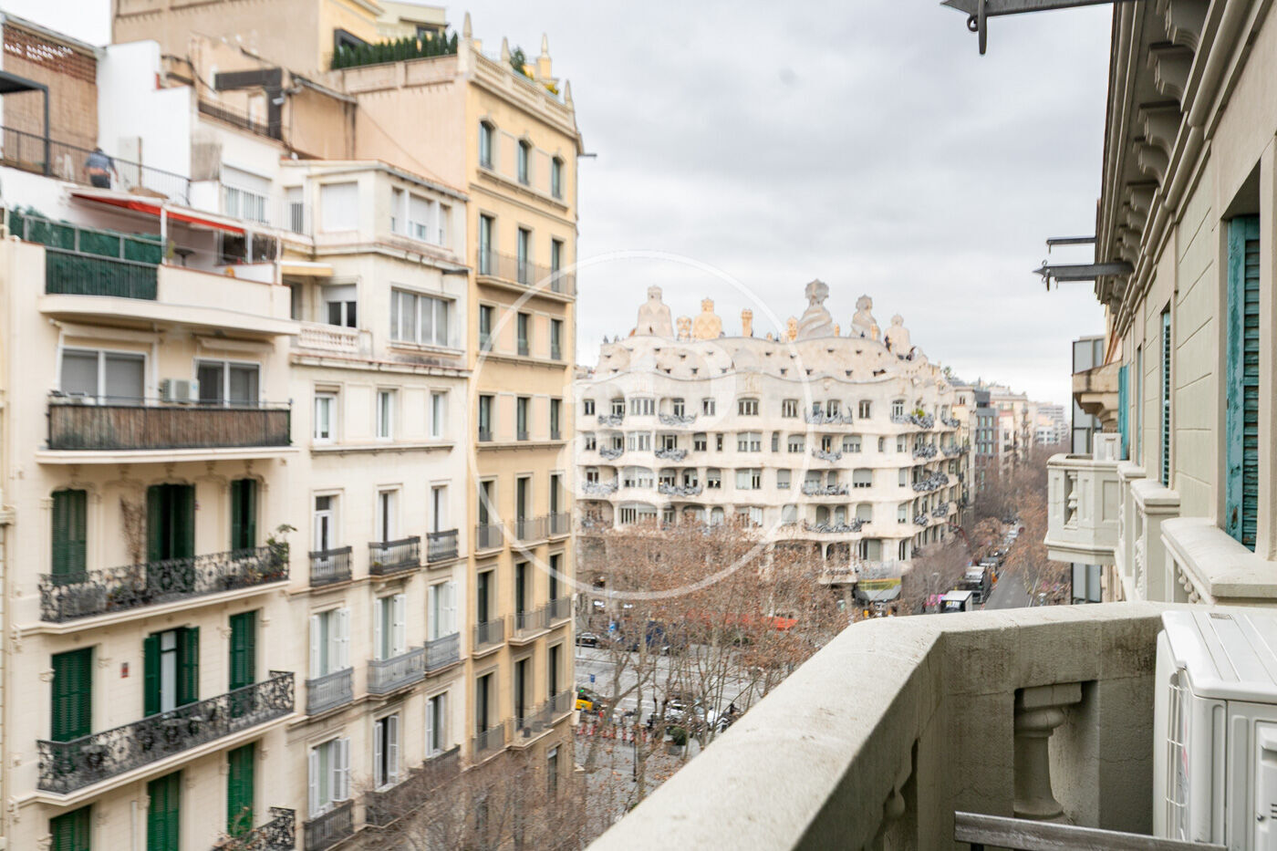 Disposa de cinc balcons a carrer, tres de menor mida i dos més amplis, que aporten llum natural i connexió amb l’exterior, des dels quals es gaudeix de vistes privilegiades a la Pedrera de Gaudí, un autèntic luxe en ple Eixample.