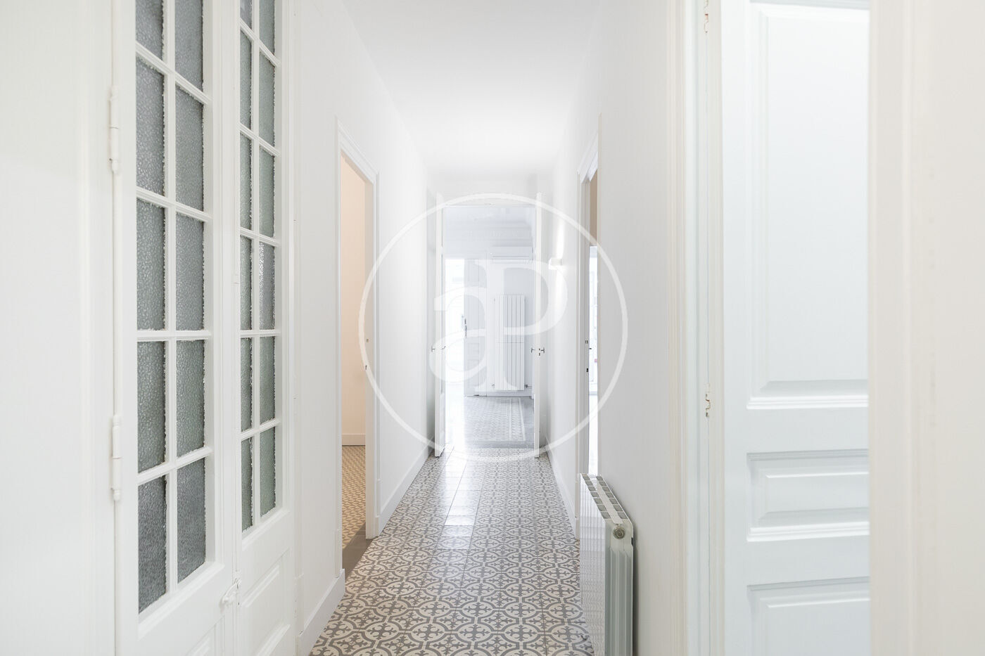 El pis es troba en una finca de 1940, amb elements modernistes originals com sòls hidràulics i detalls de guix als sostres.