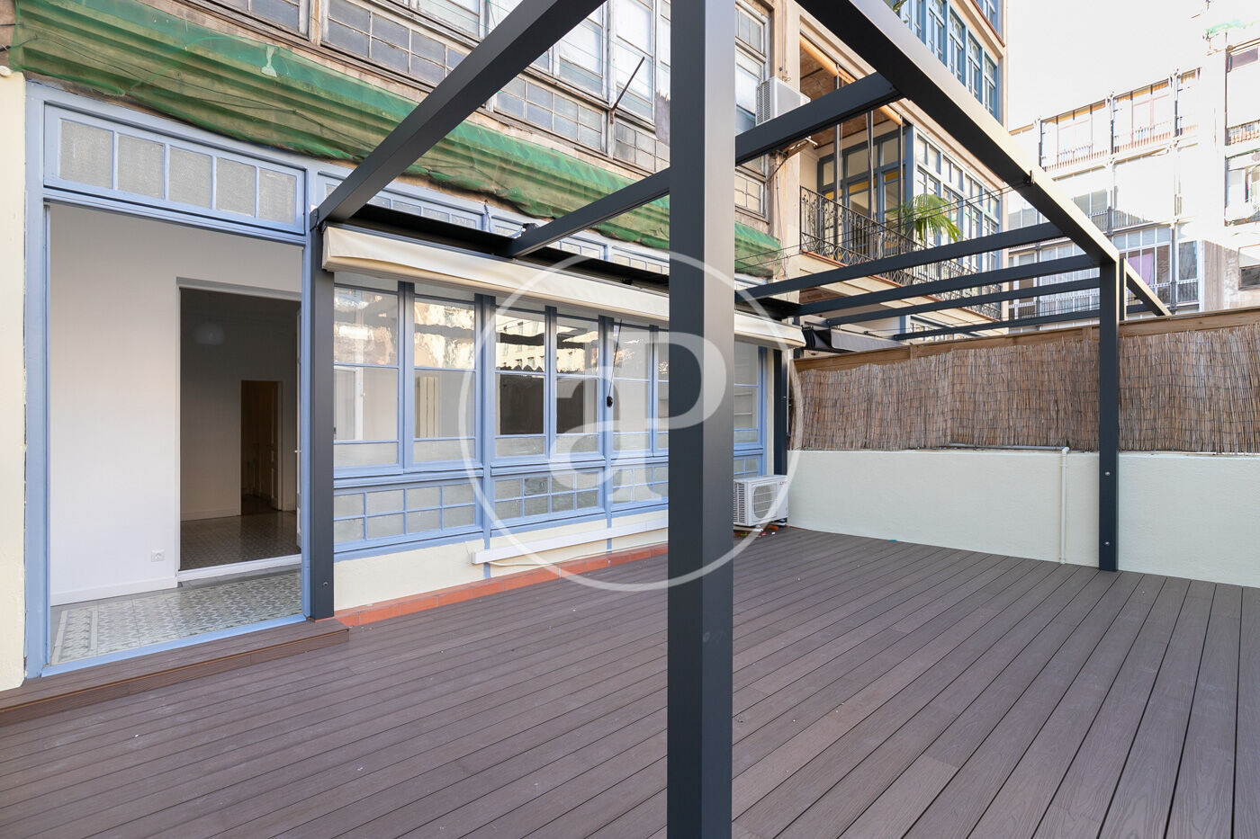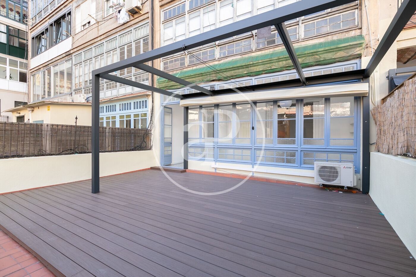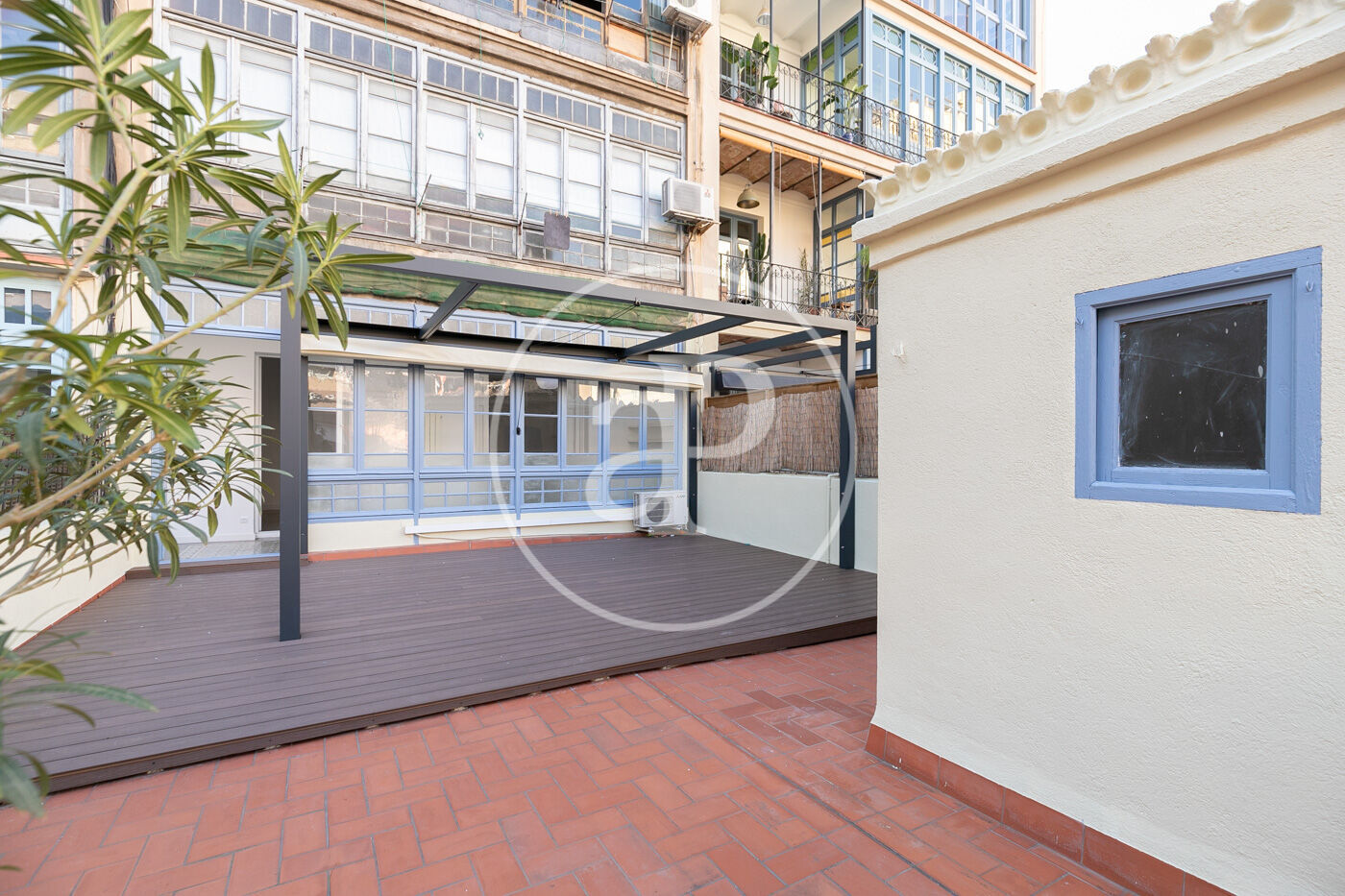 Disposa d’una àmplia i elegant terrassa de 60m², amb tarima de fusta, tendal retràctil i dos espais que es poden utilitzar com a traster/safareig.