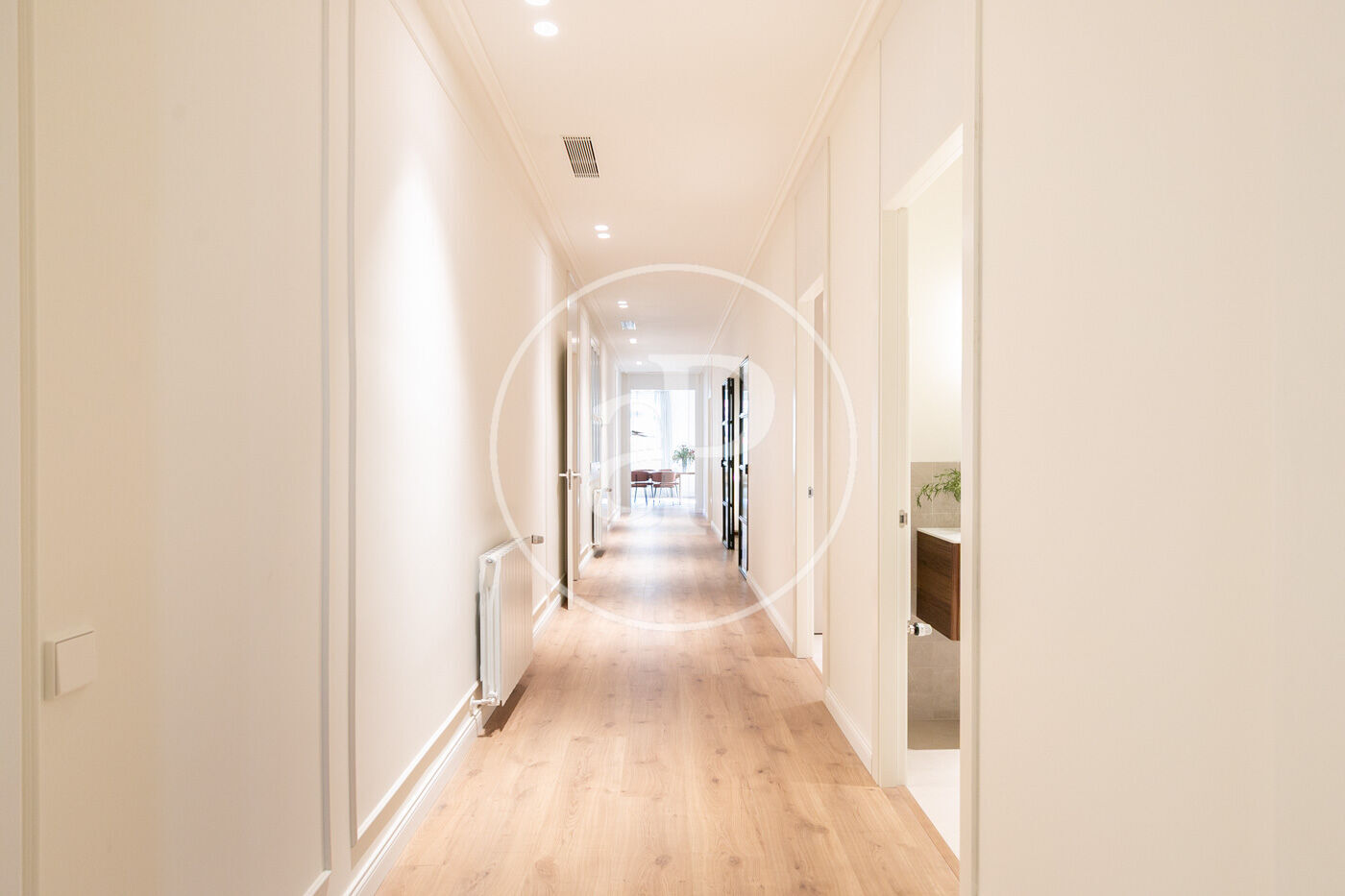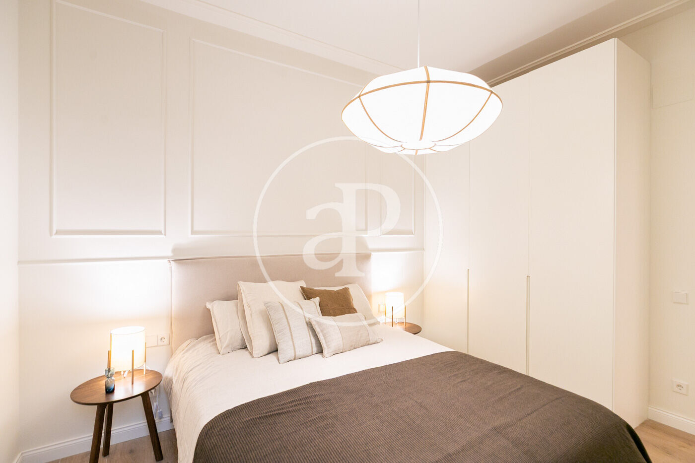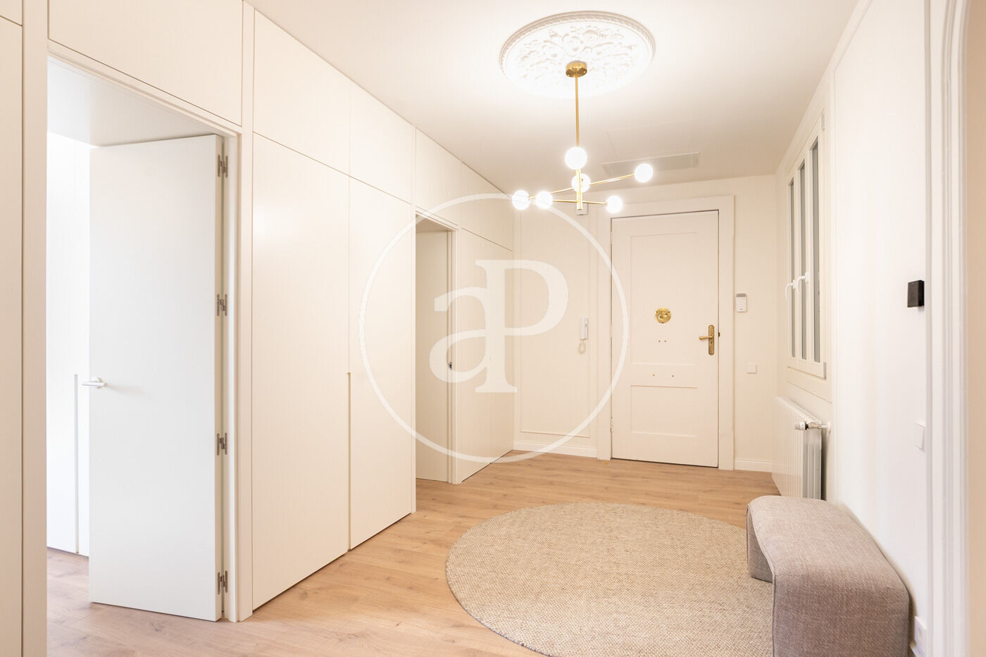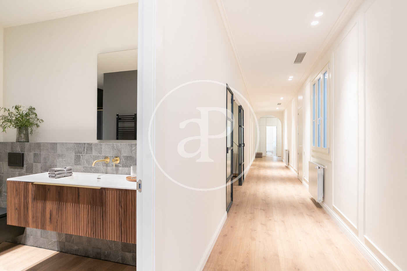 • Portes interiors corredisses i abatibles, armaris encastats a mida amb acabats en fusta o tèxtil i il·luminació LED.