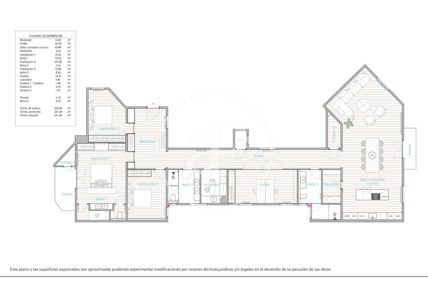Aquest espectacular habitatge de 241 m² segons cadastre ofereix una distribució funcional, elegant i equilibrada entre l’estil clàssic i el contemporani. Amb zones clarament diferenciades de dia i de nit, cada espai ha estat pensat per oferir confort, disseny i lluminositat.