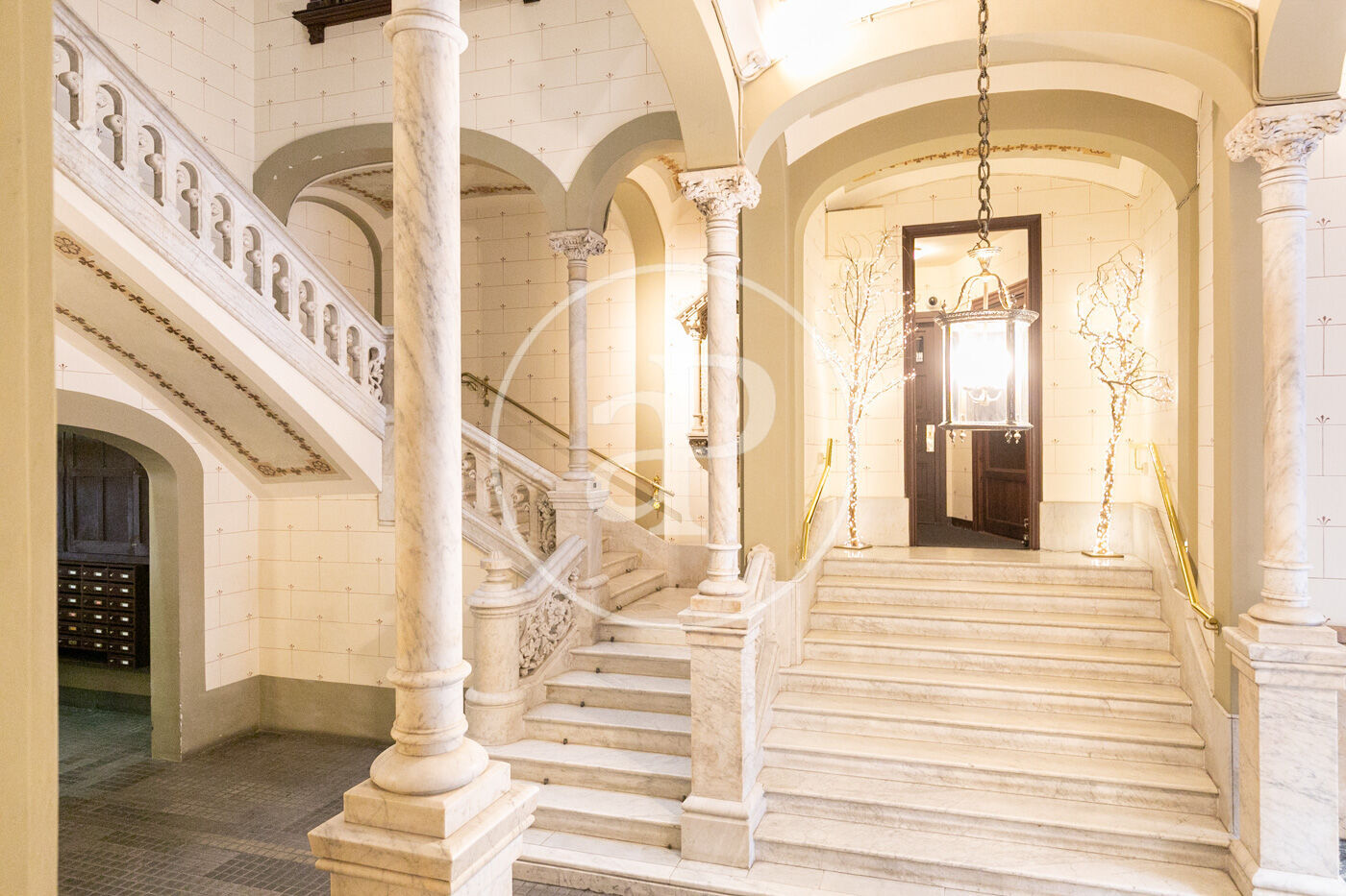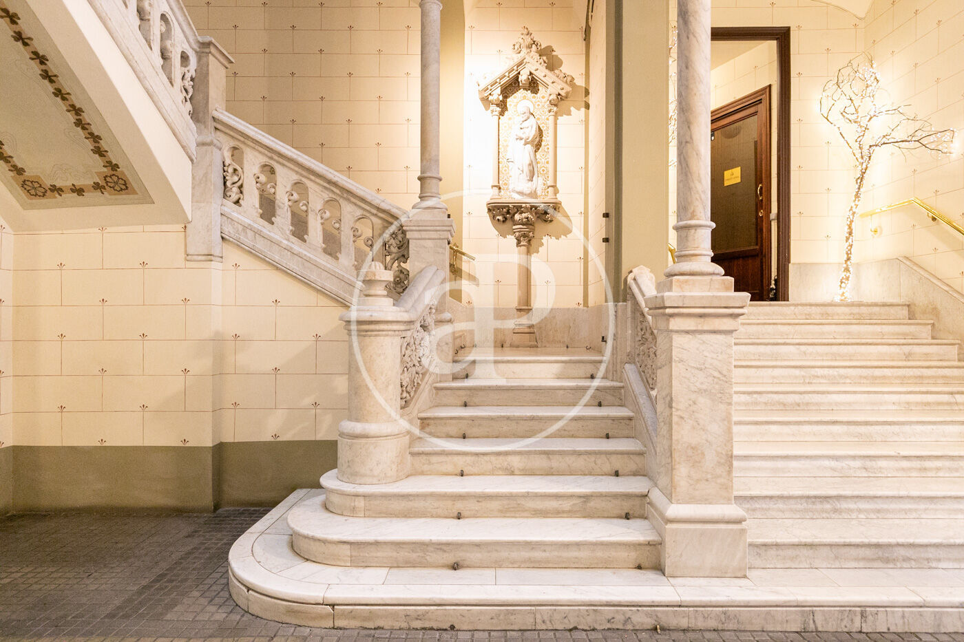 En una finca senyorial impressionant al costat del Passeig de Gràcia, amb una de les portalades i zones comunes més boniques de l’Eixample i amb una ubicació excepcional, al costat del Passeig de Gràcia i molt a prop de Diagonal, trobem aquesta propietat situada en una cinquena planta real. L’immoble necessita reforma integral, té uns 39 m² i està orientat a dos patis de llum, per la qual cosa no té vistes a l’exterior. Tampoc disposa de cèdula d’habitabilitat.