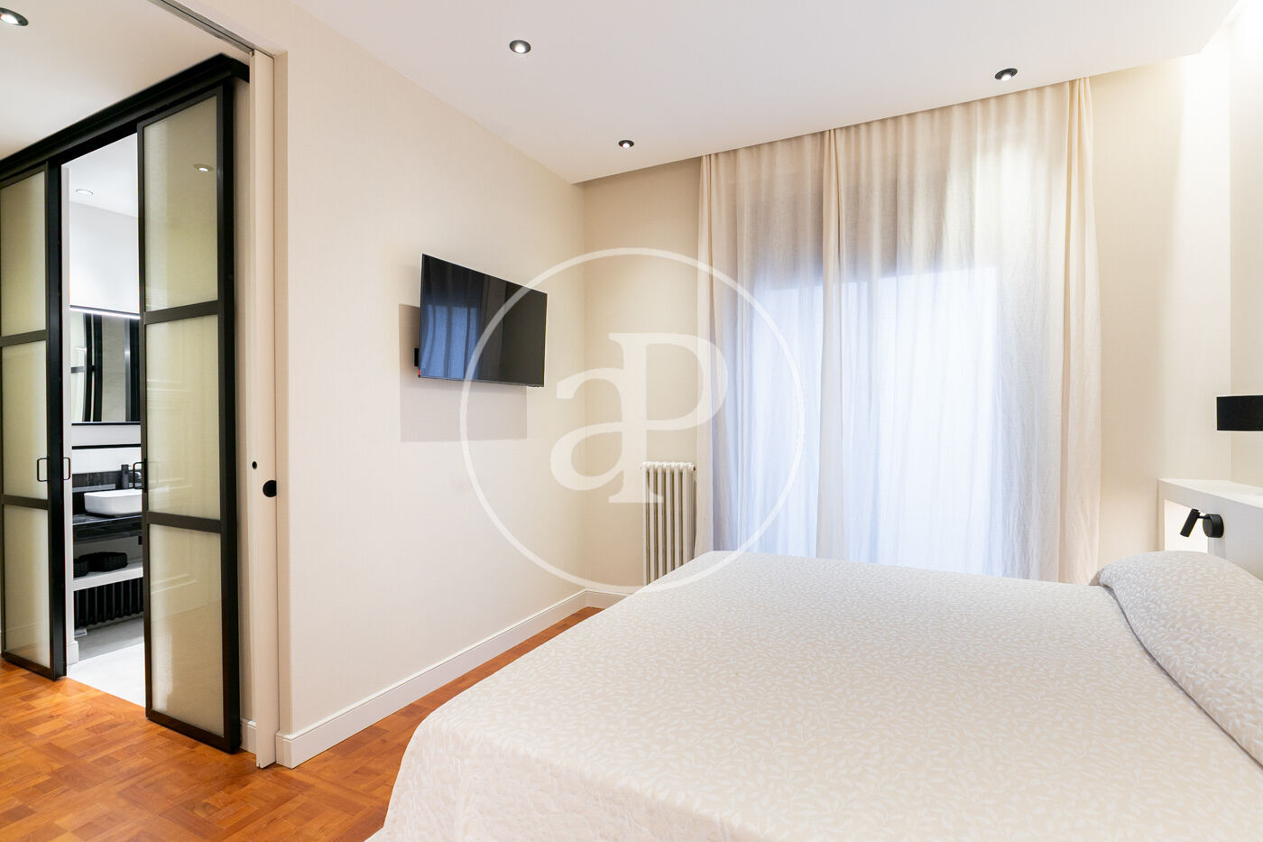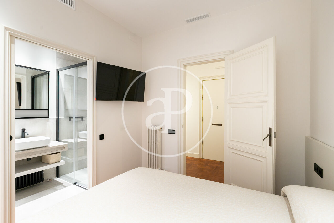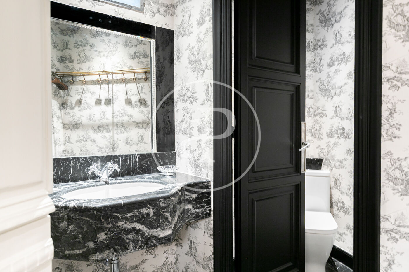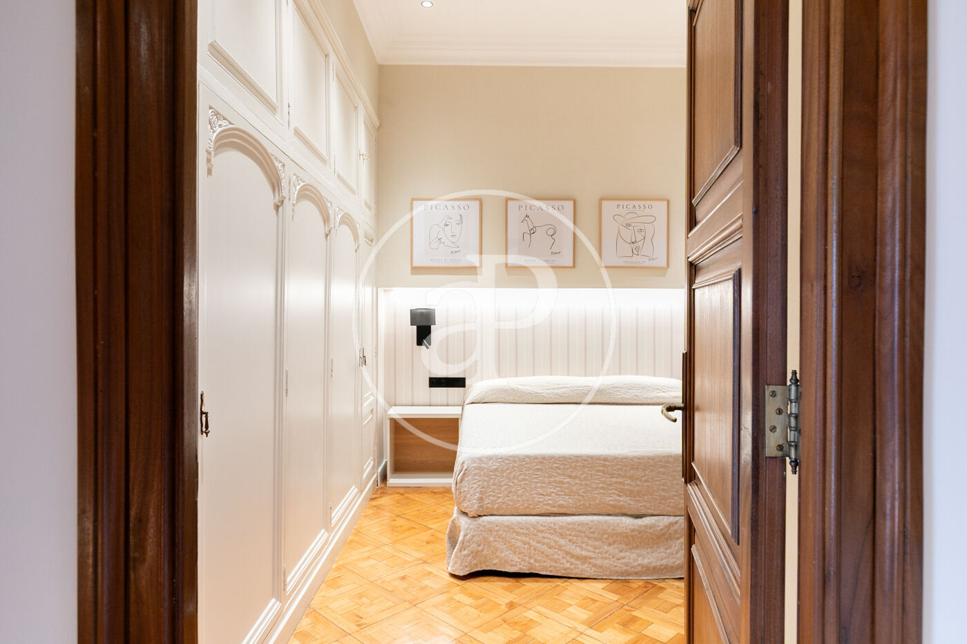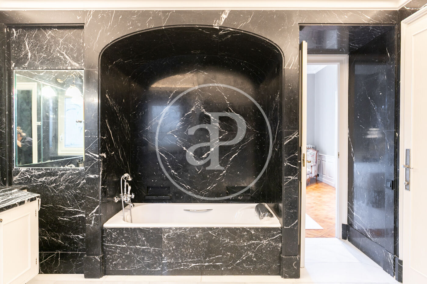 La zona de nit ofereix cinc suites, totes amb armaris encastats i bany privat. La suite principal, d’aproximadament 60 m², compta amb vestidor, sala d’estar i un elegant bany de marbre amb dutxa i banyera. El pis es lloga totalment moblat i equipat, amb possibilitat de plaça d’aparcament propera.