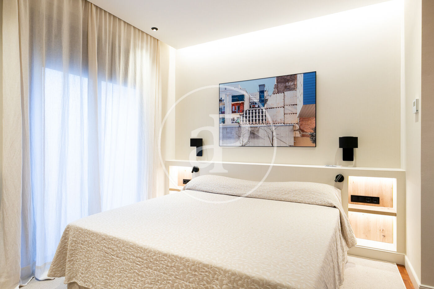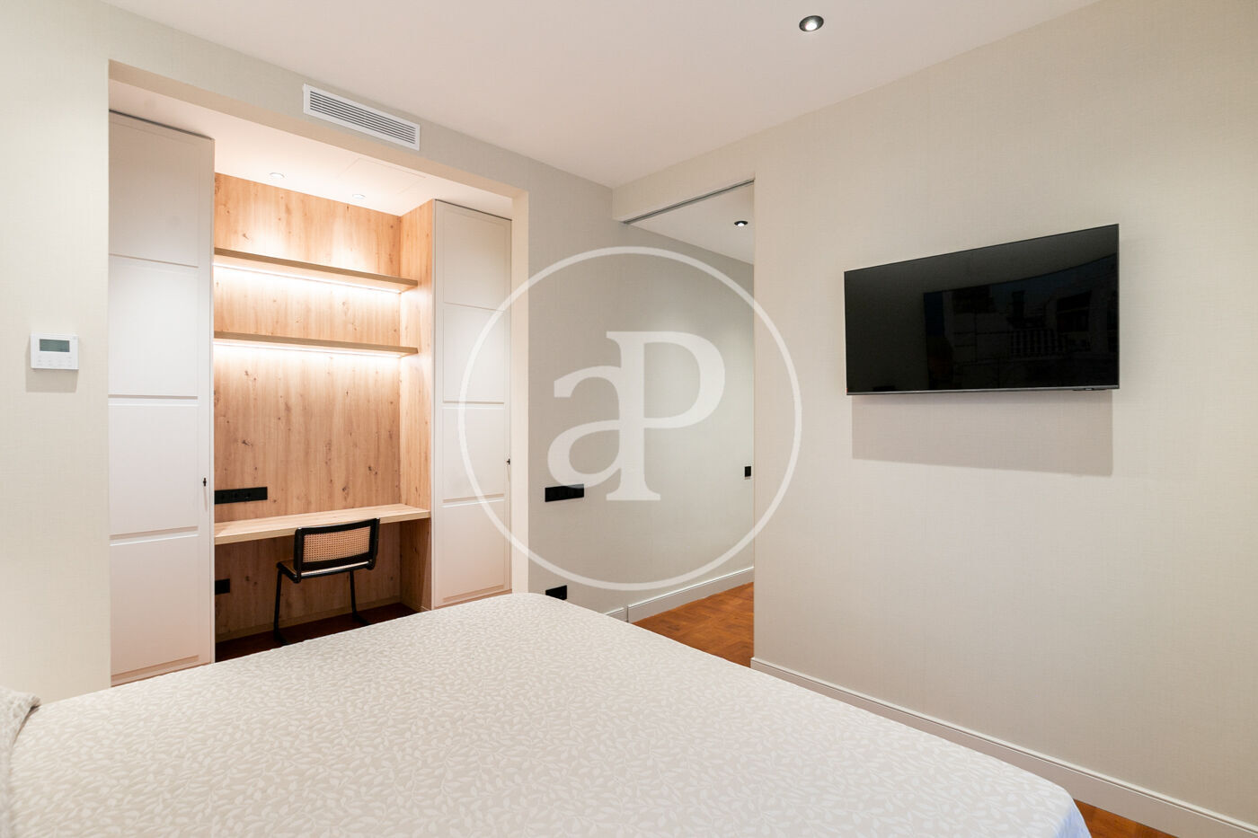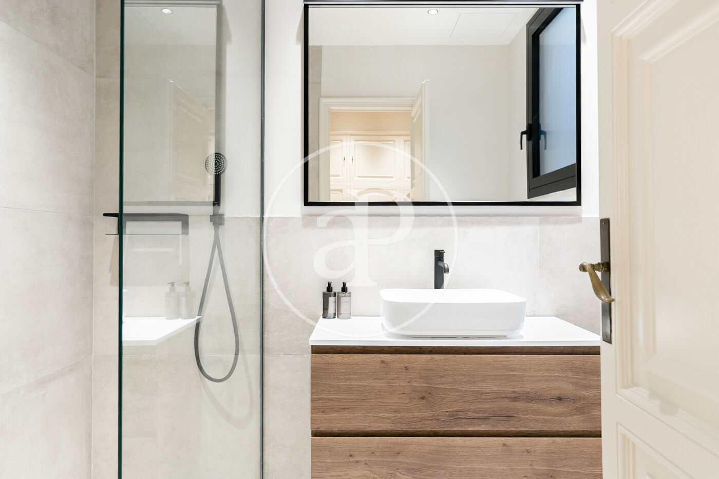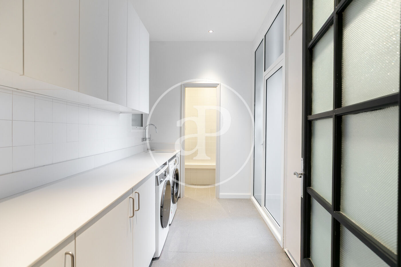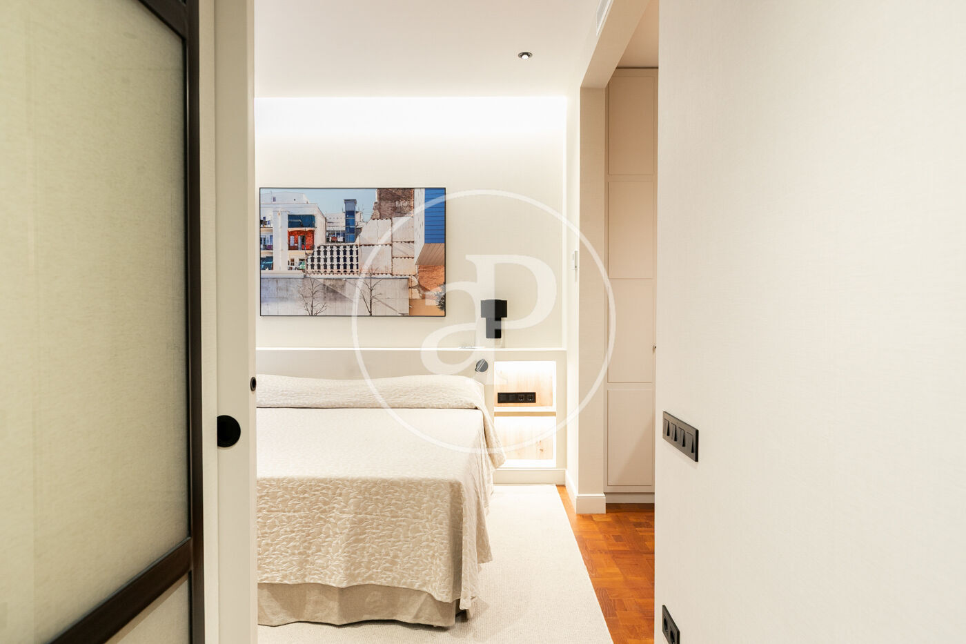 L’habitatge ocupa una planta alta en un immoble de gran distinció, amb servei de consergeria i vigilància 24 h. La seva rehabilitació integral ha respectat l’essència original de Pere Cosp i Villar (1907–2007), pioner del disseny d’interiors modern a Catalunya, restaurant amb minuciositat elements artesanals com boiseries, marbres i fusteries. Tot això s’ha integrat amb instal·lacions actuals —finestres de doble vidre, climatització per conductes i electrodomèstics d’última generació— per garantir un confort absolut.