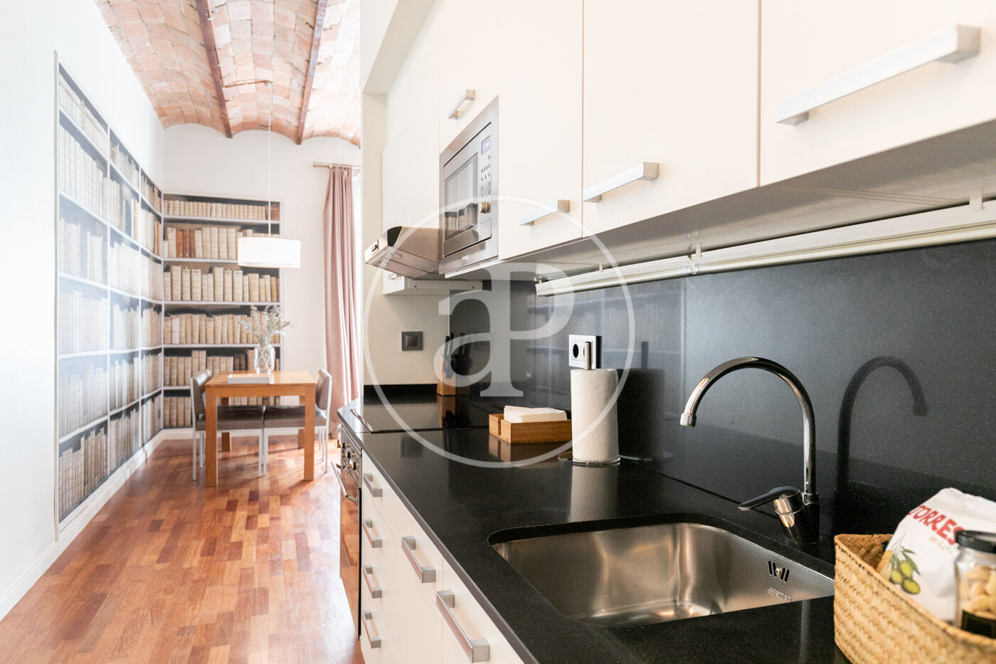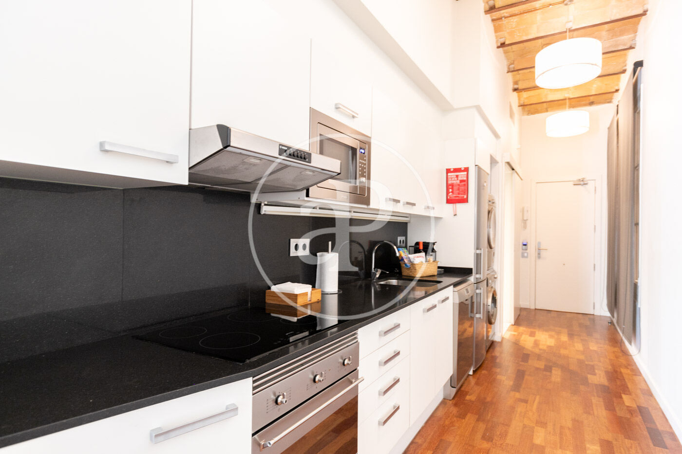 L’habitatge, en un sol ambient, consta d’un saló-menjador exterior, cuina oberta equipada amb electrodomèstics d’alta gamma i tots els estris necessaris.