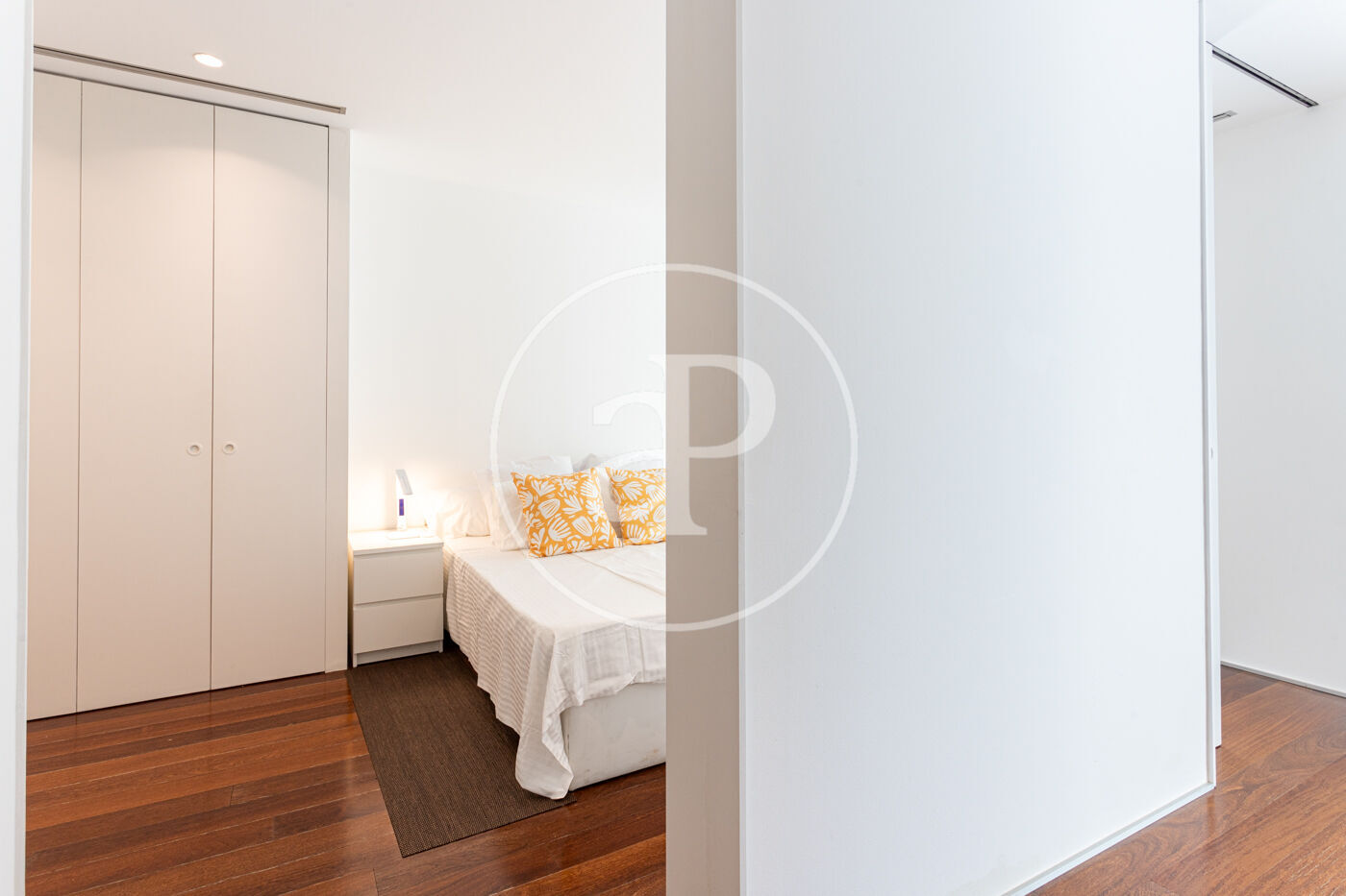Magnífic pis totalment moblat i equipat amb molt de gust, en ple Passeig de Gràcia. En una finca moderna completament rehabilitada.