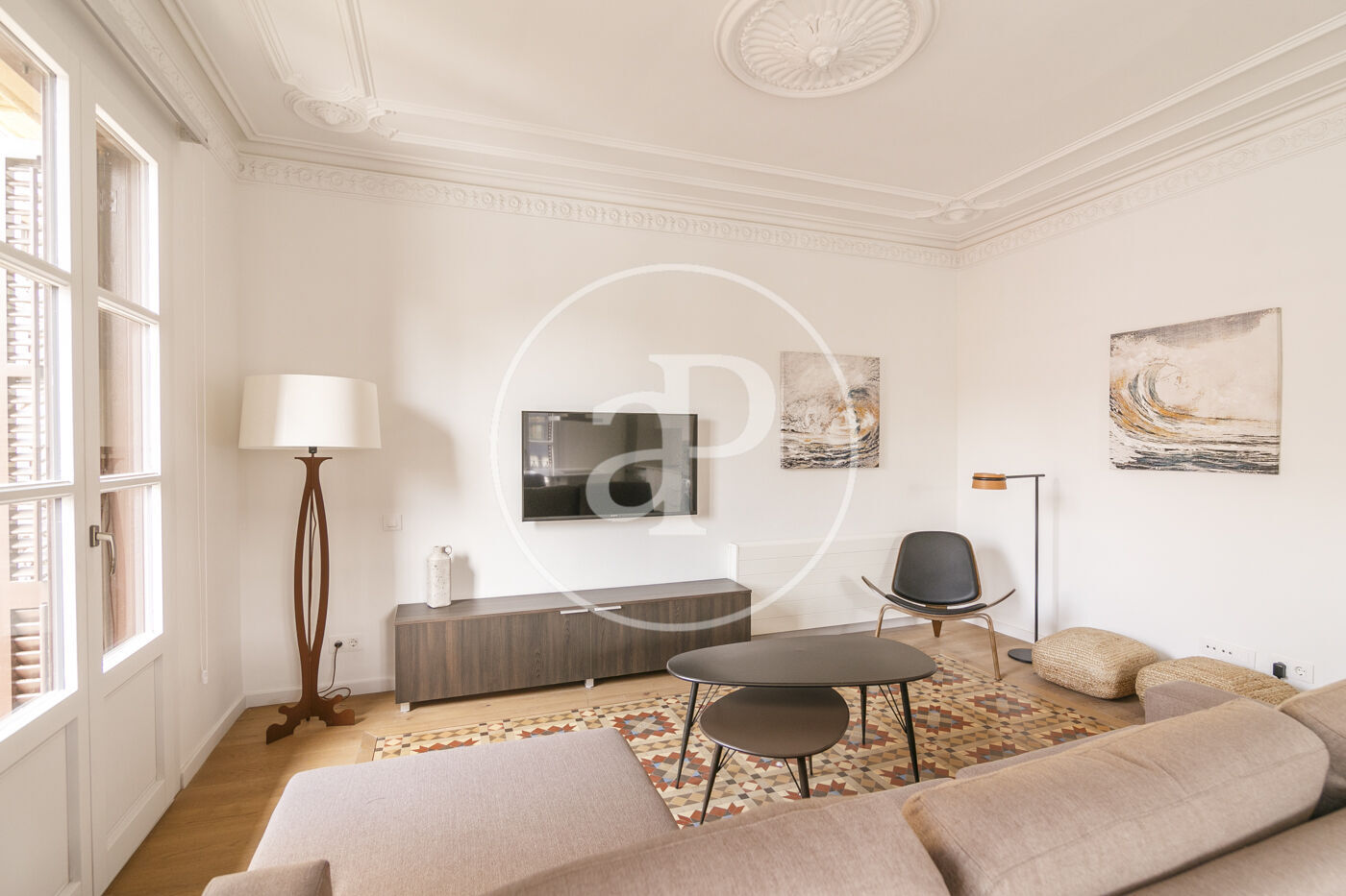 Al bell mig de la ciutat comtal, entre Plaça Catalunya i Plaça Universitat, trobem aquest pis recentment reformat en una finca rehabilitada.