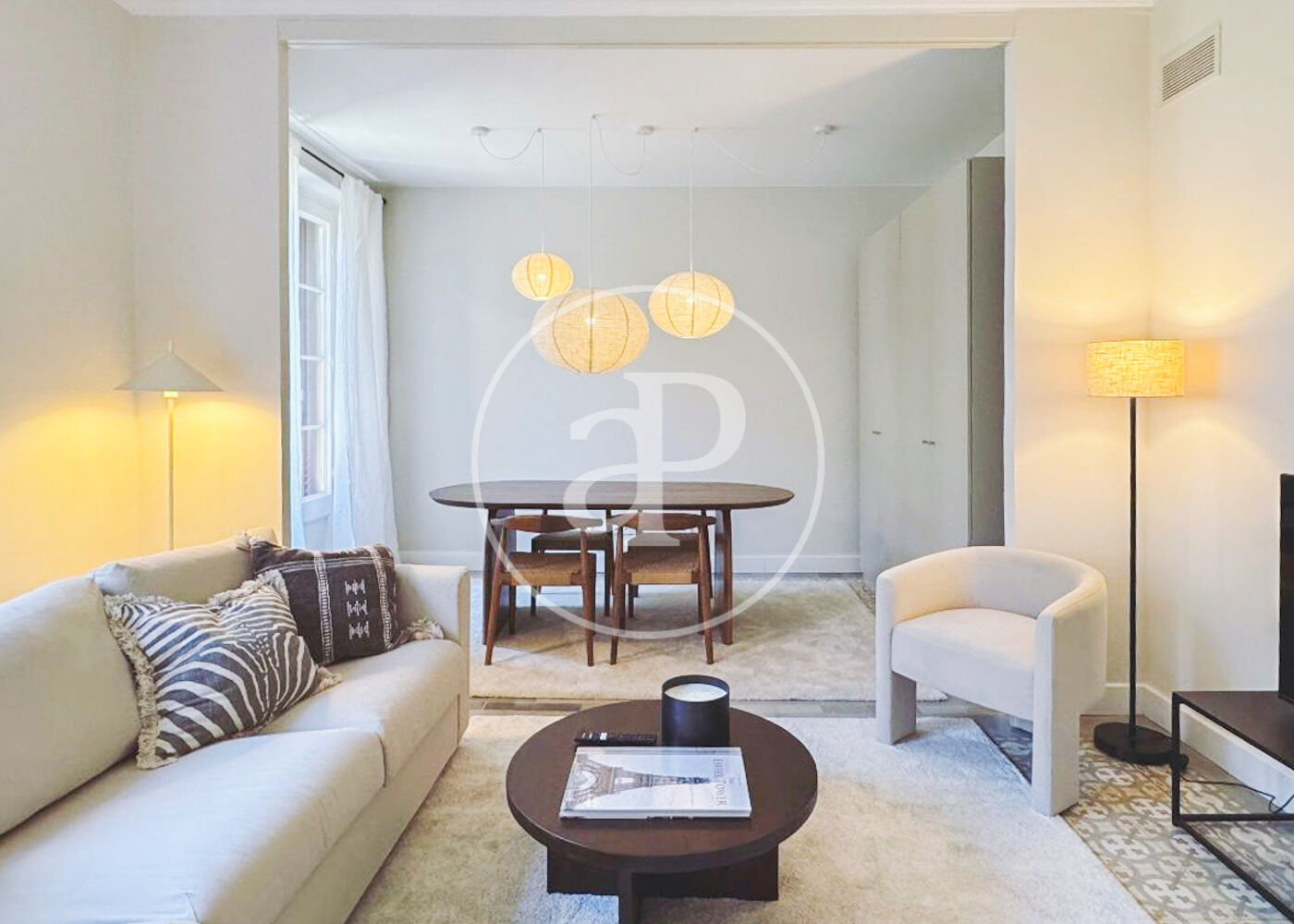 Impressionant apartament situat al carrer Aribau amb Gran Via, a un minut de la parada de metro Universitat, al centre de Barcelona, envoltat de comerços i restaurants, amb molt bona comunicació amb el transport públic. Ens trobem amb un acollidor pis de 75m² molt ben decorat, cuidant fins al més mínim detall.