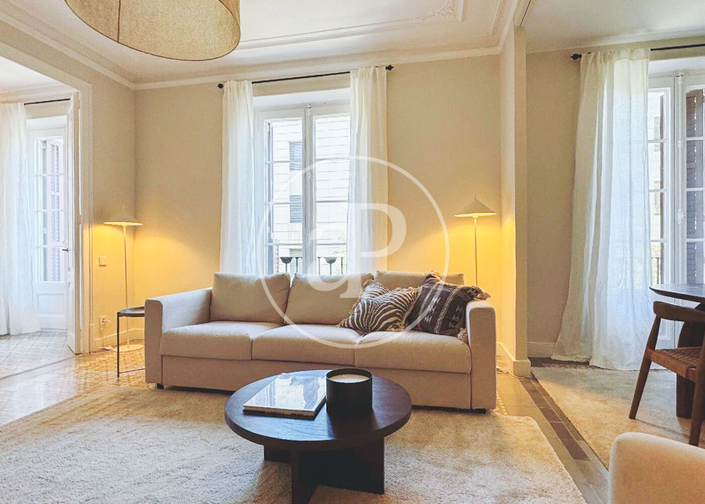 Disponibilitat: gener de 2026. Situat al cor de l’Eixample Esquerra, a un pas de la Rambla Catalunya i del Passeig de Gràcia, envoltat de comerços, hotels i restaurants, i amb molt bona comunicació amb el transport públic —Ferrocarrils, metro i autobusos—, trobem aquest exclusiu pis de 170 m², moblat i recentment reformat amb un gust exquisit i materials d’alta qualitat, en una finca modernista. La zona de dia està composta per un ampli saló-menjador de 60 m² amb sortida a dos balcons amb vistes, una cuina oberta totalment equipada, un lavabo de cortesia i una zona d’aigües. A la zona de nit trobem tres dormitoris: un en suite amb vestidor de 35 m², dos dormitoris dobles, una habitació polivalent que pot utilitzar-se com a despatx i un bany complet amb plat de dutxa. L’habitatge disposa de terres hidràulics combinats amb tarima de fusta natural, sostres alts amb motllures artesanades molt característics de l’Eixample de Barcelona, aire condicionat i calefacció de gas. La finca compta amb ascensor i servei de consergeria. T’imagines viure aquí? La finalitat del contracte és temporal. La realitat del mobiliari pot no correspondre exactament amb les fotografies mostrades en aquest anunci.* En compliment de la Llei 12/2023 i la Llei 18/2007 informem que:Índex de R.P.LL: 23,00 € / m2 Respecto a la presente propiedad no existe certificado informativo estatal de referencia de precios de alquilerLloguer de l'últim contracte d'arrendament: 4.400,00 €