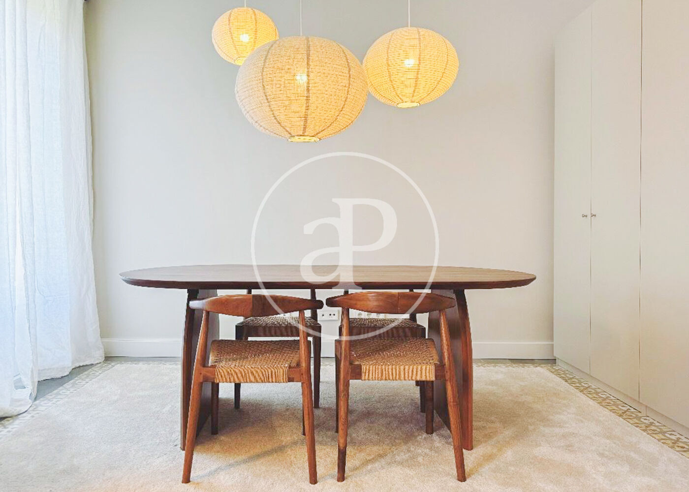 DISPONIBILITAT IMMEDIATA Ubicat a la millor zona de l’Eixample, a Rambla Catalunya amb el carrer Mallorca, trobem aquest fantàstic pis de 196 m² construïts, completament reformat amb molt de gust, tot nou a estrenar, moblat i totalment equipat al cor de la ciutat, a la Rambla de Catalunya, en una de les millors zones de Barcelona, al costat del Passeig de Gràcia, envoltat de comerços i amb grans connexions de transport. Aquesta magnífica vivenda disposa de quatre habitacions, una d’elles en suite, amb un vestidor de somni i sortida al balcó de ferro forjat típic de l’Eixample barceloní. La zona de dia compta amb un ampli saló-menjador amb sortida a una terrassa molt aprofitable que dóna a un pati d’illa ple de llum. La cuina, completament equipada amb electrodomèstics d’alta gamma, inclou una barra alta amb tamborets per gaudir d’un cafè o d’un àpat informal amb amics, així com la zona d’aigües on se situen la rentadora i l’assecadora. Un pis molt acollidor que combina una decoració actual i càlida amb sostres artesonats, portes de marqueteria originals pròpies d’aquest tipus d’edificis, vitralls a les finestres del còmode passadís, terres porcellànics, tancaments d’alumini amb doble vidre i càmera, així com aire condicionat i calefacció per conductes a totes i cadascuna de les estances. A més, la finca compta amb ascensor, porter i videovigilància. En definitiva, una vivenda ideal per a aquells que volen viure en un pis ple d’encant, al centre de Barcelona, en un dels carrers més emblemàtics de la ciutat. No dubtis a contactar-nos i demanar cita per visitar-lo, t’enamorarà! La finalitat del contracte és temporal. La realitat del mobiliari pot no correspondre exactament amb les fotografies mostrades en aquest anunci.* En compliment de la Llei 12/2023 i la Llei 18/2007 informem que:Índex de R.P.LL: 15,68 € / m2 Respecto a la presente propiedad no existe certificado informativo estatal de referencia de precios de alquilerEste propietario ostenta la condición de gran tenedor.