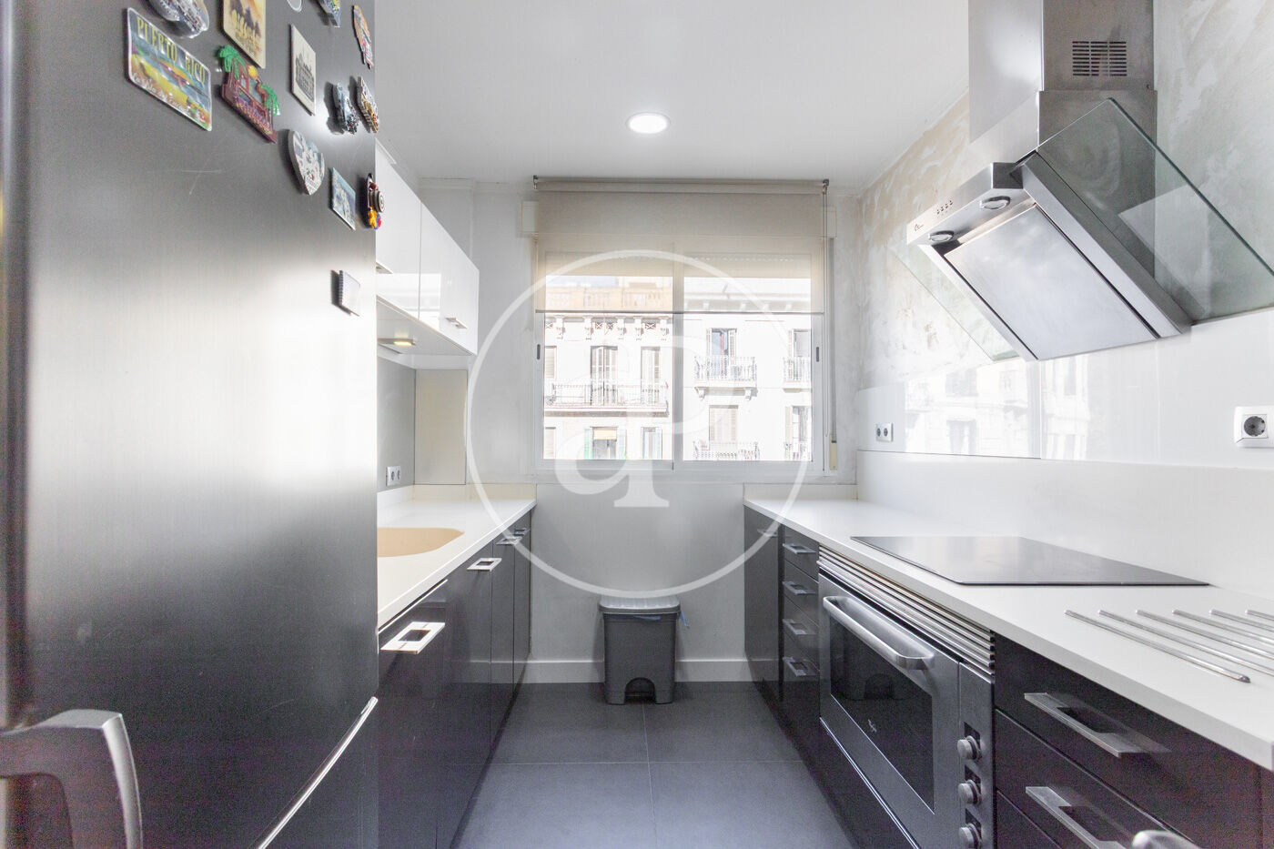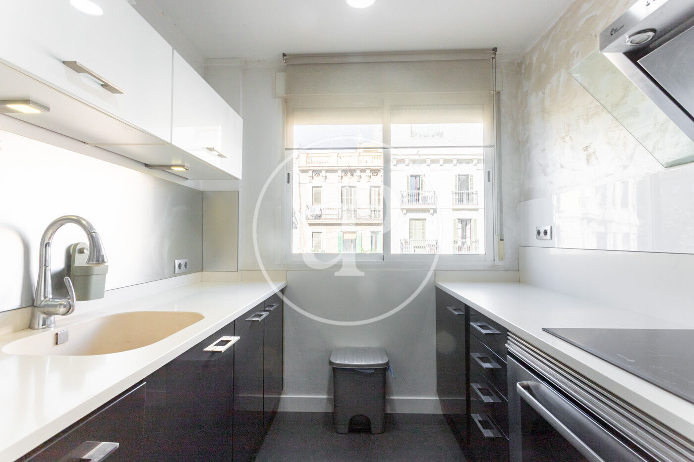 Al ple centre de l’Eixample Esquerre, envoltat de comerços i restaurants, trobem un habitatge moblat de disseny d’aproximadament 60 m². El pis té una distribució molt bona, ja que s’aprofiten tots els espais al mil·límetre. Consta d’un saló-menjador exterior amb cuina oberta i equipada amb tots els electrodomèstics, dues habitacions dobles i un bany complet amb plat de dutxa. L’habitatge disposa d’aire condicionat i calefacció per conductes.