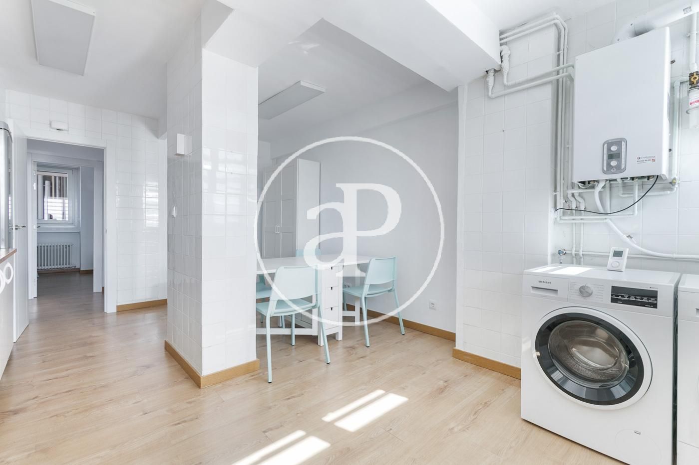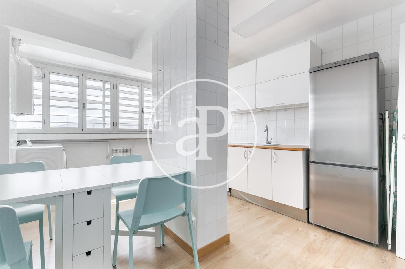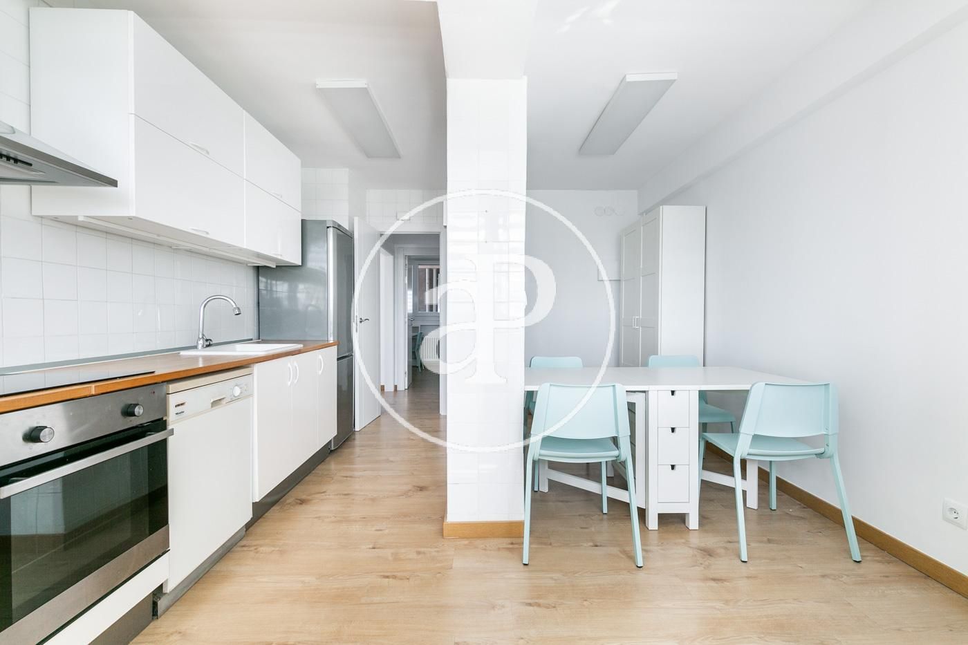El pis està format per un ampli saló-menjador equipat amb una taula gran per a diverses persones, un sofà i televisió. La cuina, reformada, està totalment equipada amb electrodomèstics i disposa d’una taula.