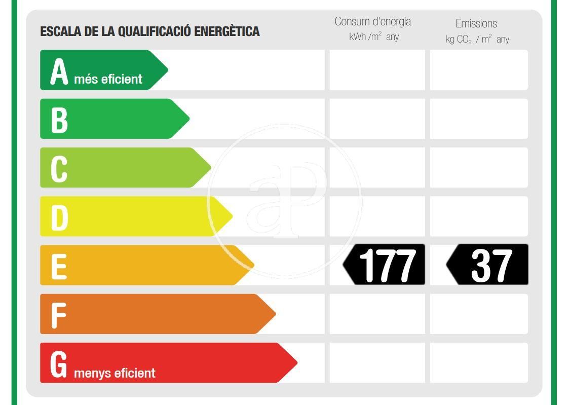 Més eficient Menys eficient Qualificació energètica Consum energia Kw h/m² any Emissions Co/m² any 177.00 37.00