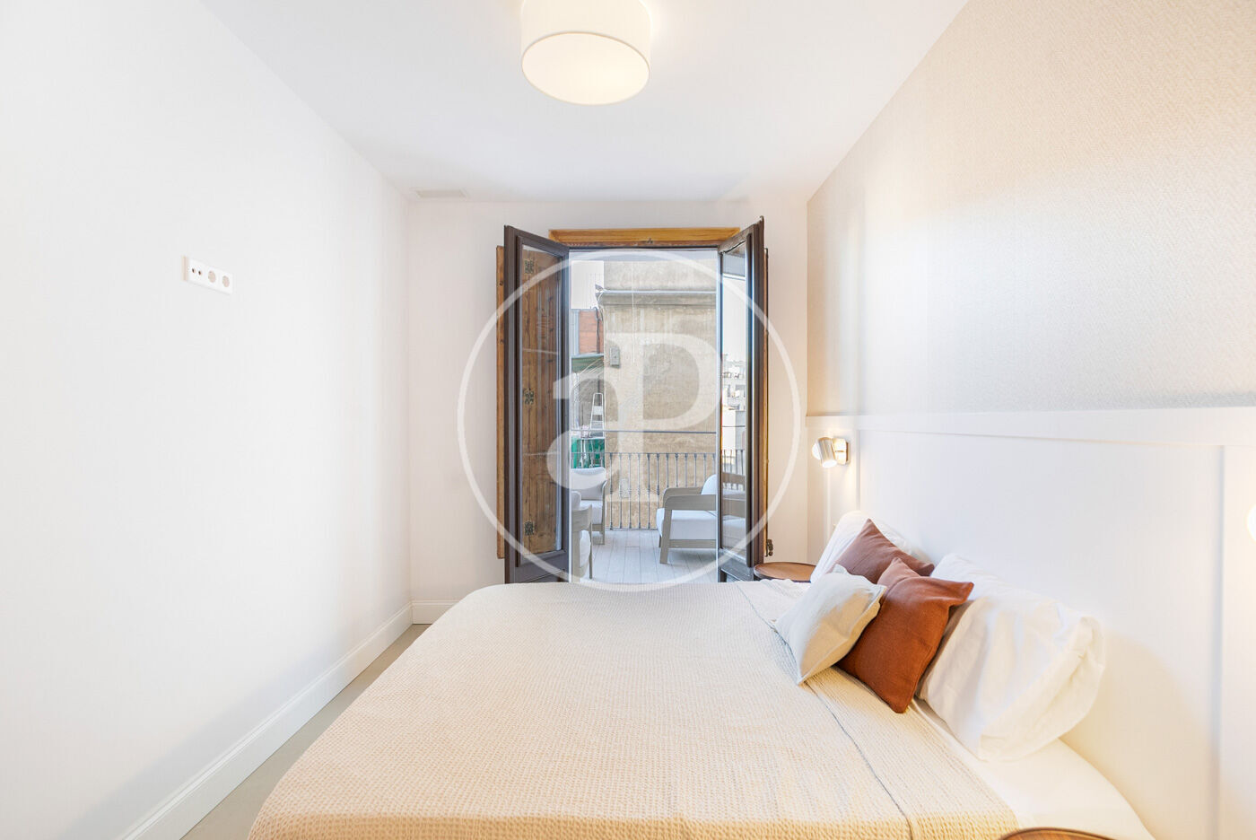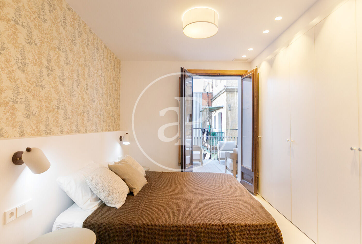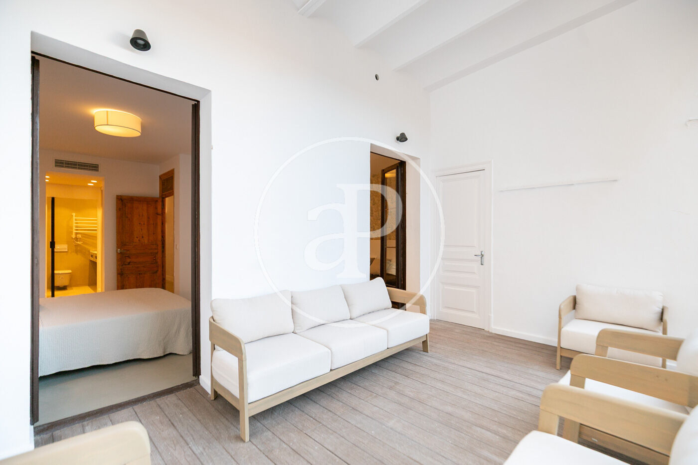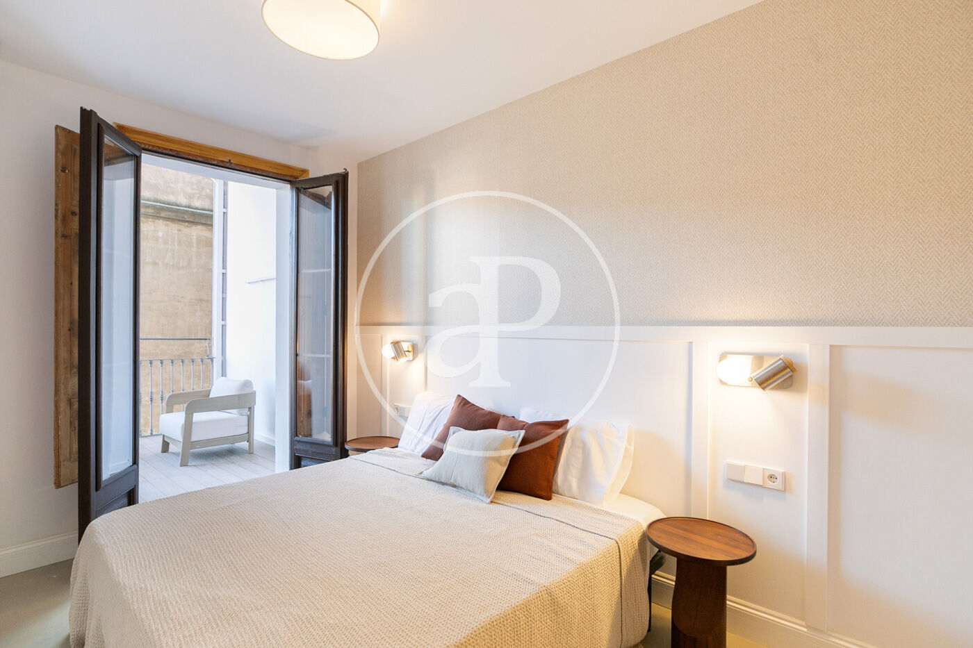 El pis s’entrega totalment moblat, amb mobiliari de disseny i una reforma integral que respecta l’essència arquitectònica de la finca: paviments hidràulics, volta catalana i detalls artesanals que doten la vivenda d’una personalitat única.