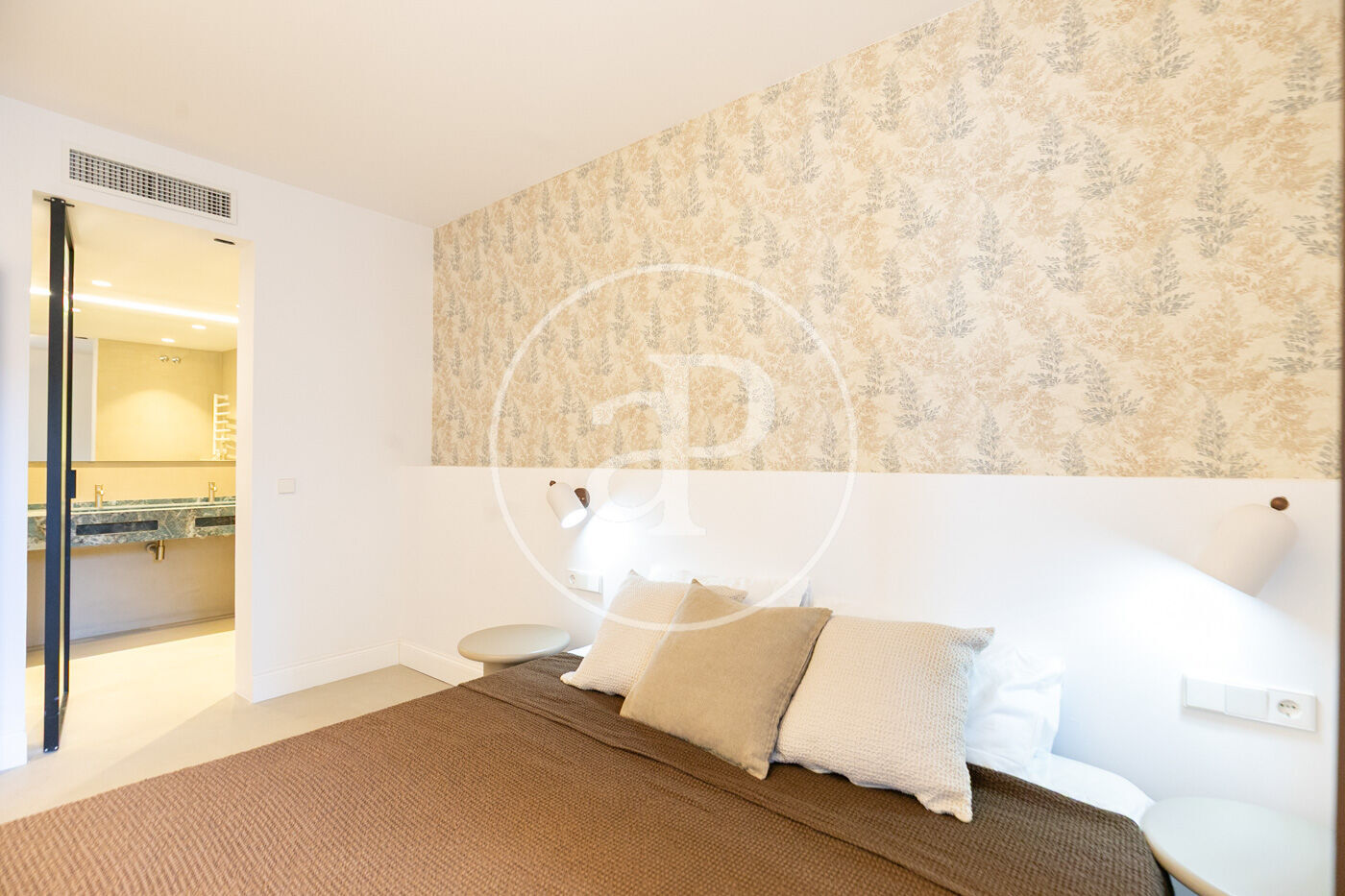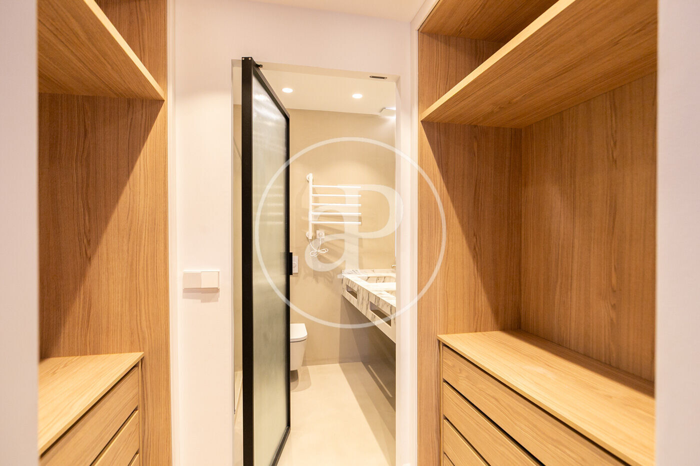 La suite principal incorpora un còmode walk-in closet i un bany complet, mentre que la segona suite compta amb armaris encastats. Ambdues estances tenen sortida directa a una àmplia terrassa privada de 17 m², ideal per gaudir del clima mediterrani durant tot l’any.
