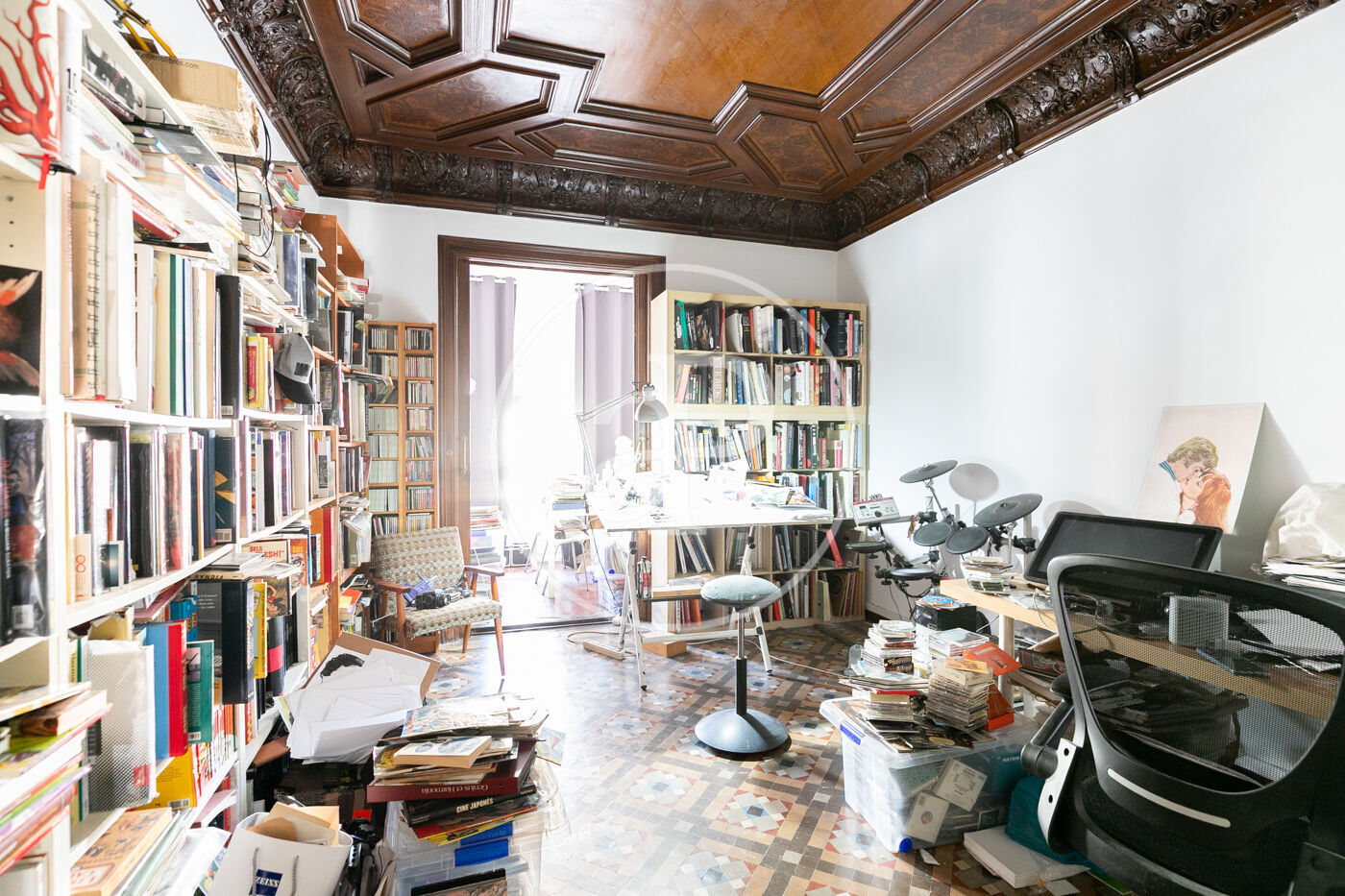 El pis conserva tot l’encant de l’arquitectura clàssica barcelonina: terres hidràulics originals, sostres artesonats i grans alçades que aporten amplitud i caràcter.