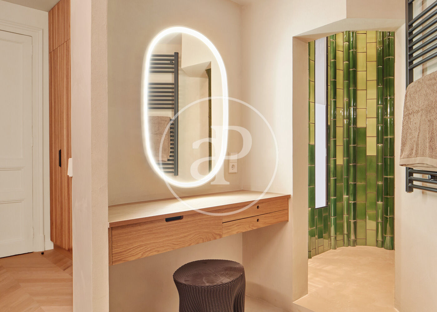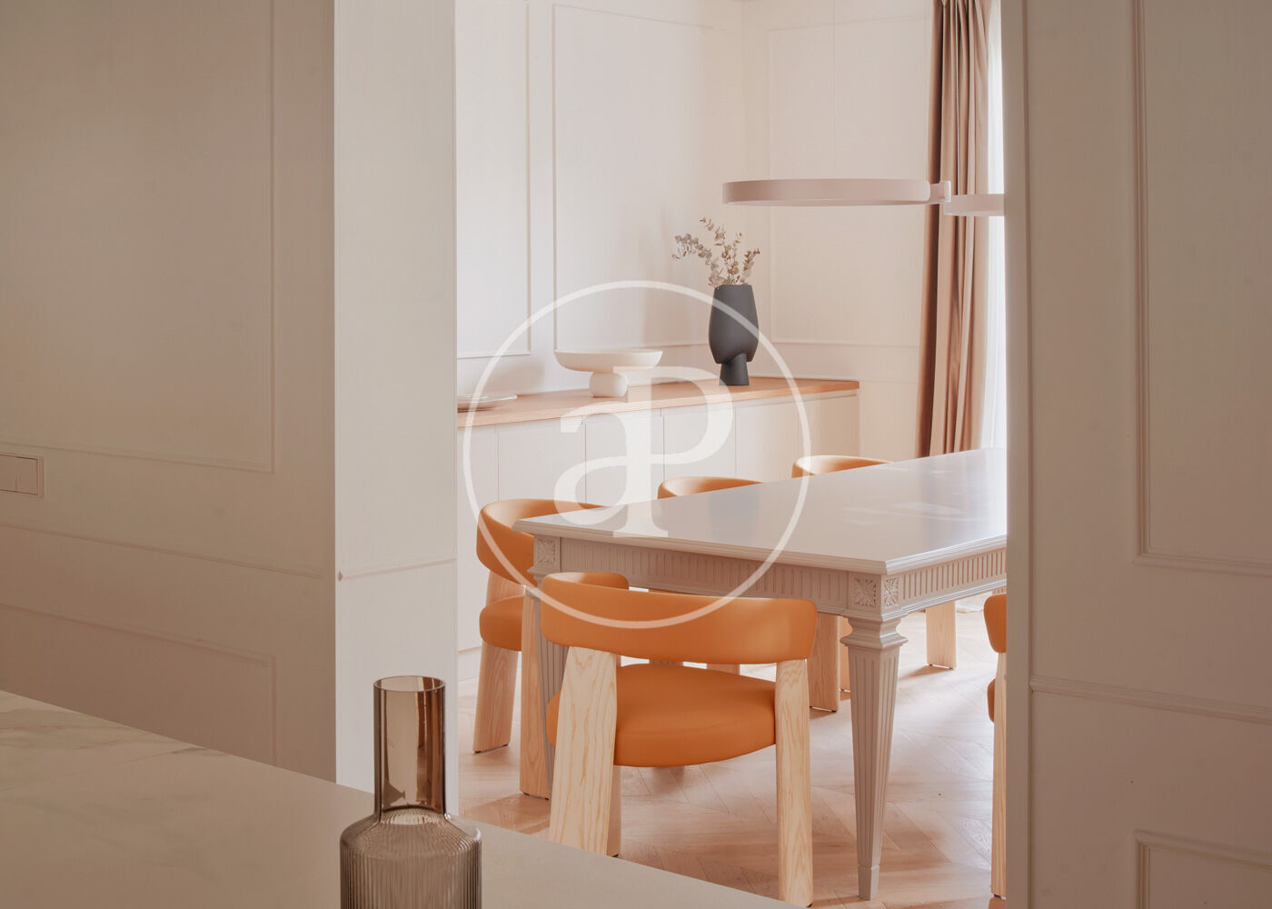 Reformat íntegrament amb materials de primera qualitat, el pis —a estrenar— conserva valuosos elements originals que aporten caràcter i personalitat: sostres alts, terres de parquet en espiga i la calidesa pròpia dels grans clàssics. El resultat és una atmosfera serena, elegant i plena d’ànima.