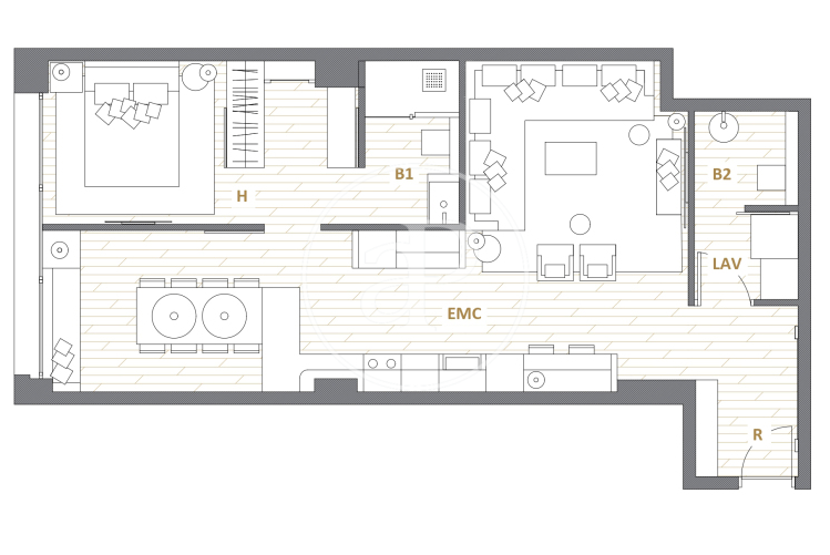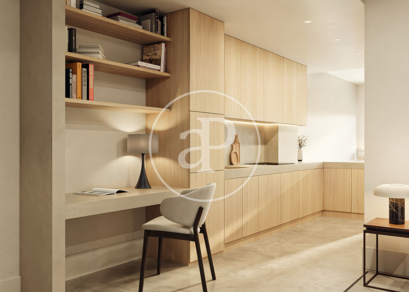 El pis ha estat íntegrament rehabilitat utilitzant acabats de la més alta qualitat i amb una gran atenció als detalls. El seu disseny modern, de línies netes i contínues, aconsegueix generar espais funcionals i acollidors, amb il·luminació natural i zones integrades que aporten homogeneïtat i sensació d’amplitud a l’habitatge.