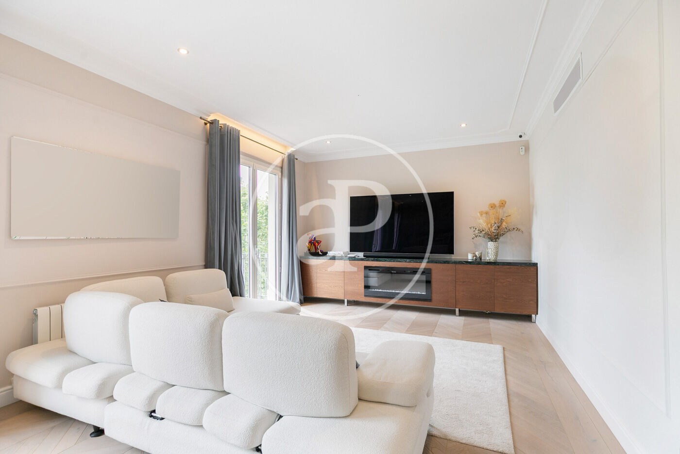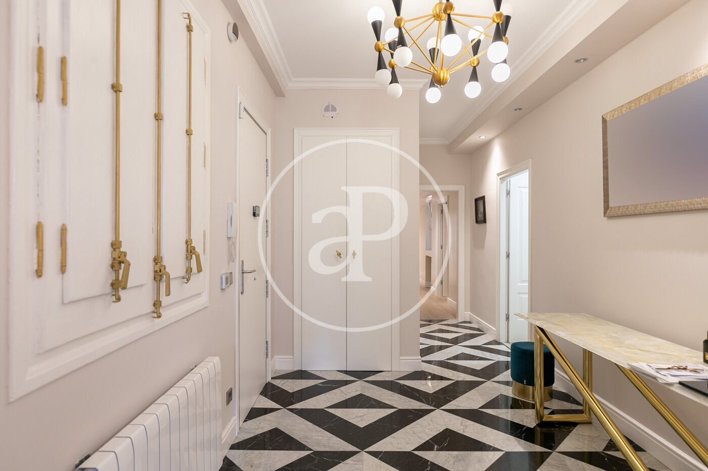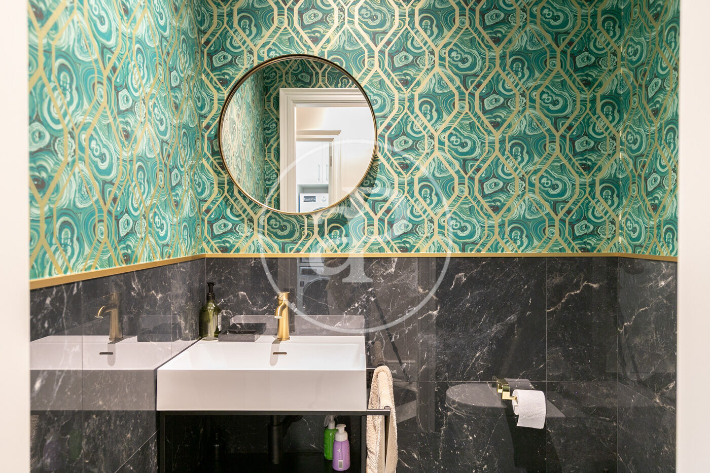 A la prestigiosa Avinguda Diagonal i en una majestuosa finca règia de mitjan segle passat, trobem aquest preciós pis de 225 m² que dona tant a la façana principal com a la posterior, a través de tres balcons al carrer i una petita terrassa i una galeria orientades a un pati interior d’illa. Els seus sostres alts i la gran quantitat de llum emmarquen una reforma amb acabats extremadament acurats i materials d’alta qualitat, tot amb un lleuger toc Art Decó. La distribució, lògica i racional, marca una clara diferència entre la zona de dia i la zona de nit. A la zona de dia, trobem un ampli saló-menjador en una sola peça amb sortida a diversos balcons, juntament amb una àmplia cuina amb zona d’aigües independent i un quart vestidor. A la zona de nit trobem tres dormitoris dobles en suite amb bany i vestidor, dos dels quals són exteriors; un amb sortida a una terrassa d’uns 4 m² i l’altre, el principal, amb galeria envidrada.