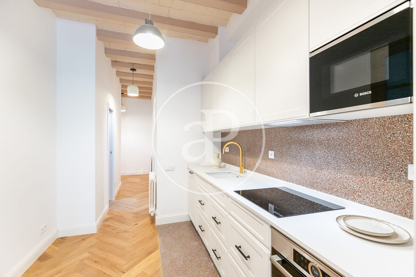 Aquest pis ha estat reformat integralment, respectant i destacant els elements arquitectònics propis de les finques règies. Els sostres alts, la volta catalana i els sòls de mosaic són testimonis de la bellesa arquitectònica de principis del segle XX, oferint un toc d'elegància i sofisticació.