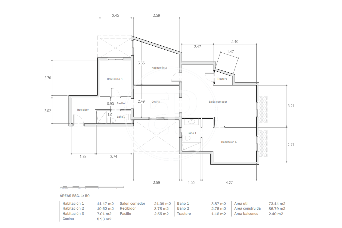 El pis consta de tres habitacions. La suite principal, exterior, compta amb un balcó que proporciona una vista encantadora i molta llum natural. Aquesta habitació inclou un bany privat amb una luxosa dutxa de cascada. A més, hi ha una habitació doble i una habitació individual, perfectes per a acomodar a una família o per a utilitzar-les com a espai de treball o estudi. El segon bany, compartit, està dissenyat amb un estil contemporani i funcional.