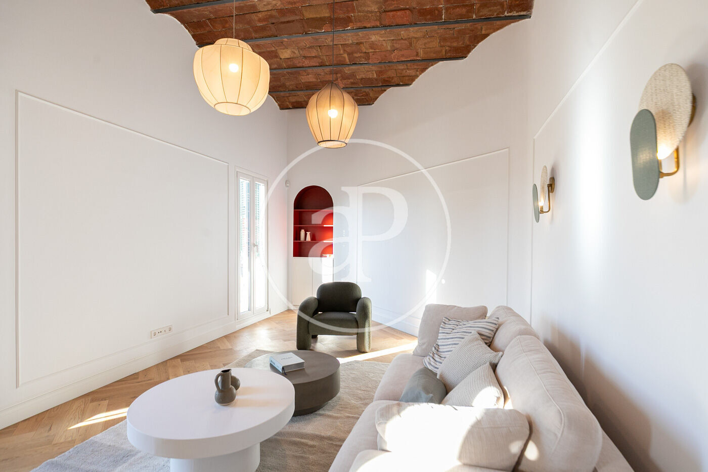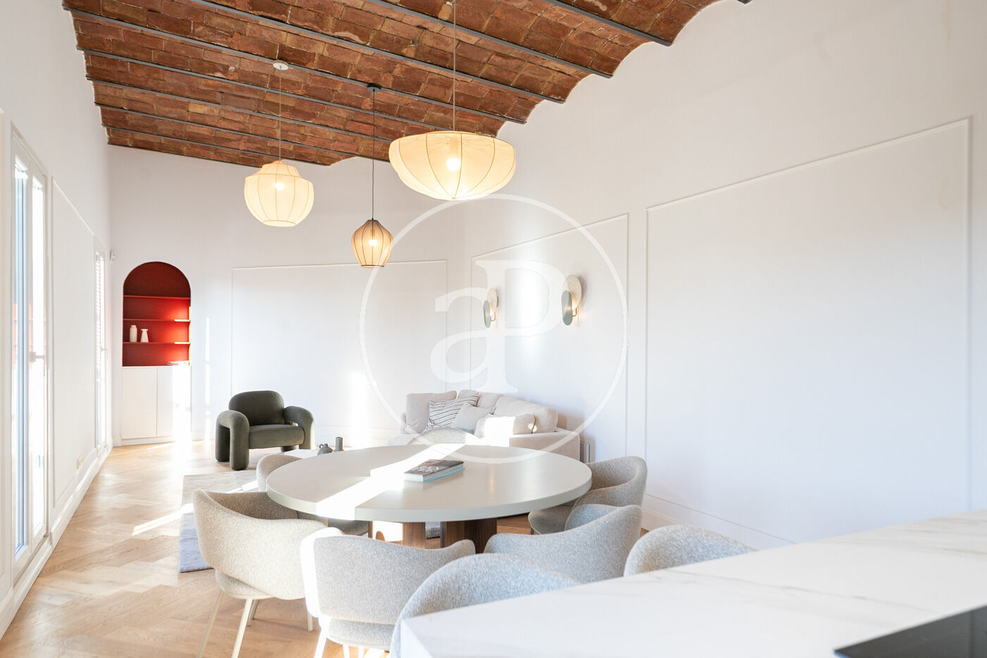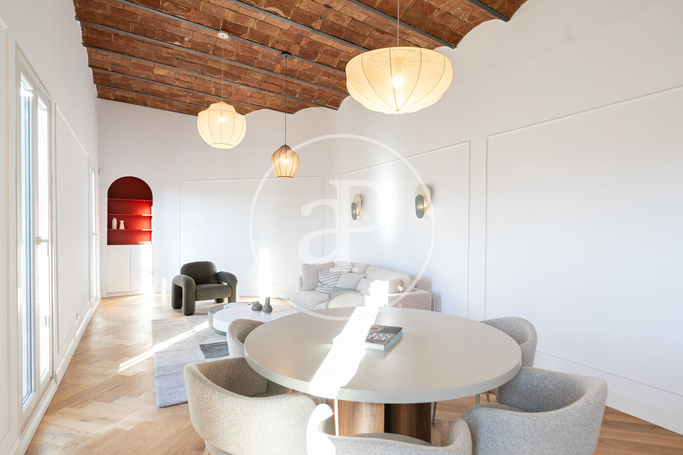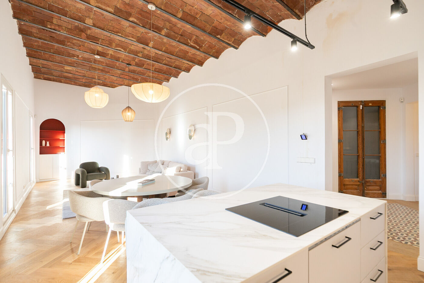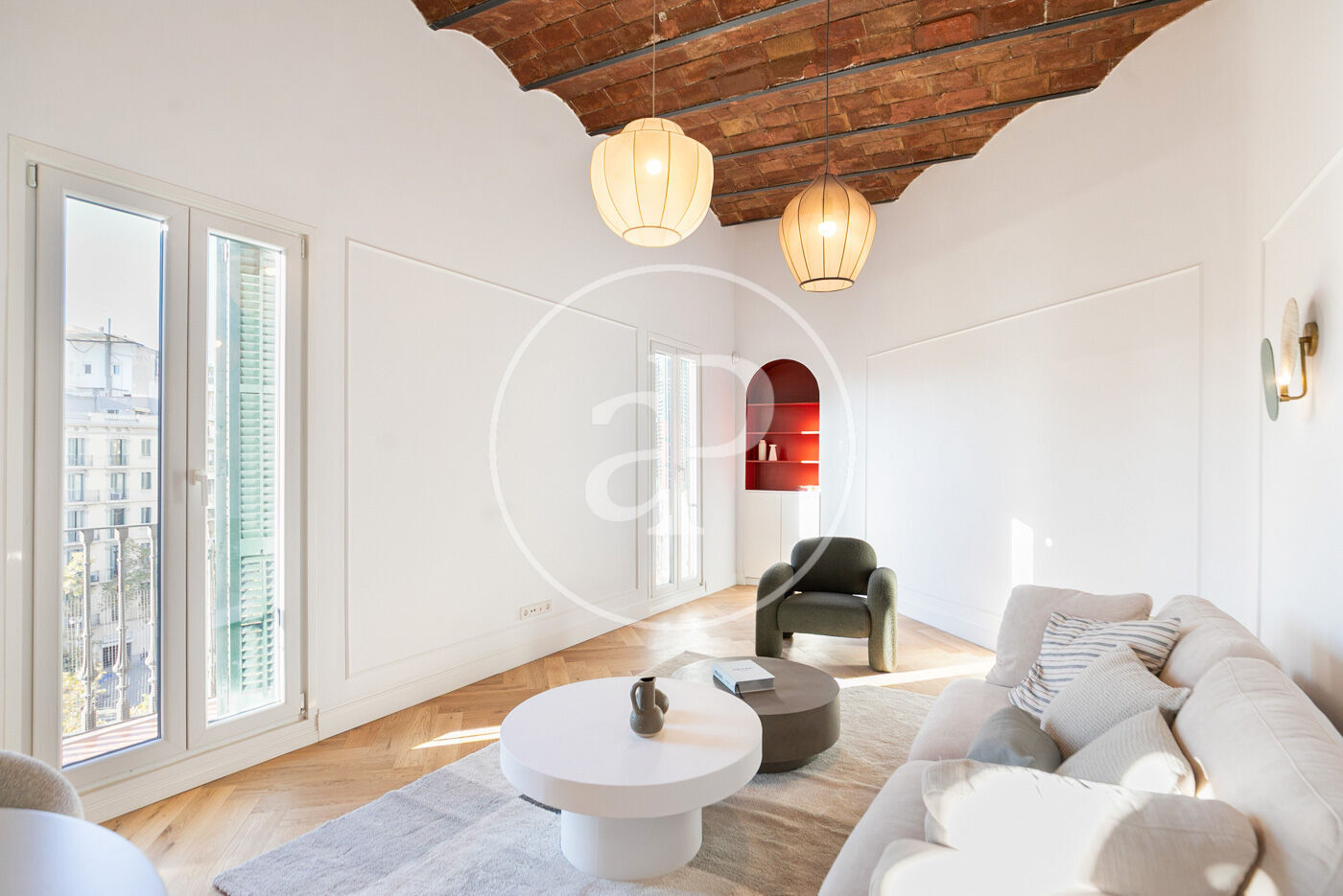 Exclusiva vivenda de 145 m² íntegrament reformada, situada a l’emblemàtica Gran Via de Barcelona. Aquest magnífic pis cantoner, ubicat en una finca modernista, destaca pels seus sostres molt alts, la seva extraordinària lluminositat i les seves vistes àmplies gràcies a l’alçada de la vivenda, combinant el caràcter històric amb un estil contemporani i sofisticat.