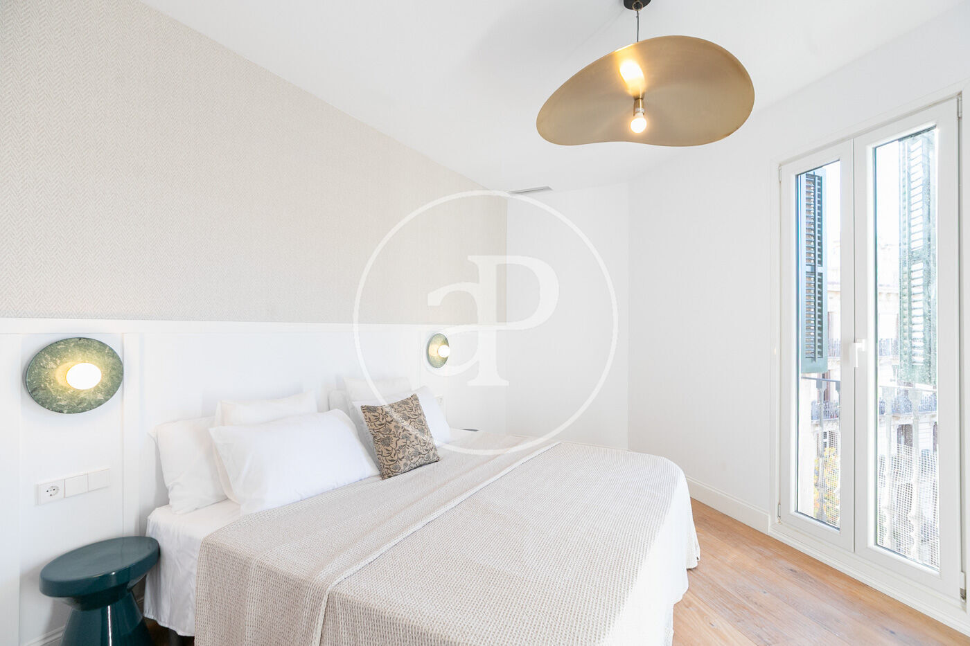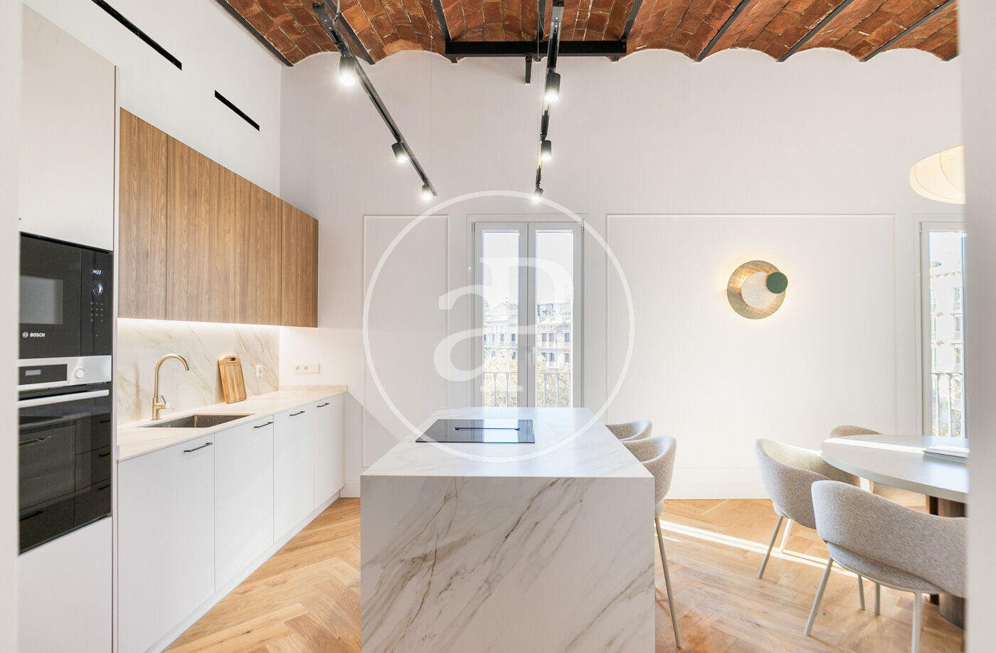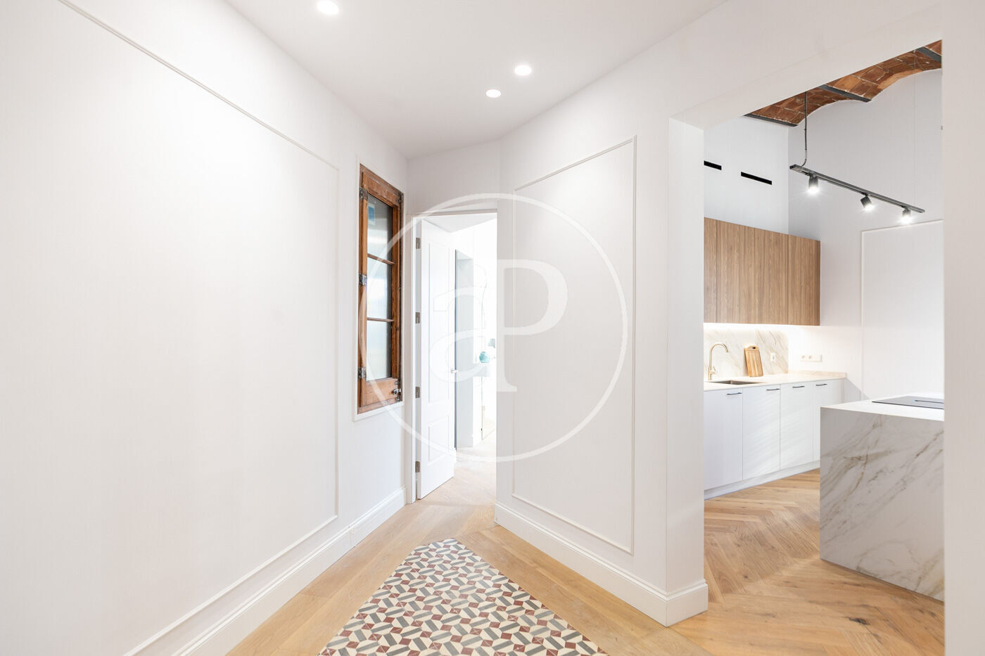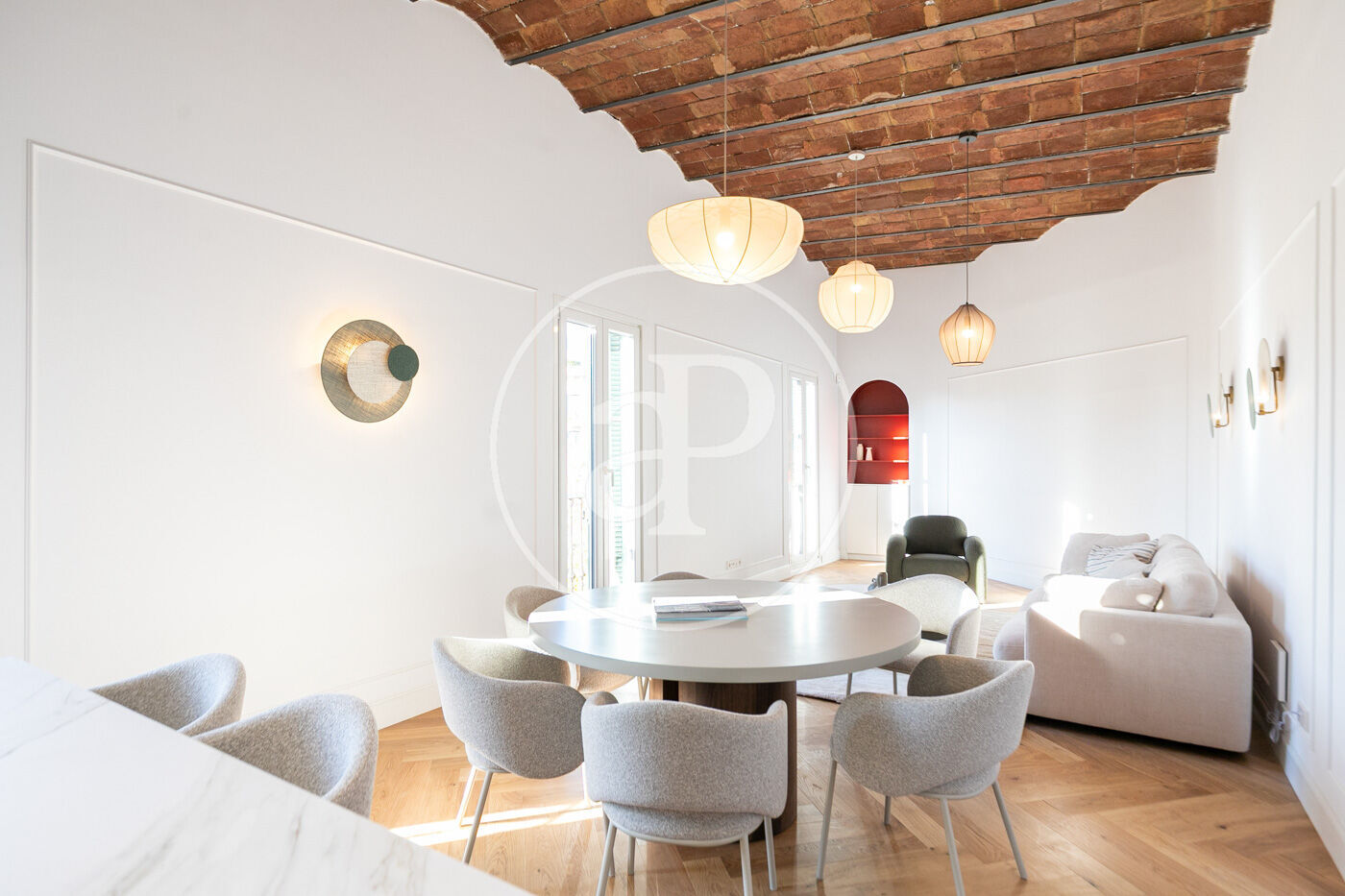 Exclusiva vivenda de 145 m² íntegrament reformada, situada a l’emblemàtica Gran Via de Barcelona. Aquest magnífic pis cantoner, ubicat en una finca modernista, destaca pels seus sostres molt alts, la seva extraordinària lluminositat i les seves vistes àmplies gràcies a l’alçada de la vivenda, combinant el caràcter històric amb un estil contemporani i sofisticat.