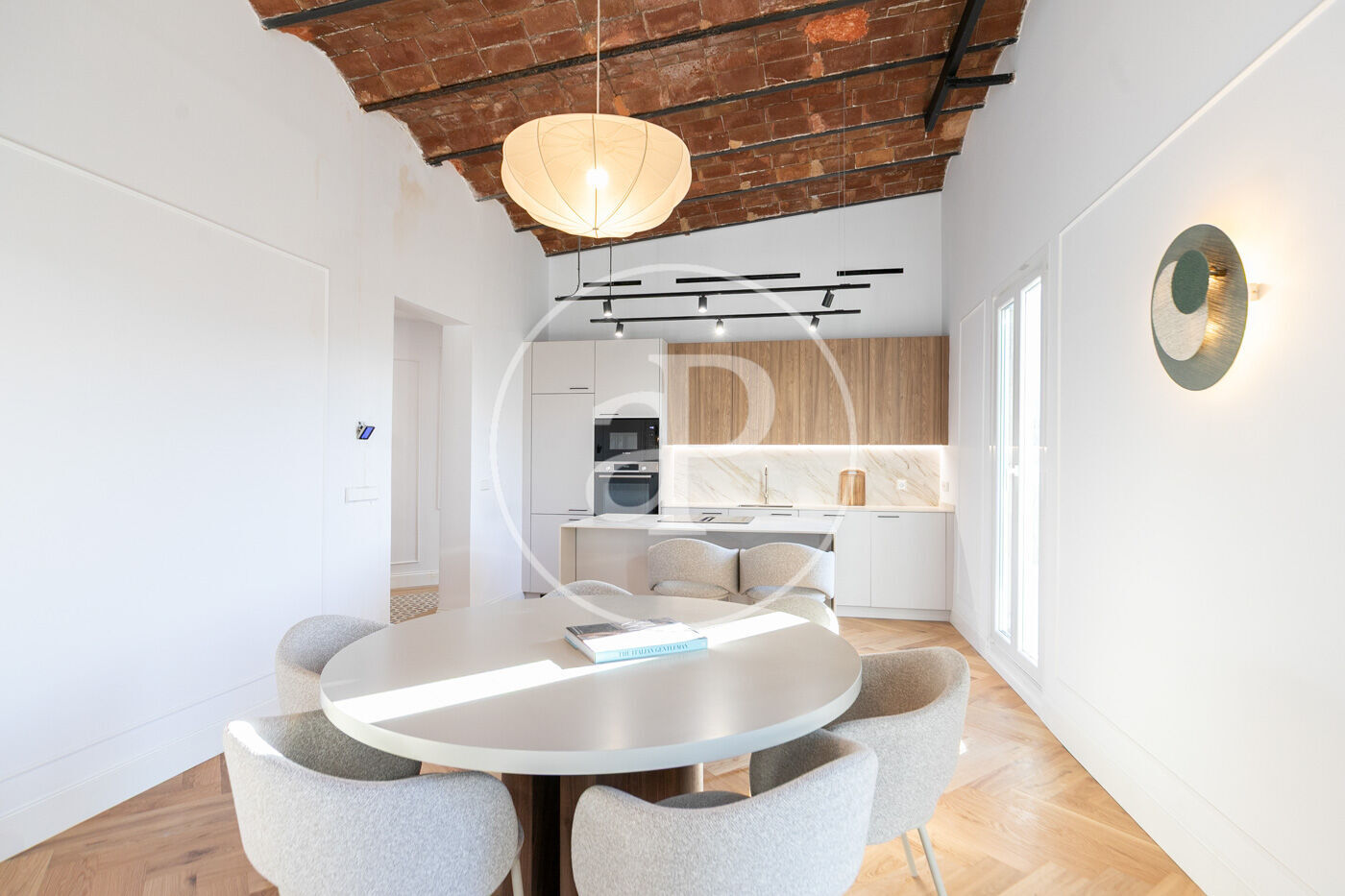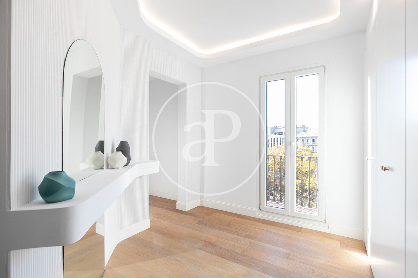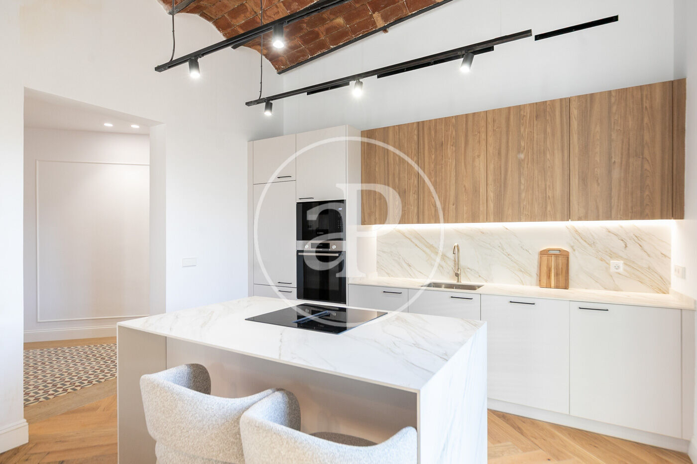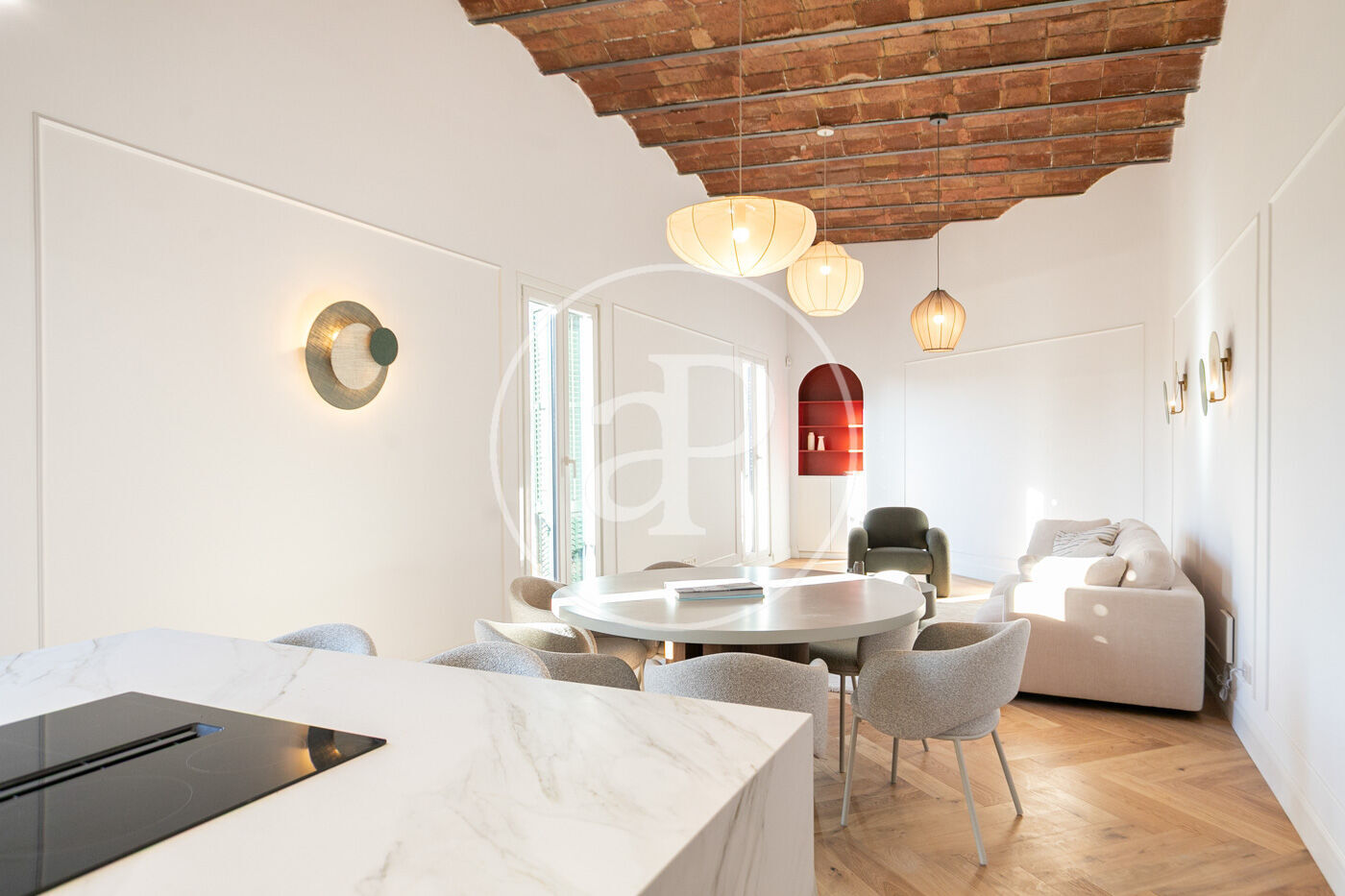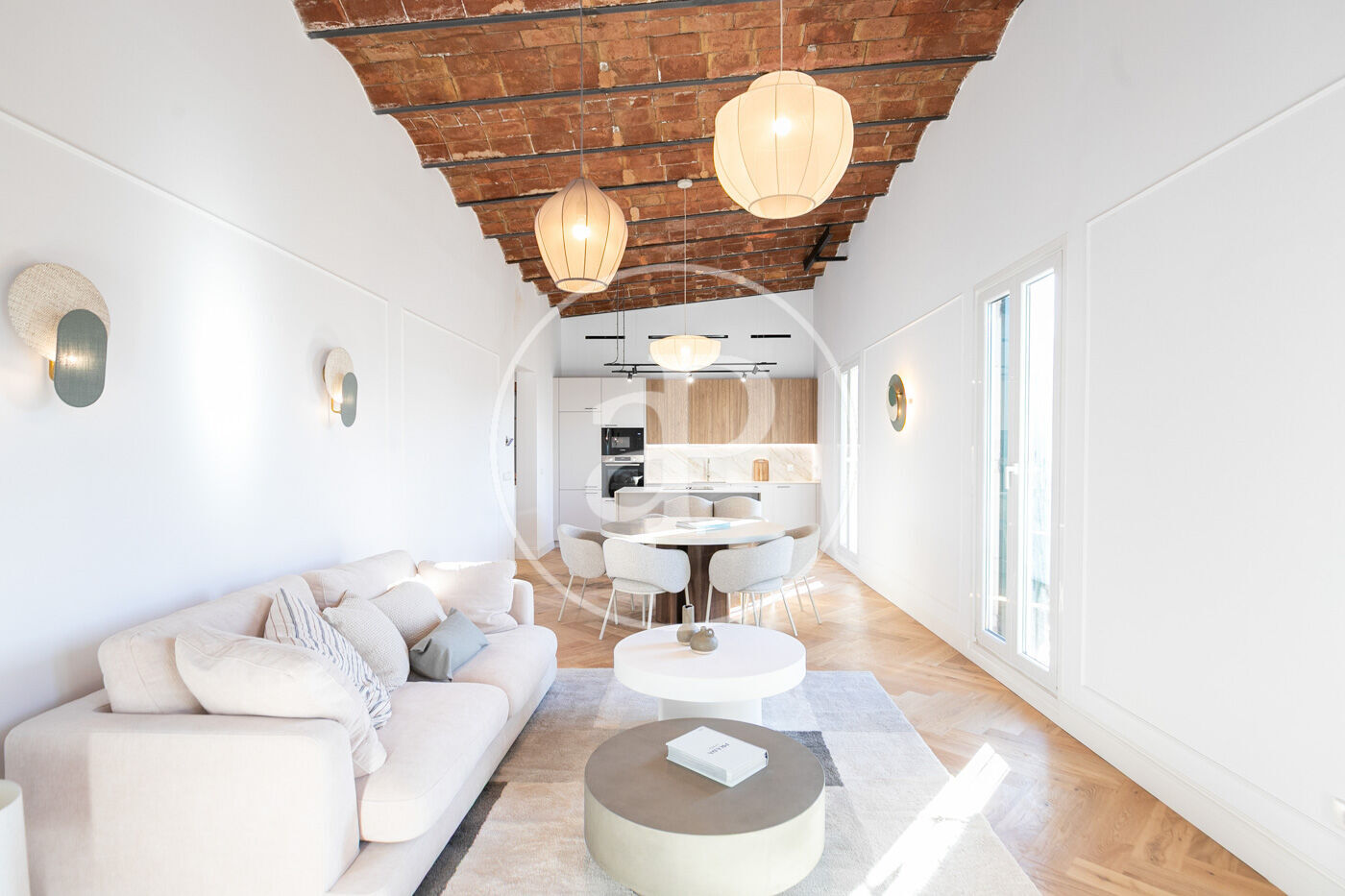 Exclusiva vivenda de 145 m² íntegrament reformada, situada a l’emblemàtica Gran Via de Barcelona. Aquest magnífic pis cantoner, ubicat en una finca modernista, destaca pels seus sostres molt alts, la seva extraordinària lluminositat i les seves vistes àmplies gràcies a l’alçada de la vivenda, combinant el caràcter històric amb un estil contemporani i sofisticat.