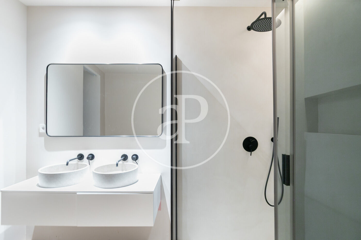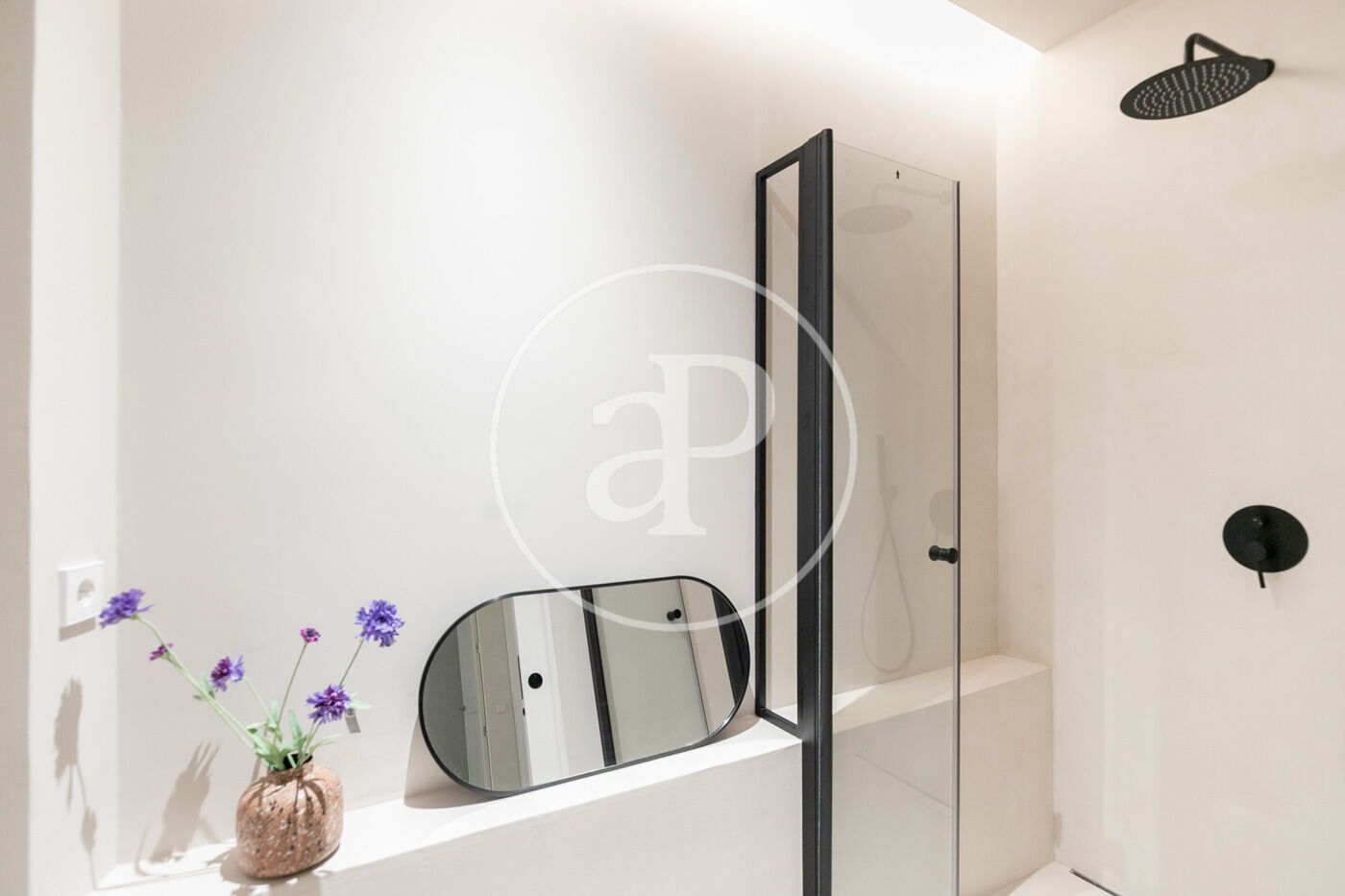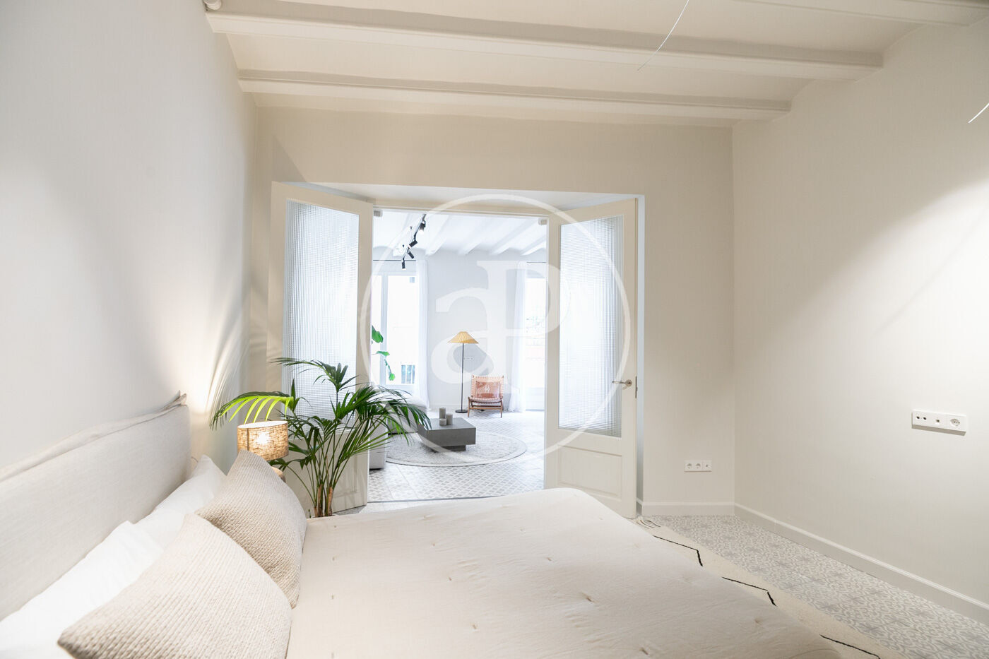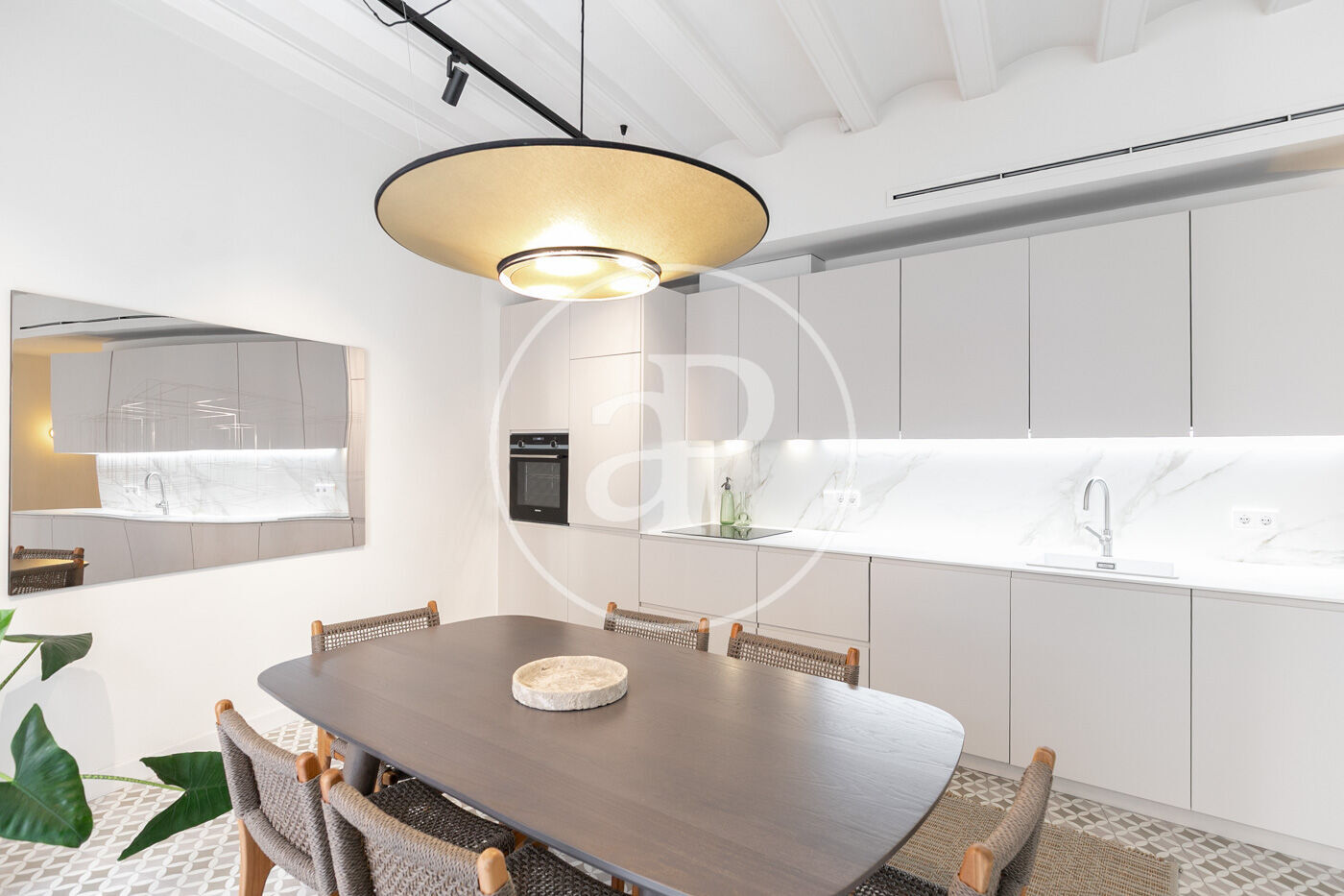 La vivenda compta amb una superfície útil de 90 m² distribuïts de forma funcional i lluminosa. L'ampli saló, banyat per llum natural gràcies a la seva orientació sud-est, s'obre a un balcó que recorre tota la façana principal i ofereix vistes a l'encantadora carrer Sant Pere Més Alt, respirant l'autèntica essència del Born. La cuina americana, integrada en l'espai, està completament equipada amb electrodomèstics d'alta qualitat i mobiliari de disseny.