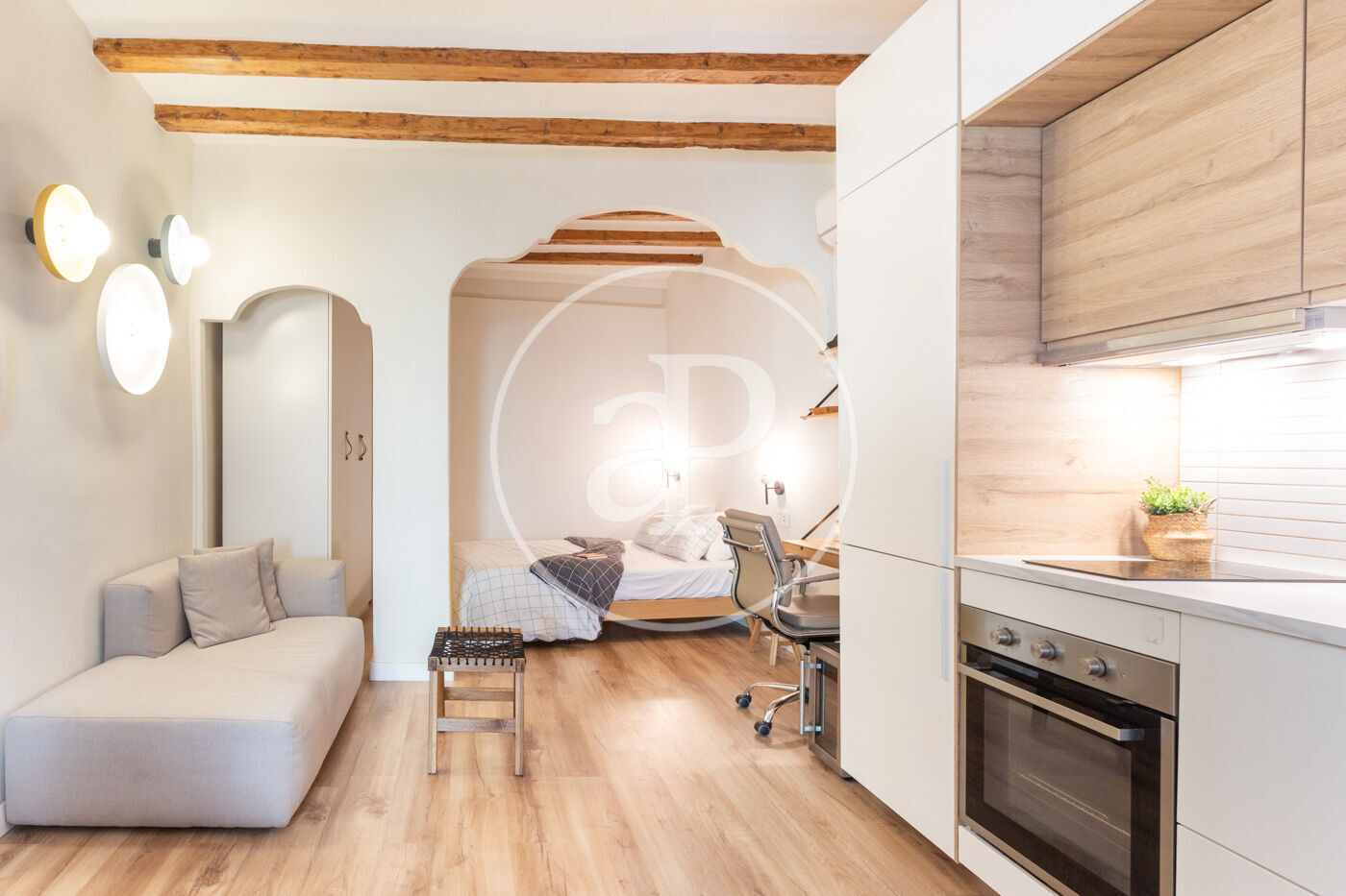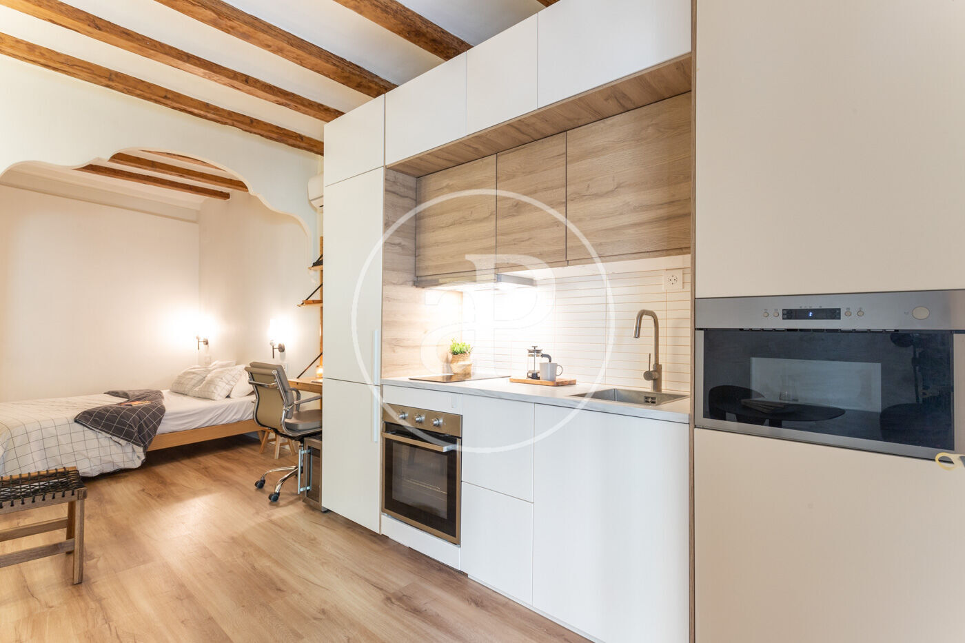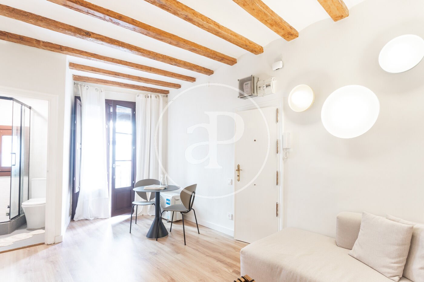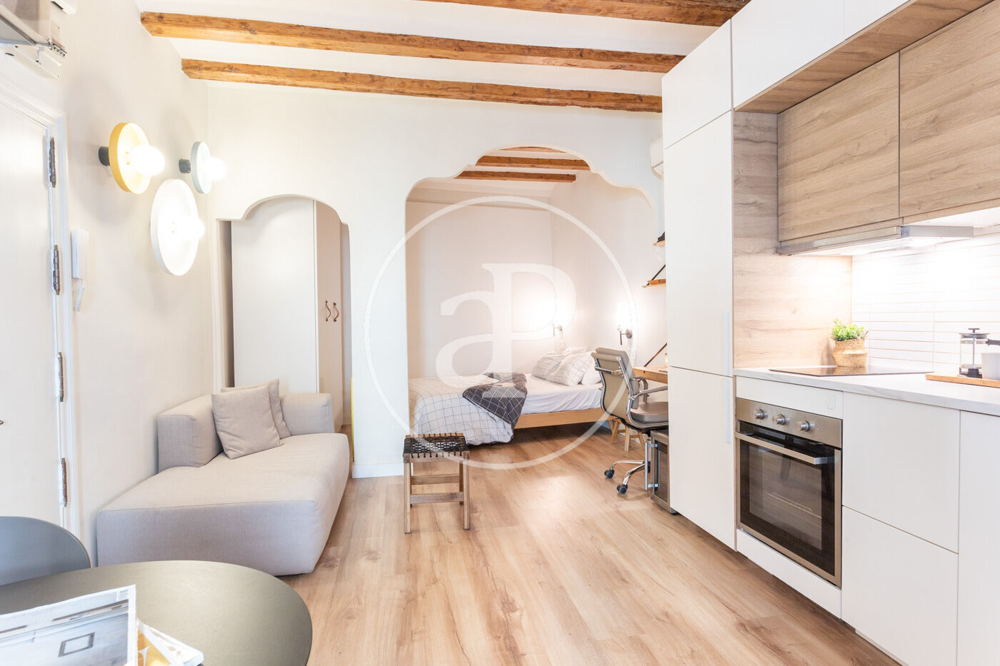 En el centre històric de Barcelona, on els carrers es fan peculiars i romàntiques, al costat d'una placita on prendre una copa a l'ombra d'un arbre de jacaranda, trobem en la segona planta d'un edifici renovat, aquest estudi amb zona de nit separada. El pis, que es va reformar per complet amb acabats d'alta qualitat, es lliura completament moblat i amb tots els accessoris perquè sigui una immediata inversió.