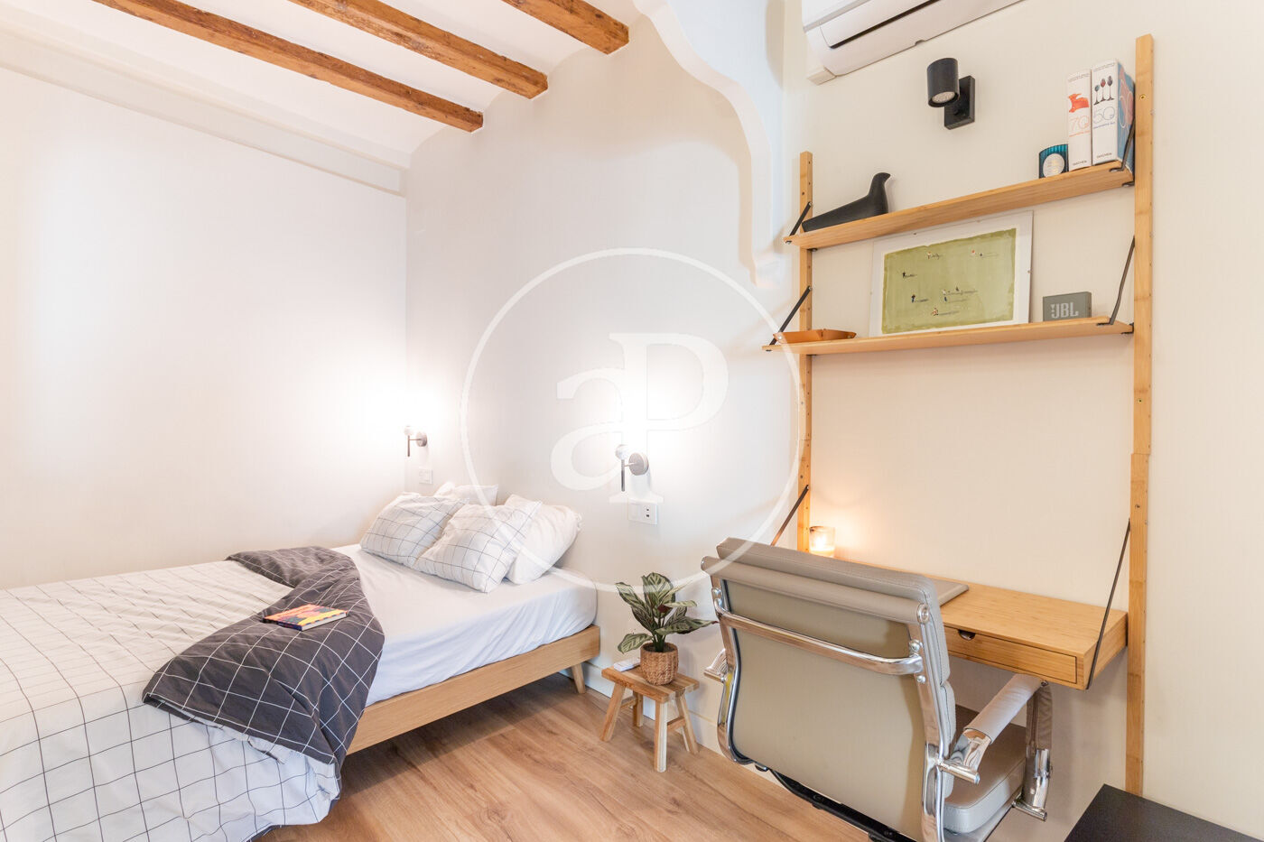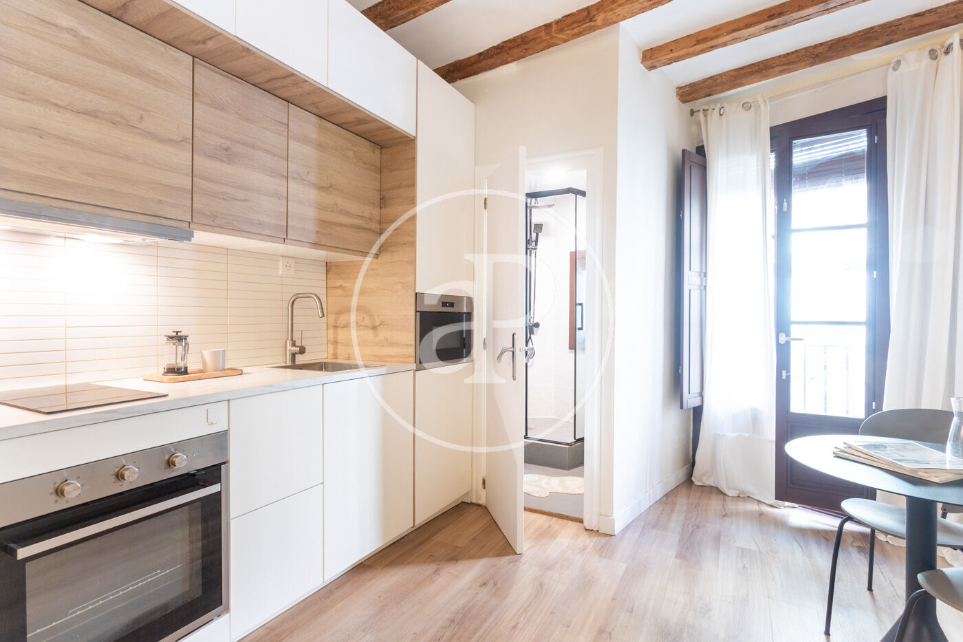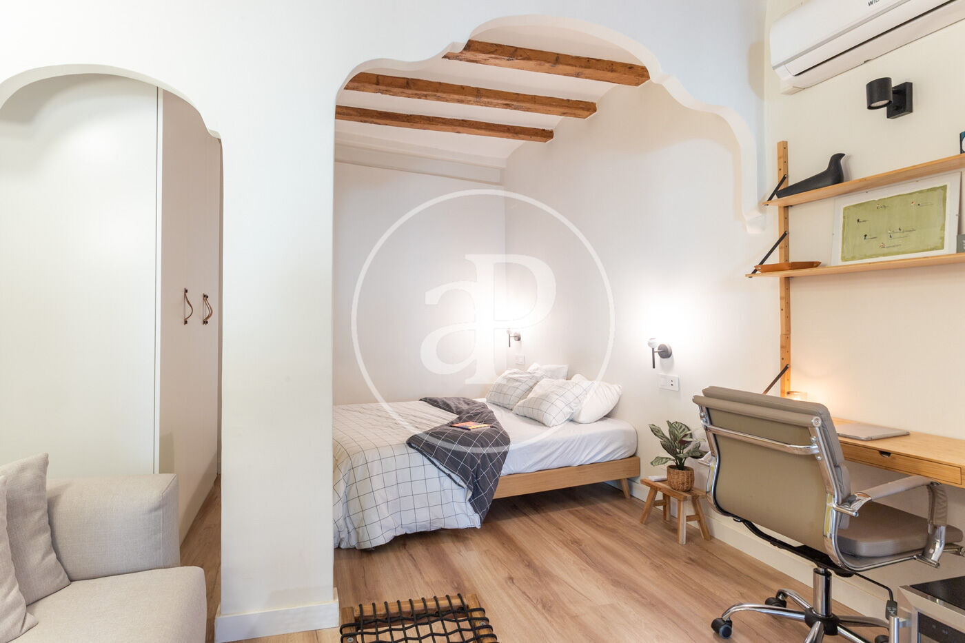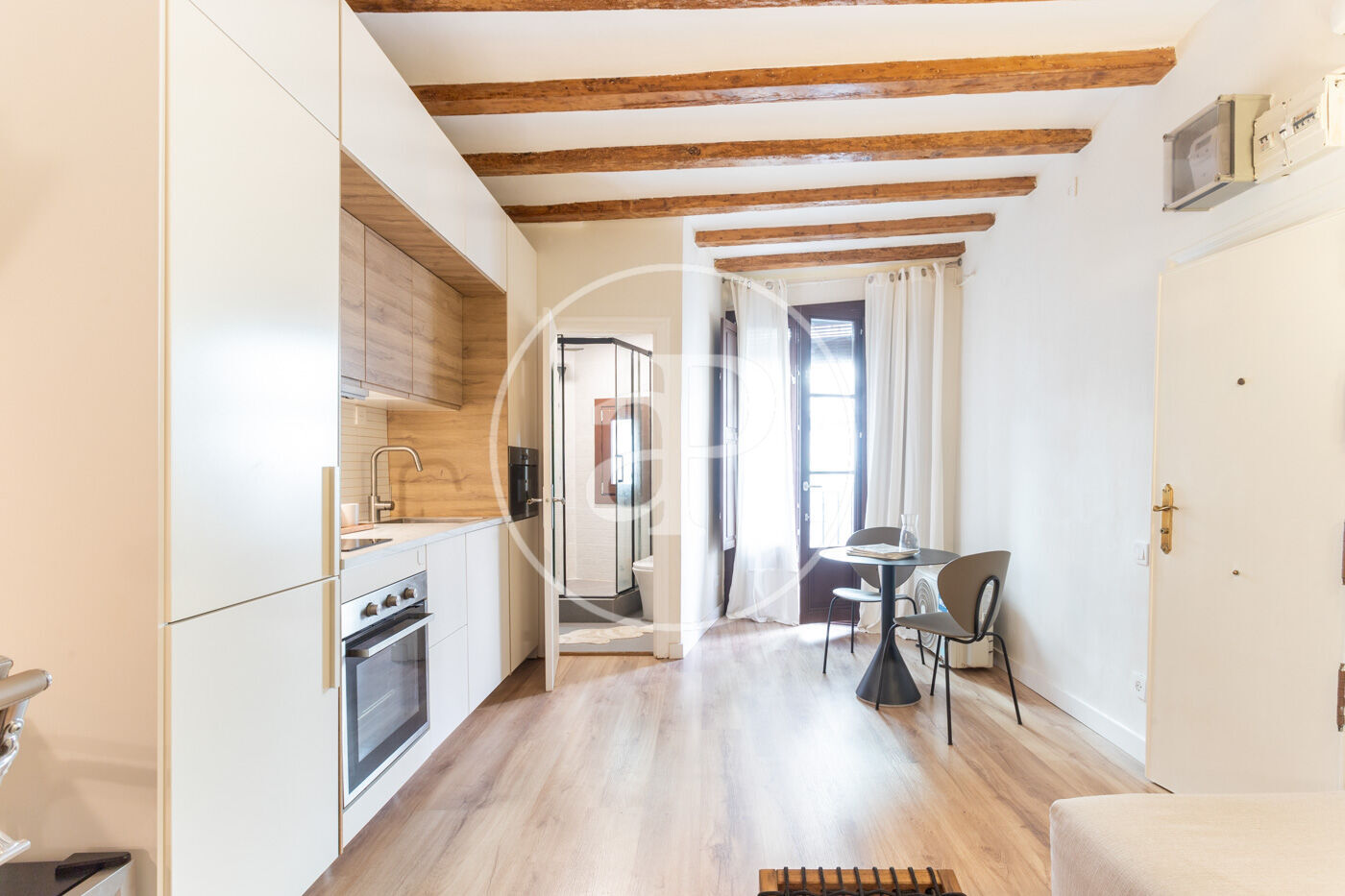 En el centre històric de Barcelona, on els carrers es fan peculiars i romàntiques, al costat d'una placita on prendre una copa a l'ombra d'un arbre de jacaranda, trobem en la segona planta d'un edifici renovat, aquest estudi amb zona de nit separada. El pis, que es va reformar per complet amb acabats d'alta qualitat, es lliura completament moblat i amb tots els accessoris perquè sigui una immediata inversió.