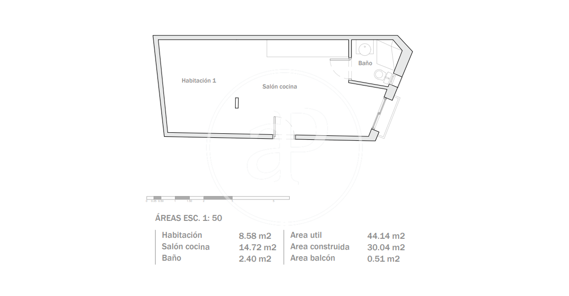 L'estudi disposa també d'un balcó, un bany amb dutxa àmplia i envidrada, aire condicionat i bomba de calor.