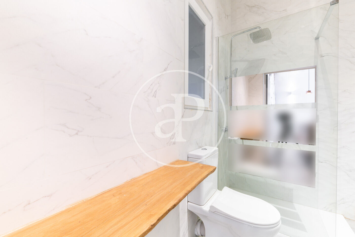 Ubicat al barri icònic de Sant Antoni, a pocs passos del mercat homònim i de tota mena de serveis i transports, en un edifici clàssic rehabilitat íntegrament, amb ascensor i zones comunitàries, trobem aquest acollidor loft ple d'encant i totalment llest per entrar a viure. L’habitatge que presentem es tracta d’un primer pis orientat a pati d’illa. Es tracta d’un habitatge convertible. L’edifici disposa d’incomparables zones comunes com terrassa comunitària amb dutxes exteriors, lounge i barra social, aparcament per a bicicletes, celler de vins, bugaderia, zona coworking, gimnàs i sala de cinema. Un concepte d’apartaments convertibles dotats amb un sistema de panells corredissos que permeten transformar un únic espai en un apartament de dos dormitoris dobles en suite amb llits ocultables als armaris a mida, que van d’un extrem a l’altre de l’apartament. El nucli central conté la cuina i el bany. La cuina està totalment equipada amb electrodomèstics integrats (rentavaixelles, forn, forn-microones, cafetera i frigorífic), aixeteria Zucchetti i taulell marca Porcelanosa; el bany està dividit en tres peces independents amb accés doble des de cada dormitori. L’apartament que presentem disposa de 54 m² construïts i possibilitat d’1 o 2 dormitoris, i sortida a terrassa d’uns 20 m² orientada a pati d’illa. Una oportunitat única plena d’encant i comoditat en un dels barris més vibrants de la ciutat!
