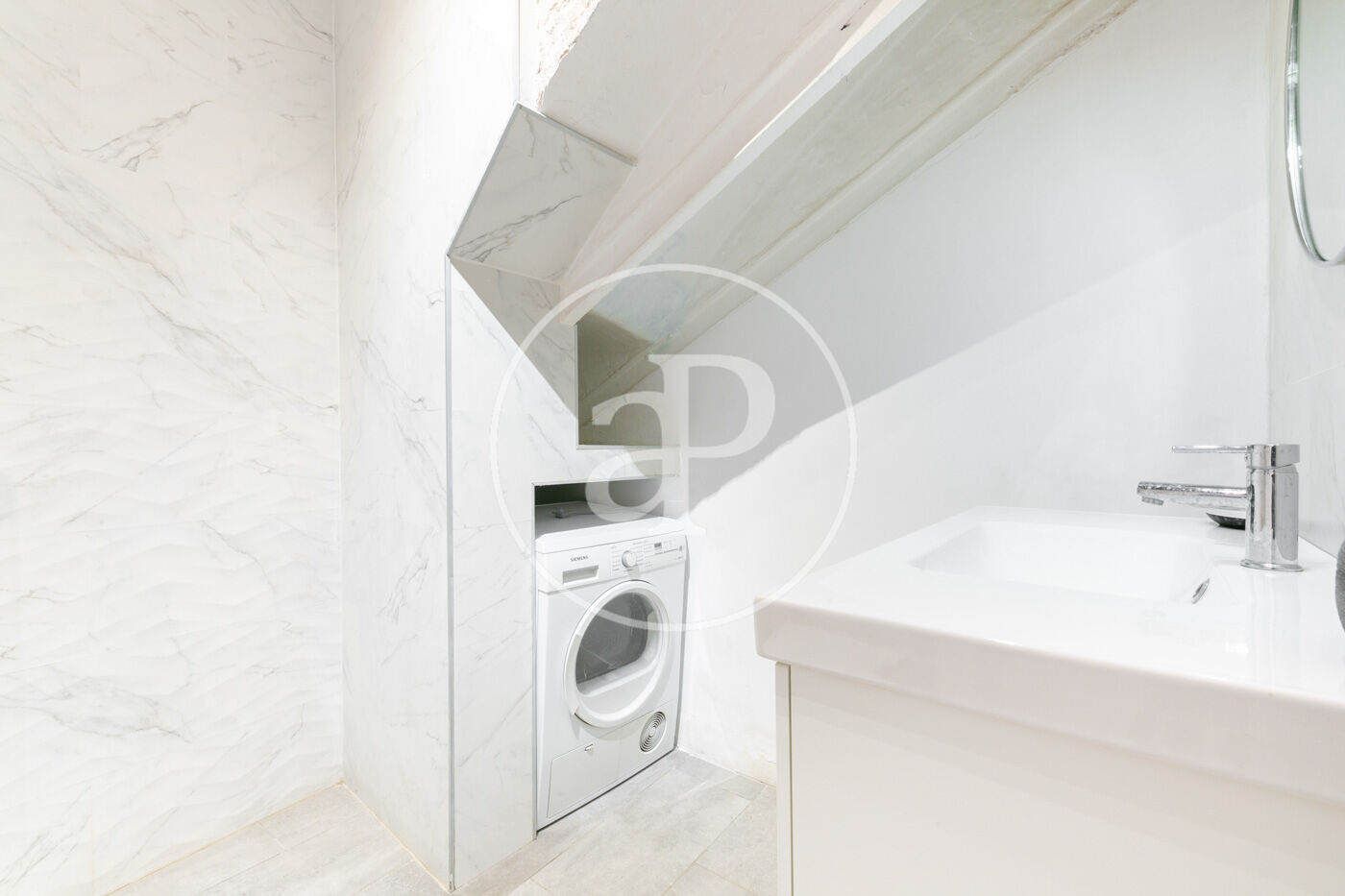 Al carrer Sant Antoni Abat, eix per als vianants connectat amb l’àrea pacificada del Mercat de Sant Antoni, presentem aquest acollidor àtic situat a la cinquena planta real d’una finca clàssica sense ascensor. Amb una superfície construïda de 47 m² més 30 m² de terrassa, aquest pis ha estat recentment reformat amb molta cura, conservant elements originals que li donen personalitat, com les voltes catalanes amb bigues de fusta vistes i les parets de maó vist, en harmonia amb acabats moderns. La distribució, pràctica i funcional, compta amb un rebedor-passadís a través del qual accedim a la sala d’estar amb cuina integrada i sortida a un balcó on gaudir d’un cafè al sol amb vistes al Mercat de Sant Antoni, un acollidor dormitori doble i un bany complet. Totes les estances gaudeixen de magnífica llum natural i bones vistes. Pujant a la planta superior per les escales comunitàries descobrim la fantàstica terrassa d’ús privatiu, equipada amb dutxa exterior, tarima i pèrgola de fusta per gaudir de les vistes magnífiques. Aquesta llar és ideal per a qui cerca un habitatge amb ànima, lluminós i amb vistes, en una zona cèntrica, ben comunicada i amb tots els serveis a prop, i que no vol renunciar a un espai exterior privatiu per gaudir del magnífic clima de la Ciutat Comtal. No dubtis a contactar amb nosaltres per programar una visita!