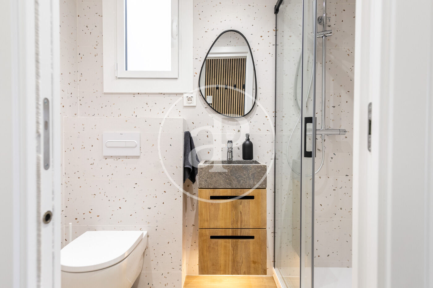 A la zona de nit, trobem una habitació doble molt assolellada amb sortida a un balcó, i finalment un bany complet amb plat de dutxa.