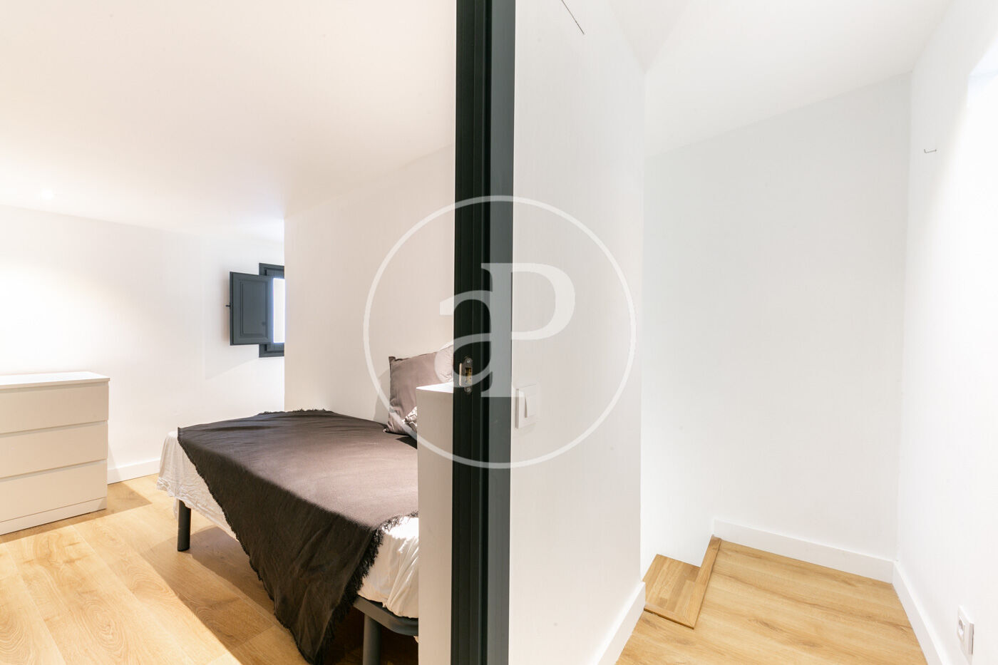 Disposa de dues habitacions: una individual i una doble al pis superior, amb llum natural i armaris, que comparteixen un bany complet a la mateixa planta.