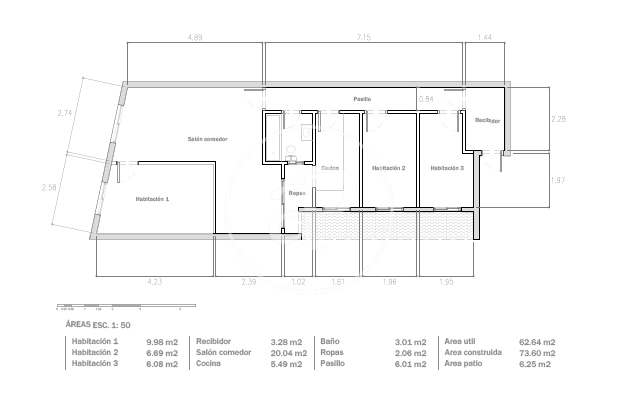 La segona part de l'habitatge trobem el saló menjador amb il·luminació natural i l'última habitació el doble exterior que compta amb molt bona il·luminació i ventilació natural
