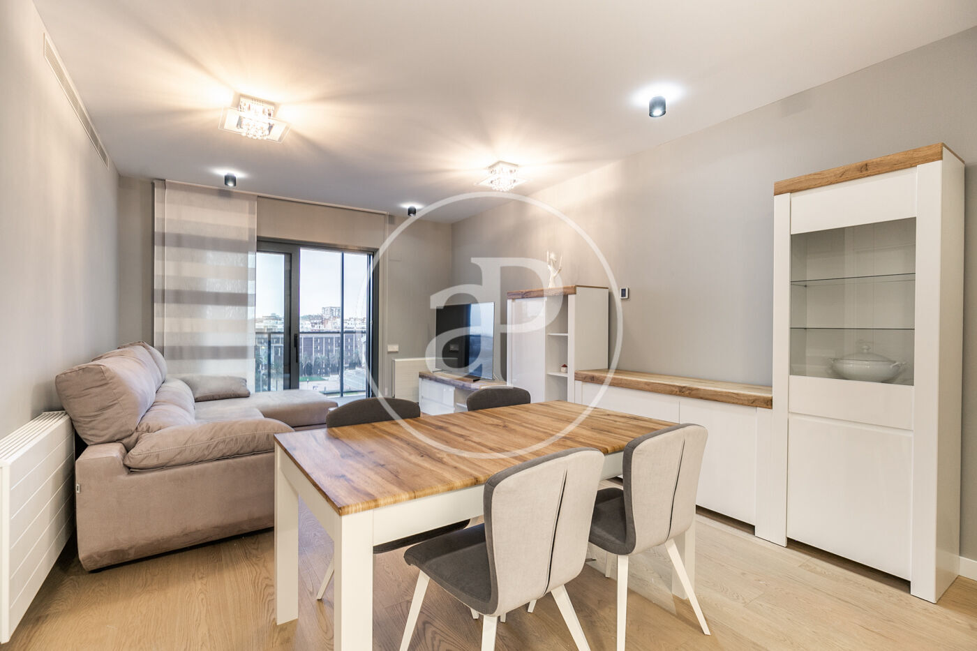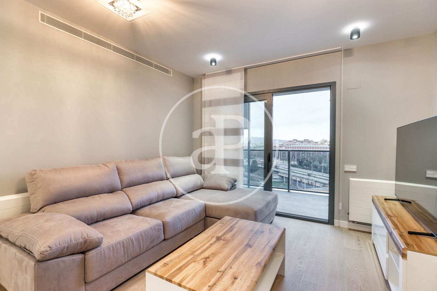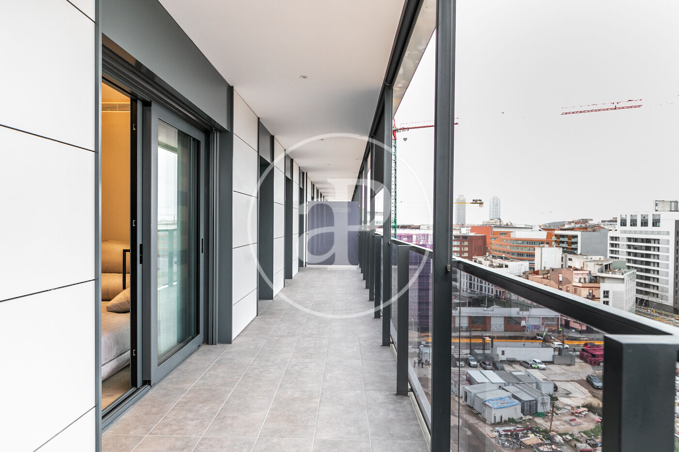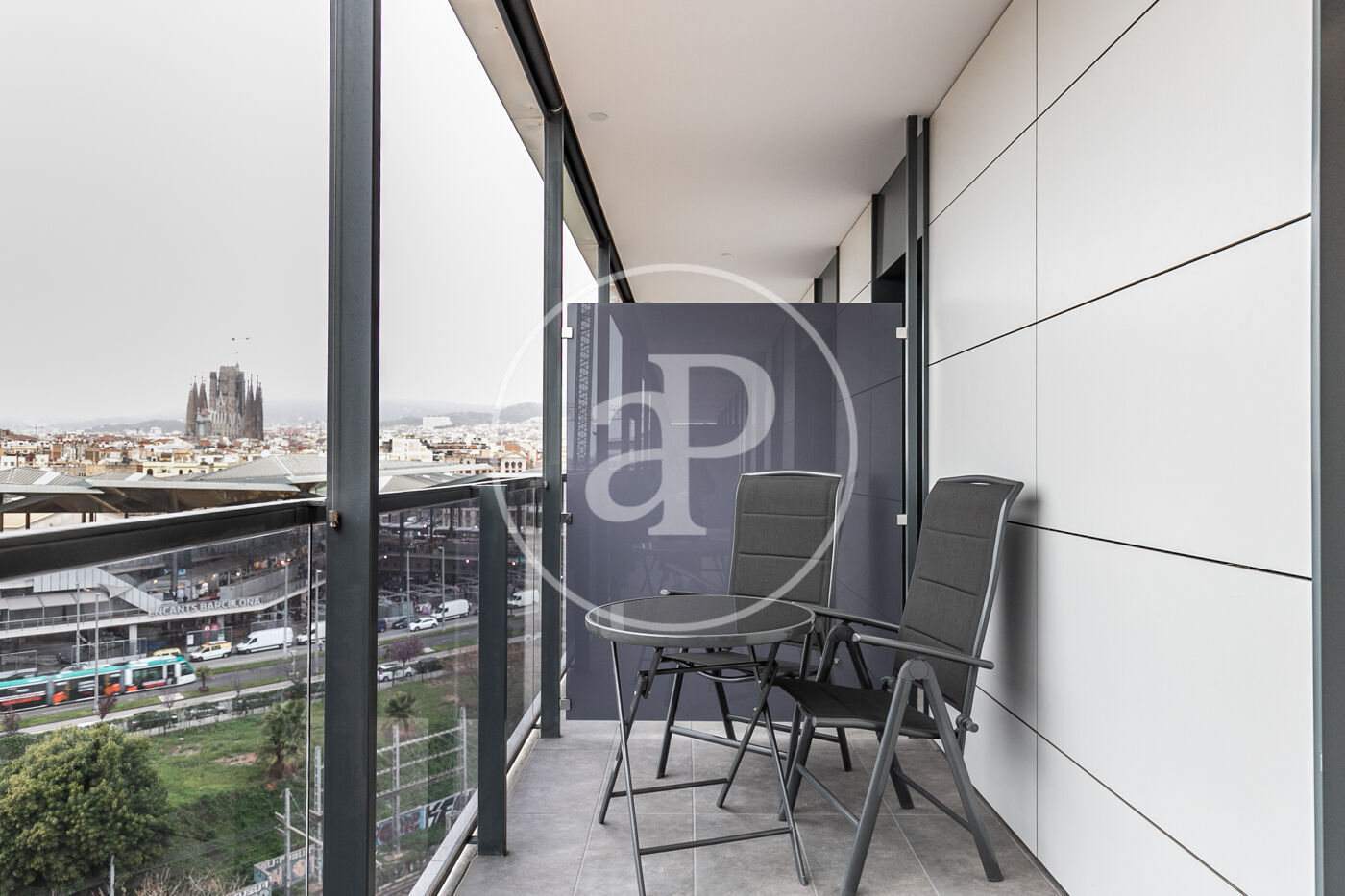 A la zona de dia trobem un ampli saló-menjador amb accés a una terrassa orientada a l’oest, la qual gaudeix de molta llum natural i vistes al Tibidabo, la Sagrada Família i Montjuïc. Des de la terrassa es pot veure la posta de sol. La cuina està totalment equipada amb rentadora-assecadora i tots els electrodomèstics.