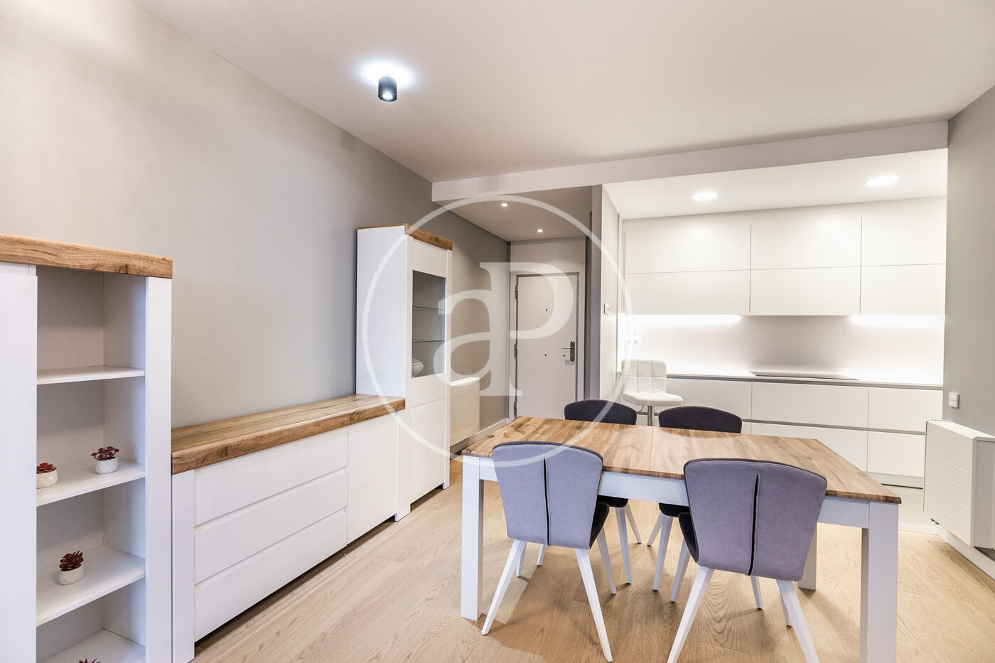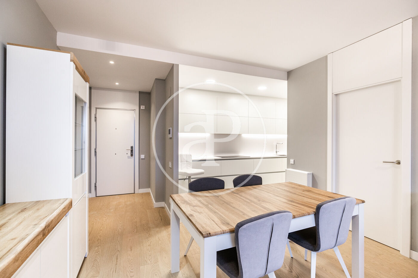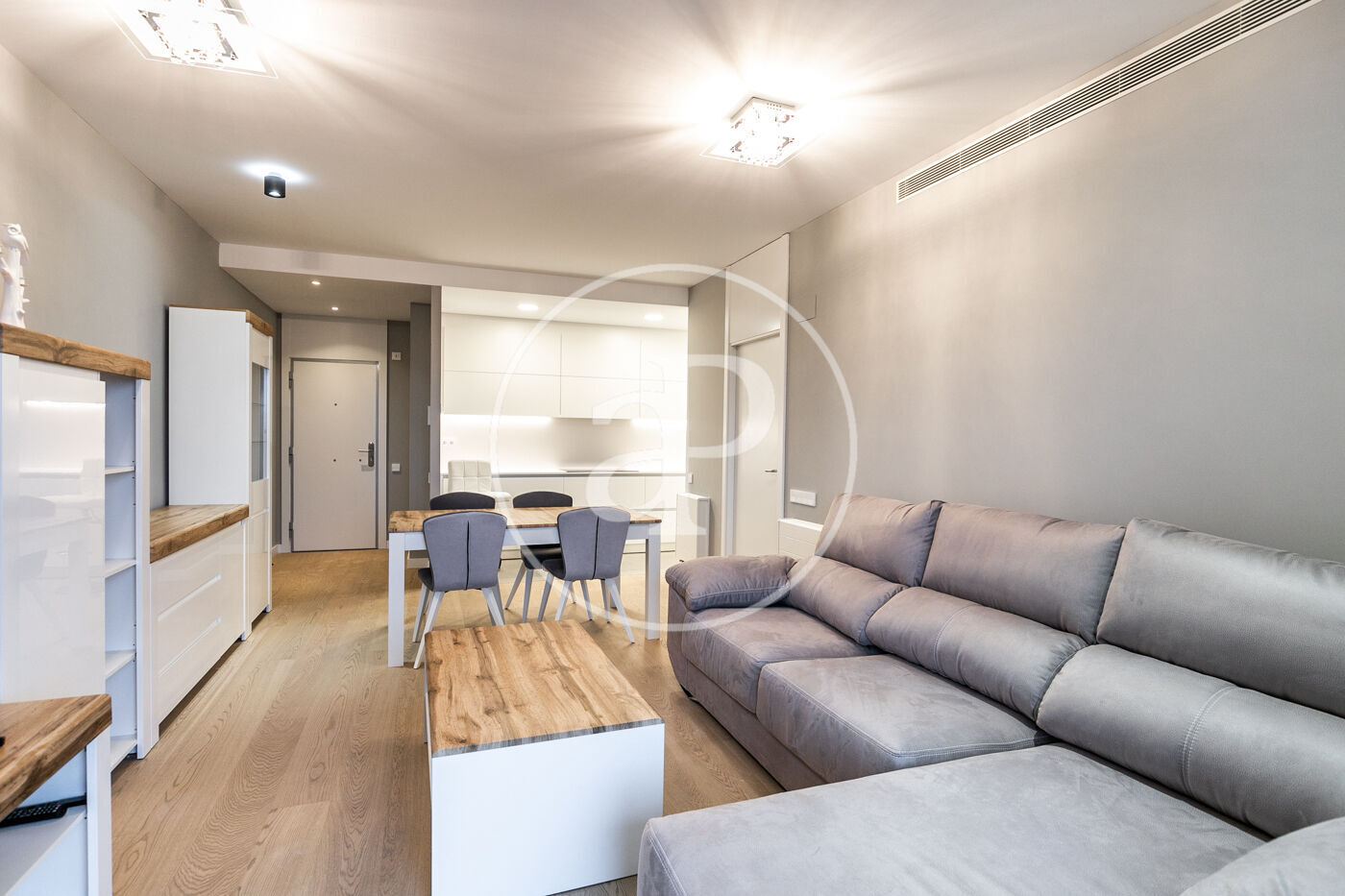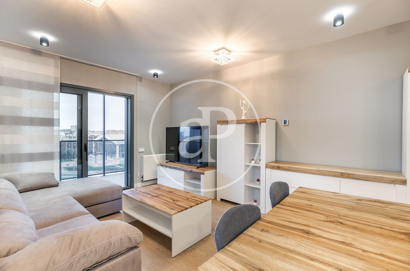 A la zona de dia trobem un ampli saló-menjador amb accés a una terrassa orientada a l’oest, la qual gaudeix de molta llum natural i vistes al Tibidabo, la Sagrada Família i Montjuïc. Des de la terrassa es pot veure la posta de sol. La cuina està totalment equipada amb rentadora-assecadora i tots els electrodomèstics.