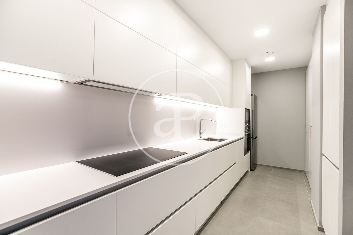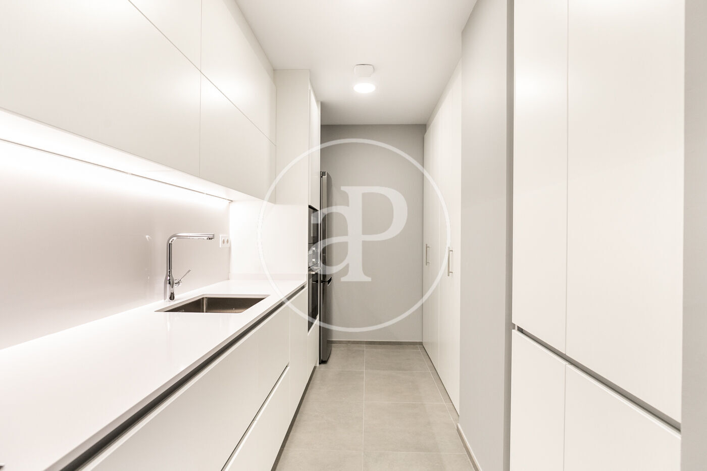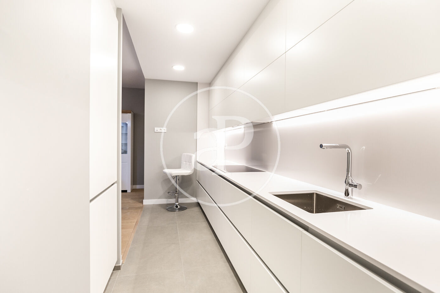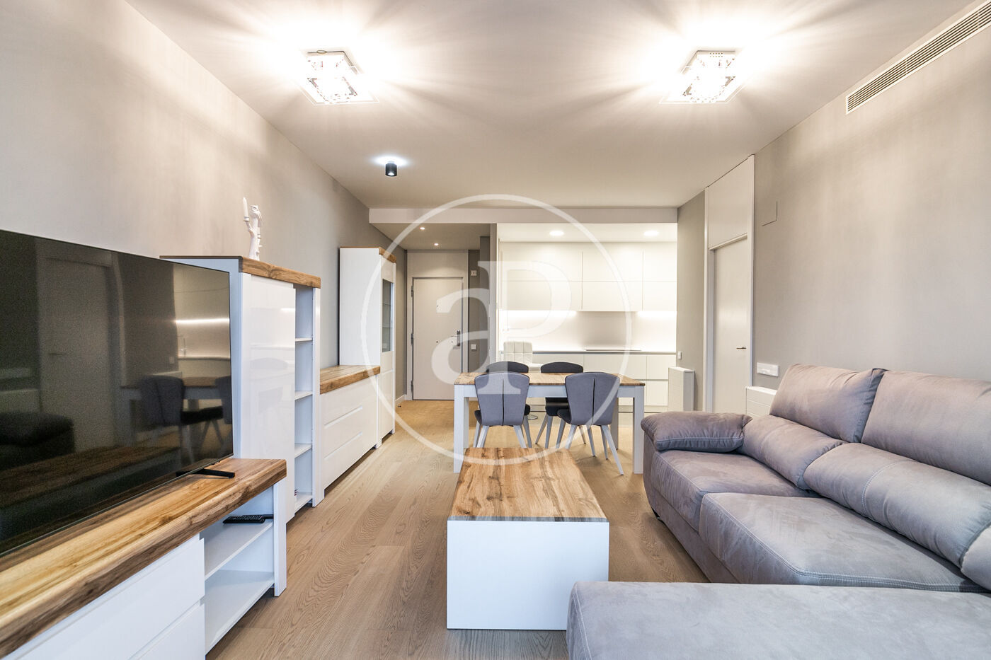 A la zona de dia trobem un ampli saló-menjador amb accés a una terrassa orientada a l’oest, la qual gaudeix de molta llum natural i vistes al Tibidabo, la Sagrada Família i Montjuïc. Des de la terrassa es pot veure la posta de sol. La cuina està totalment equipada amb rentadora-assecadora i tots els electrodomèstics.