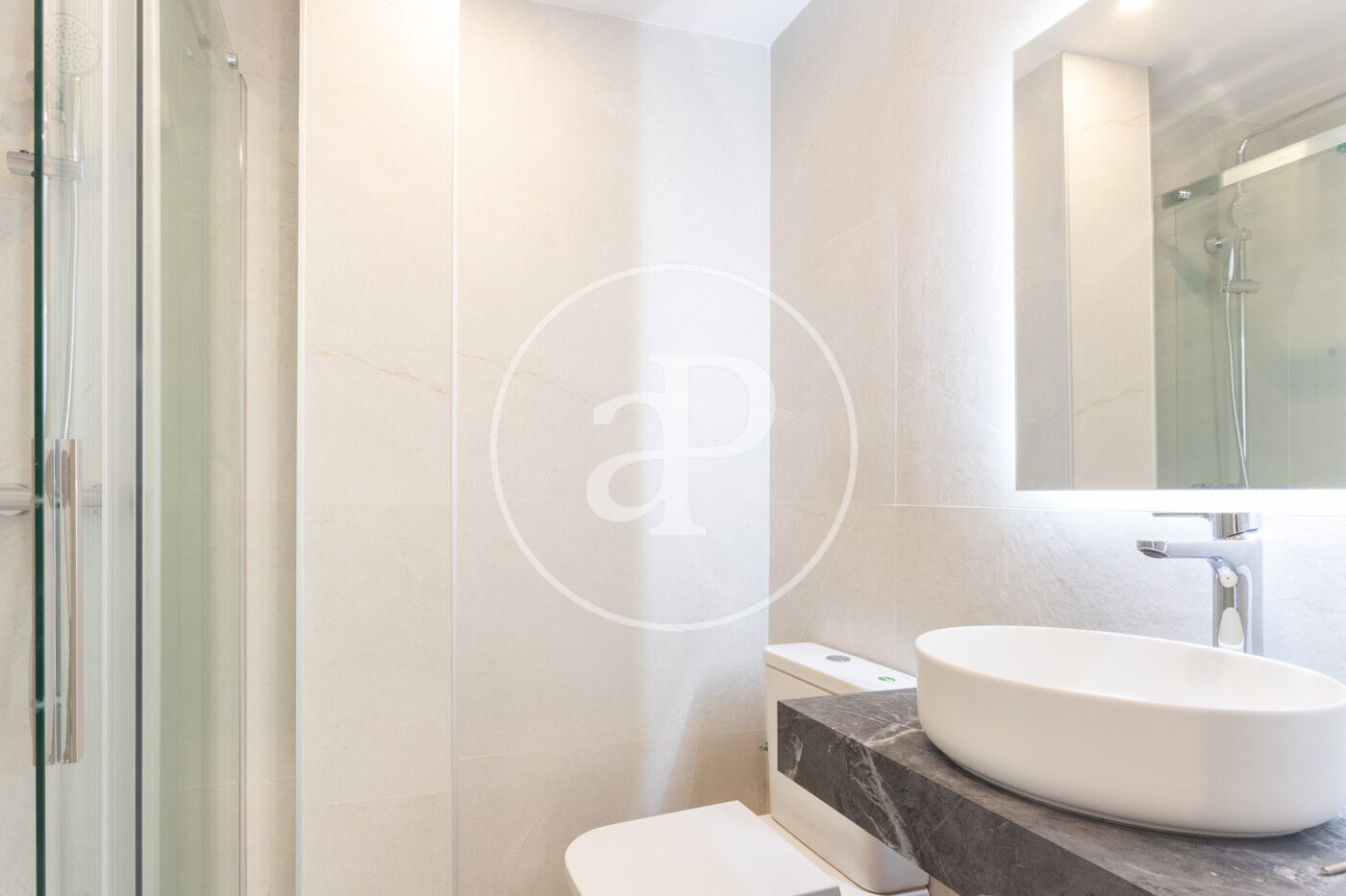 Aquest espectacular àtic de 101 m² al Born és una joia arquitectònica que combina l'elegància clàssica d'una finca règia amb el confort i la modernitat d'una reforma integral d'alta gamma, la finalització de la qual està prevista per a finals del 2025. Ubicat en una cinquena planta real, la seva orientació i els seus amplis finestrals garanteixen una entrada excepcional de llum natural durant tot el dia, realçant cada racó de l'habitatge. El disseny de l'espai ha estat pensat per oferir amplitud, funcionalitat i confort. La zona de dia es compon d'una sala d'estar-menjador diàfana, amb acabats en tons neutres i materials de primera qualitat, que s'obre a una terrassa de 17 m². Aquest espai exterior és perfecte per gaudir del clima mediterrani, crear una zona de relax o fins i tot un menjador a l'aire lliure. A més, la propietat compta amb una segona terrassa de 27 m², un autèntic oasi privat amb múltiples possibilitats, des d'una zona chill-out fins a un jardí urbà. L'habitatge disposa de dues habitacions dobles espaioses, dissenyades per oferir confort i tranquil·litat, amb armaris encastats i grans finestrals que potencien la sensació de lluminositat. Els dos banys complets destaquen pel seu disseny elegant i funcional, amb acabats d'alta qualitat, aixetes modernes i dutxes d'efecte pluja. Equipat amb aire condicionat i calefacció, assegura confort durant tot l'any. La finca on es troba aquest àtic és un edifici senyorial que conserva elements originals de gran valor arquitectònic, aportant caràcter i exclusivitat a la propietat. La seva ubicació en una de les zones més emblemàtiques de Barcelona permet gaudir d'un entorn ple d'història amb galeries d'art, places amb encant, comerços locals i una oferta gastronòmica excel·lent. Aquest àtic és una oportunitat única per a aquells que busquen un habitatge de luxe i disseny al cor de la ciutat, amb la garantia d'una reforma per estrenar i el privilegi de comptar amb espais exteriors privats. Si vols més informació sobre aquest exclusiu àtic o concertar una visita, no dubtis a contactar amb nosaltres!