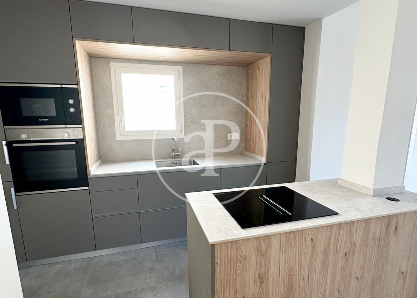 El saló, connectat amb una cuina integrada de disseny modern, és l’espai ideal per gaudir de moments en família o amb amics. La cuina, equipada amb electrodomèstics Bosch integrats i una pràctica península, és perfecta per als amants de la cuina.