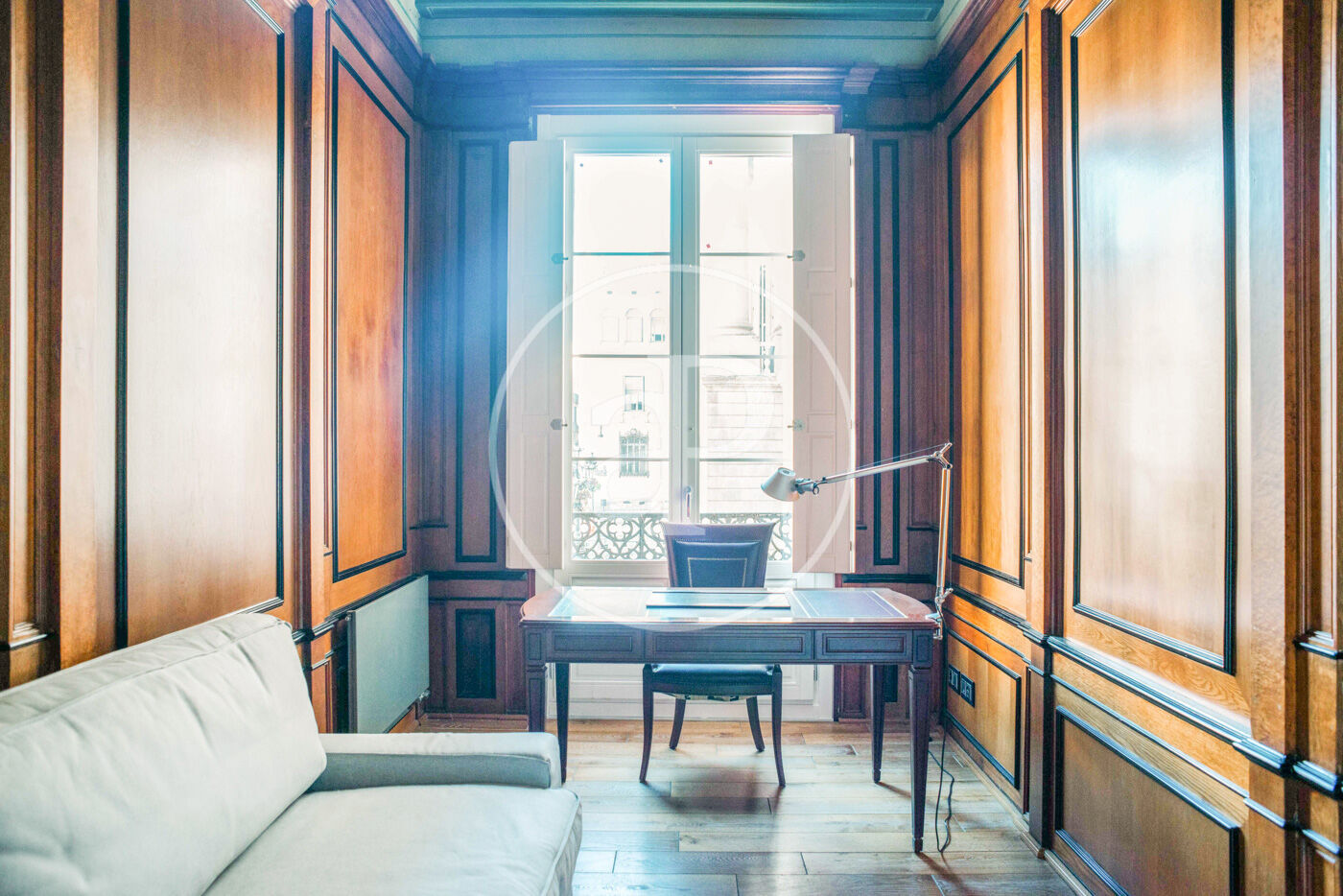 En una finca règia amb ascensor, aquest pis de 170m2 aproximadament, està distribuït de manera molt funcional, amb una zona de dia amb ampli rebedor, saló i menjador; cuina totalment equipada tipus office i una zona de nit amb tres habitacions: la principal en suite, una segona doble i la tercera també doble habilitada com a estudi i amb un sofà llit. Aquestes dues habitacions comparteixen un bany complet.