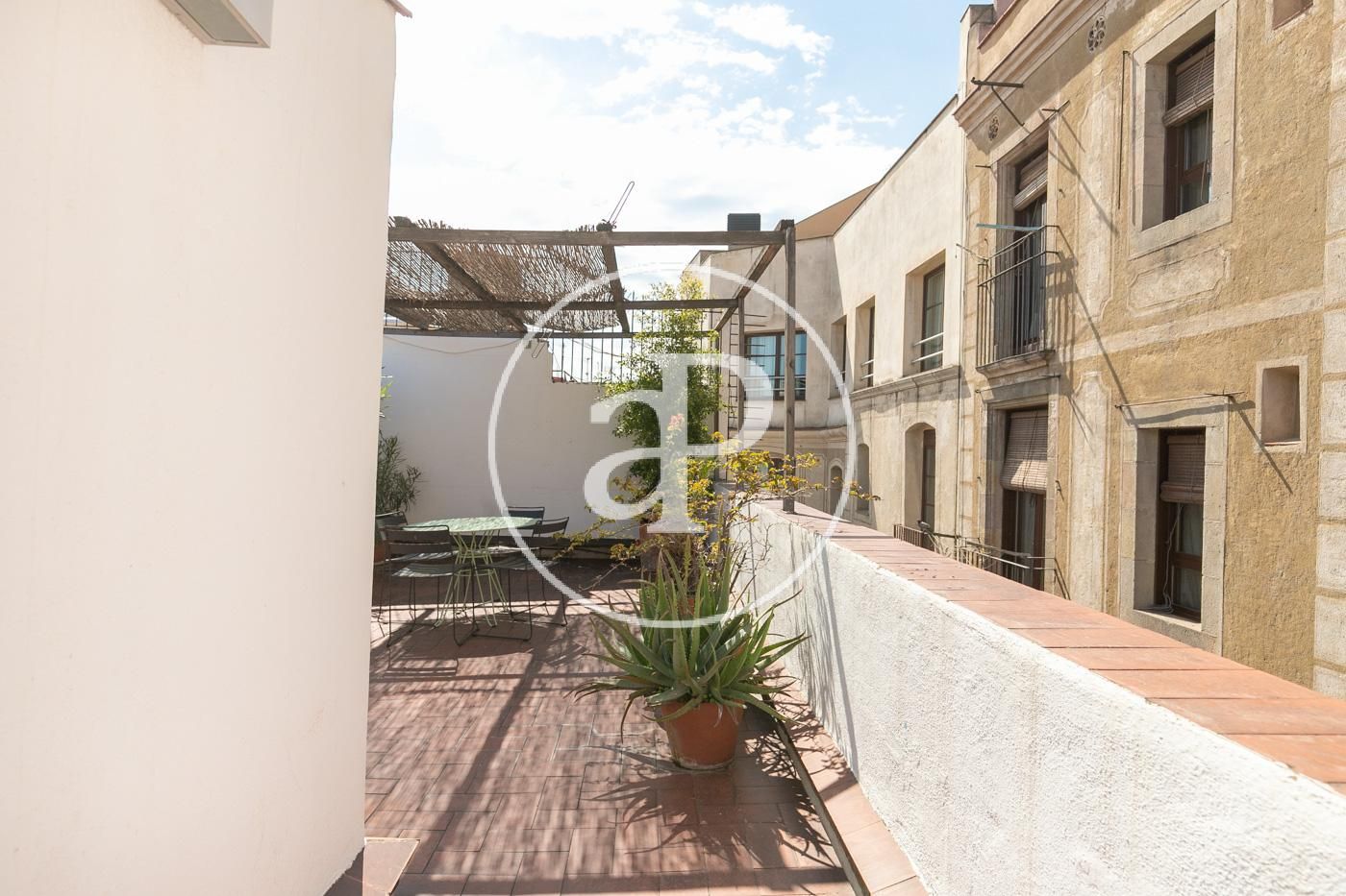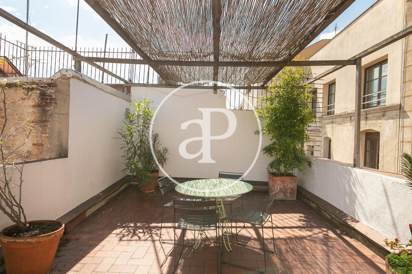 Espectacular àtic dúplex en venda en el barri Gótic, amb terrassa d'ús privatiu. En una finca de 1860 reformada, amb treballs de manteniment realitzats, SENSE ascensor, en una quarta planta real. L'edifici té un veí per planta, és a dir són 4 veïns en total. El carrer és molt tranquil·la, no té bars o comerços.