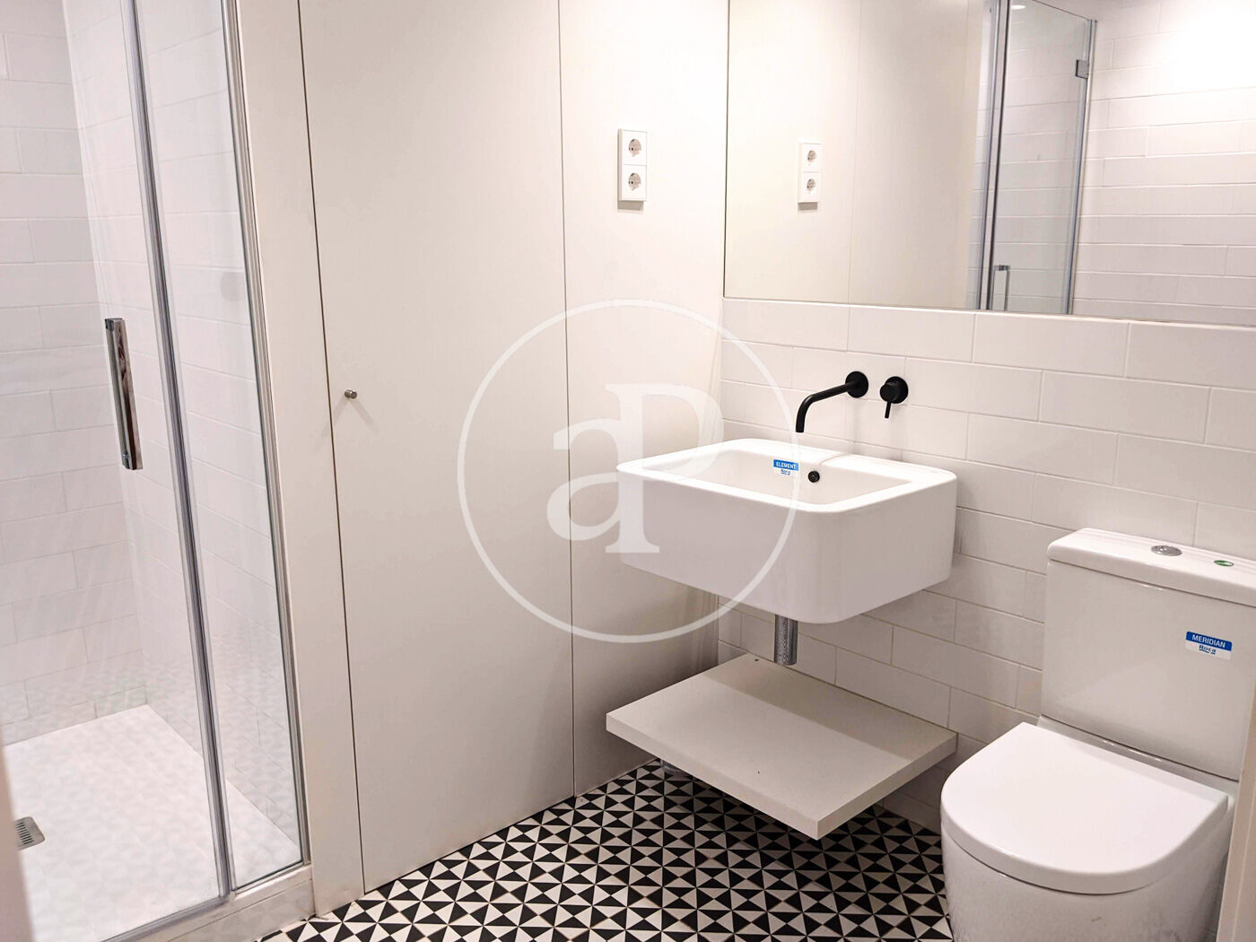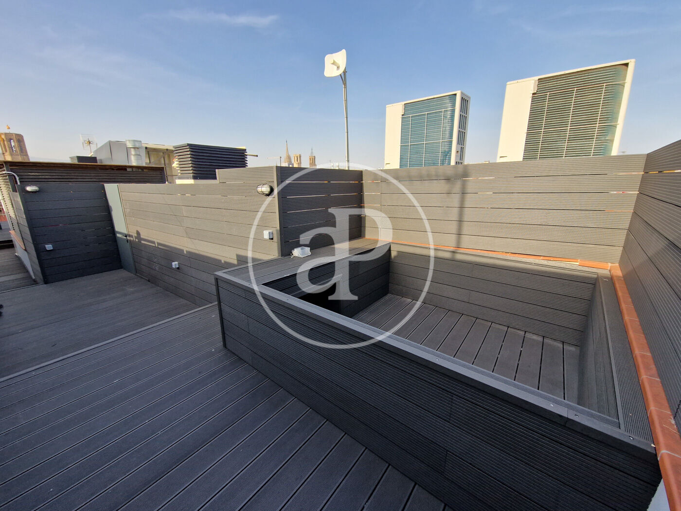 Situat a l’icònic barri de Sant Antoni, a pocs passos del mercat homònim i de tota mena de serveis i transports, en un edifici clàssic rehabilitat integralment, amb ascensor i zones comunitàries, trobem aquest acollidor loft ple d’encant i totalment llest per entrar a viure. L’edifici disposa d’excel·lents zones comunes com terrassa comunitària amb dutxes exteriors, lounge i barra social, aparcament per a bicicletes, celler de vins, bugaderia, zona de coworking, gimnàs i sala de cinema. Es tracta d’un concepte d’apartaments convertibles, amb un sistema de panells corredissos que permet transformar un únic espai en un apartament amb dos dormitoris dobles en suite amb llits ocultables en armaris a mida que abasten tot l’apartament. El nucli central conté la cuina i el bany. La cuina està totalment equipada amb electrodomèstics integrats (rentavaixelles, forn, forn-microones, cafetera i nevera), aixetes Zucchetti i taulell de la marca Porcelanosa; el bany està dividit en tres peces independents amb accés doble des de cada dormitori. L’habitatge que presentem és una última planta orientada a pati d’illa amb 54 m² interiors + terrassa de 54 m² a la planta superior. Possibilitat d’1 o 2 dormitoris. Accés a la terrassa d’ús privatiu mitjançant l’escala comunitària de l’edifici. Una oportunitat única plena d’encant i comoditat en un dels barris més vibrants de la ciutat!